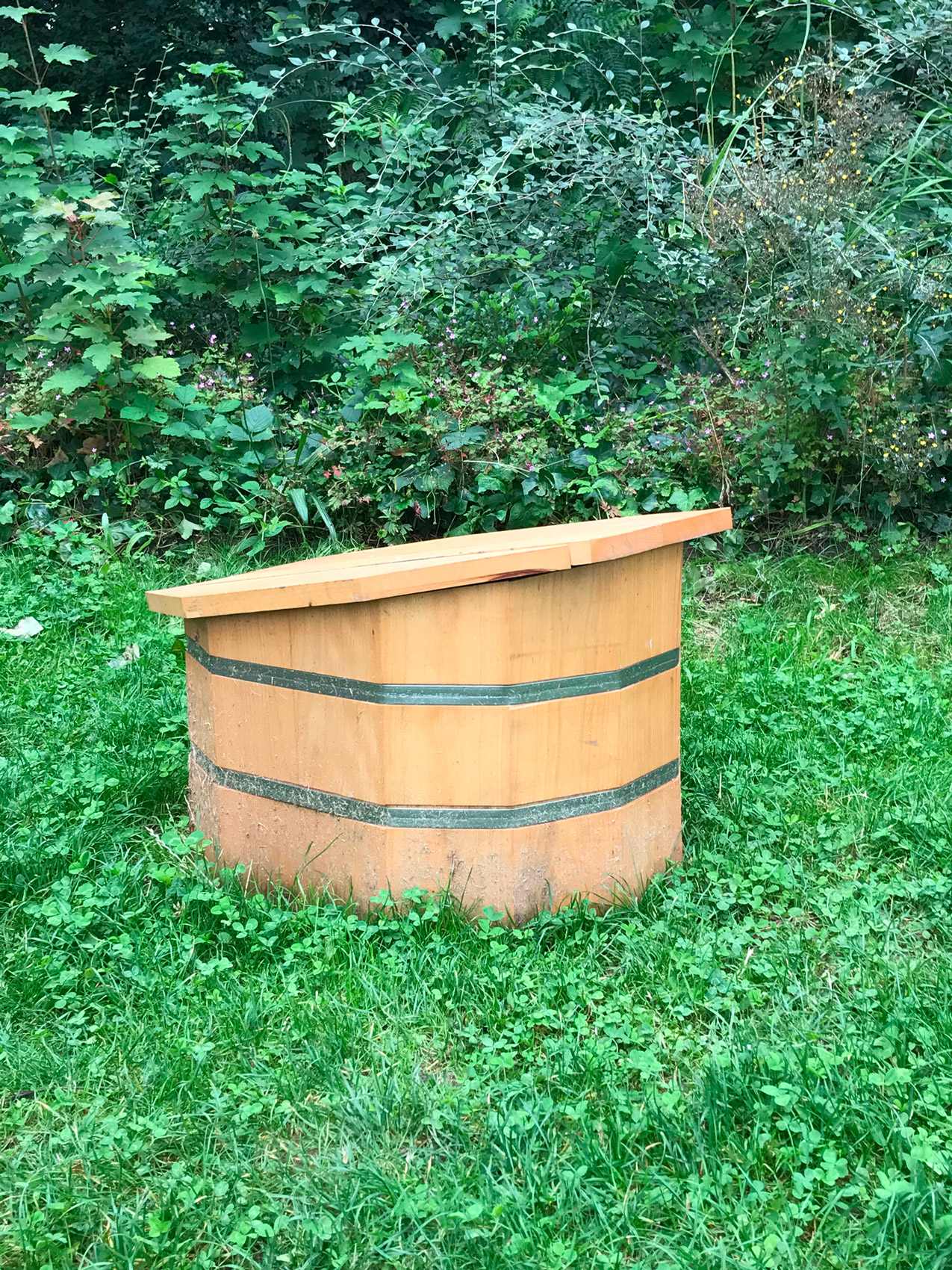 Bois de mélèze, feuillard inox, 20 x 17 x 26 cm