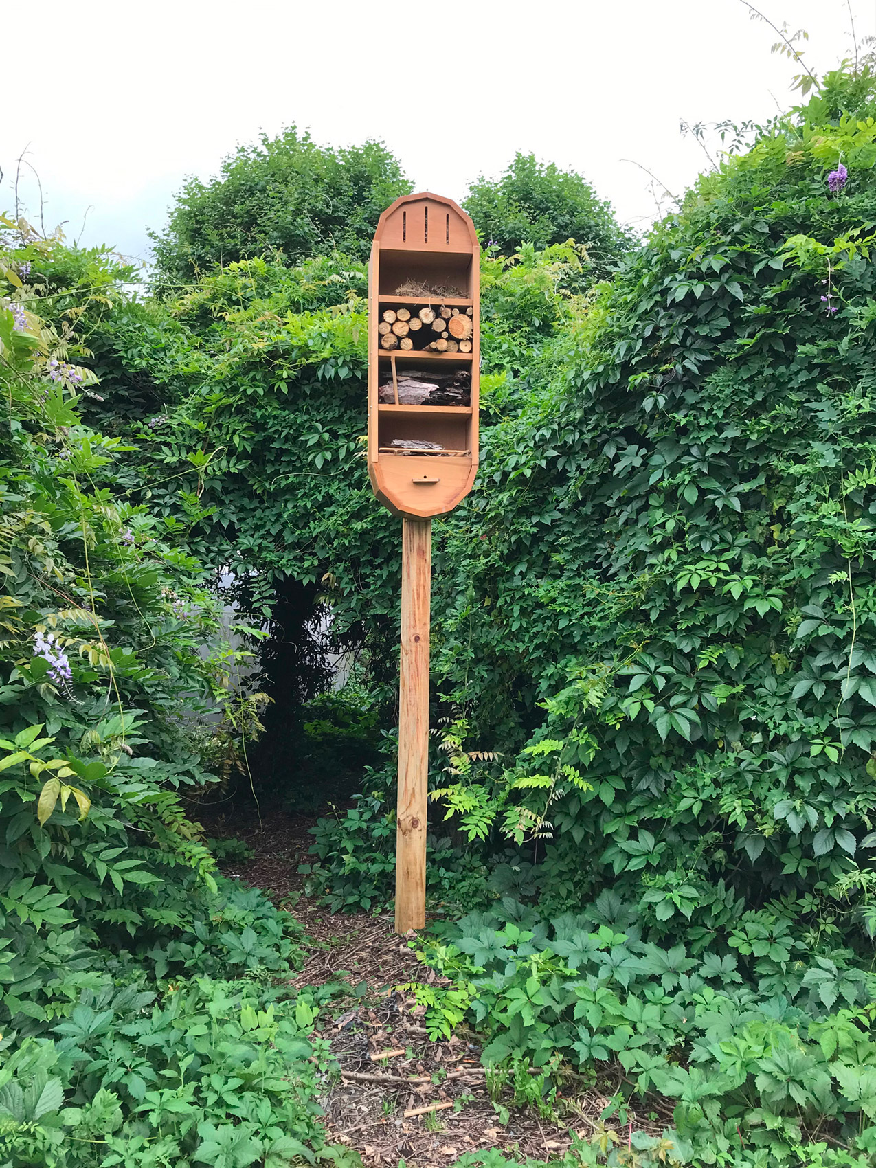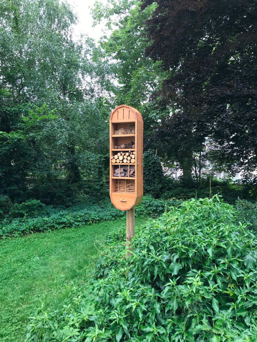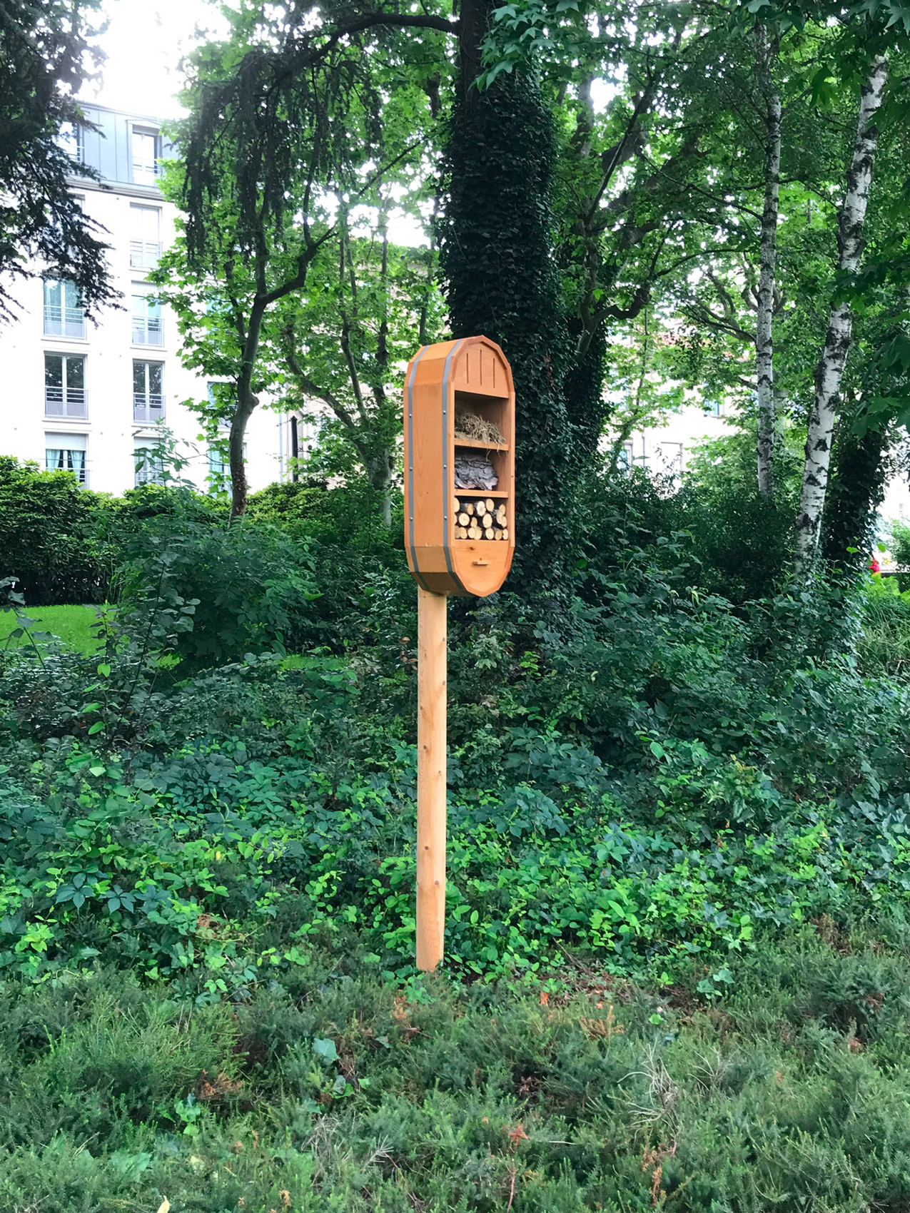Supports de biodiversité : hôtels à insectes, nichoirs à oiseaux, gîte à hérissons, abris à chauves-souris et abreuvoirs