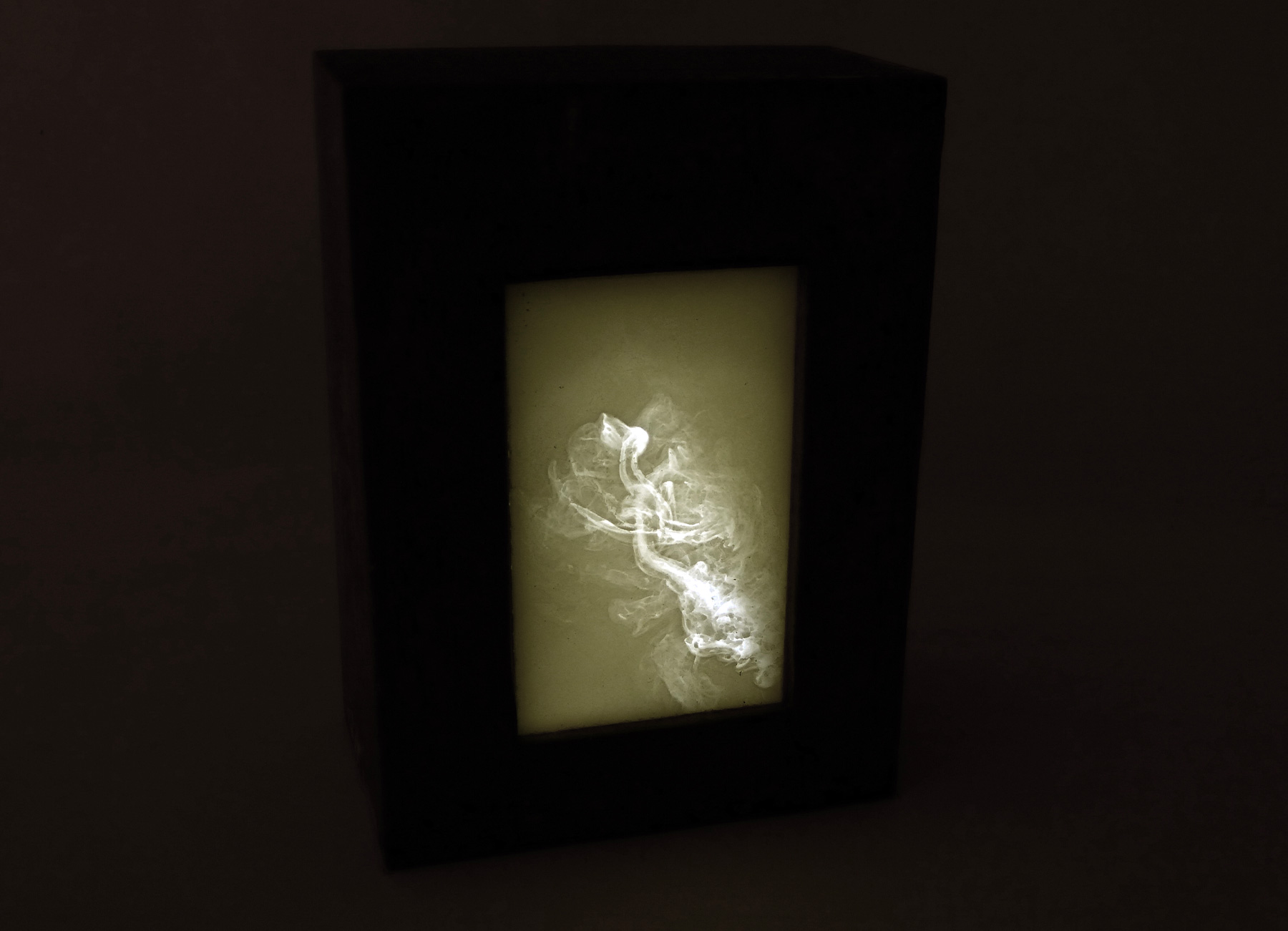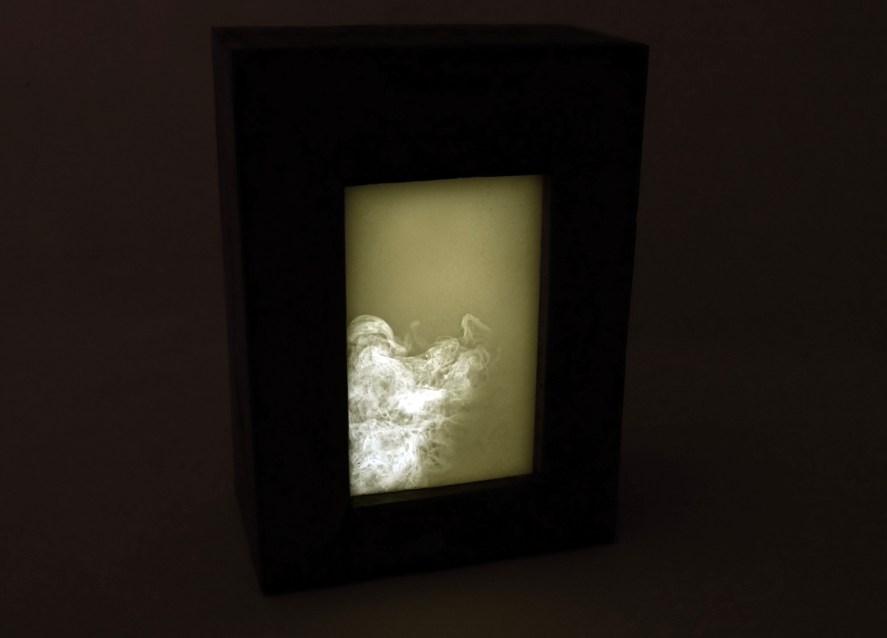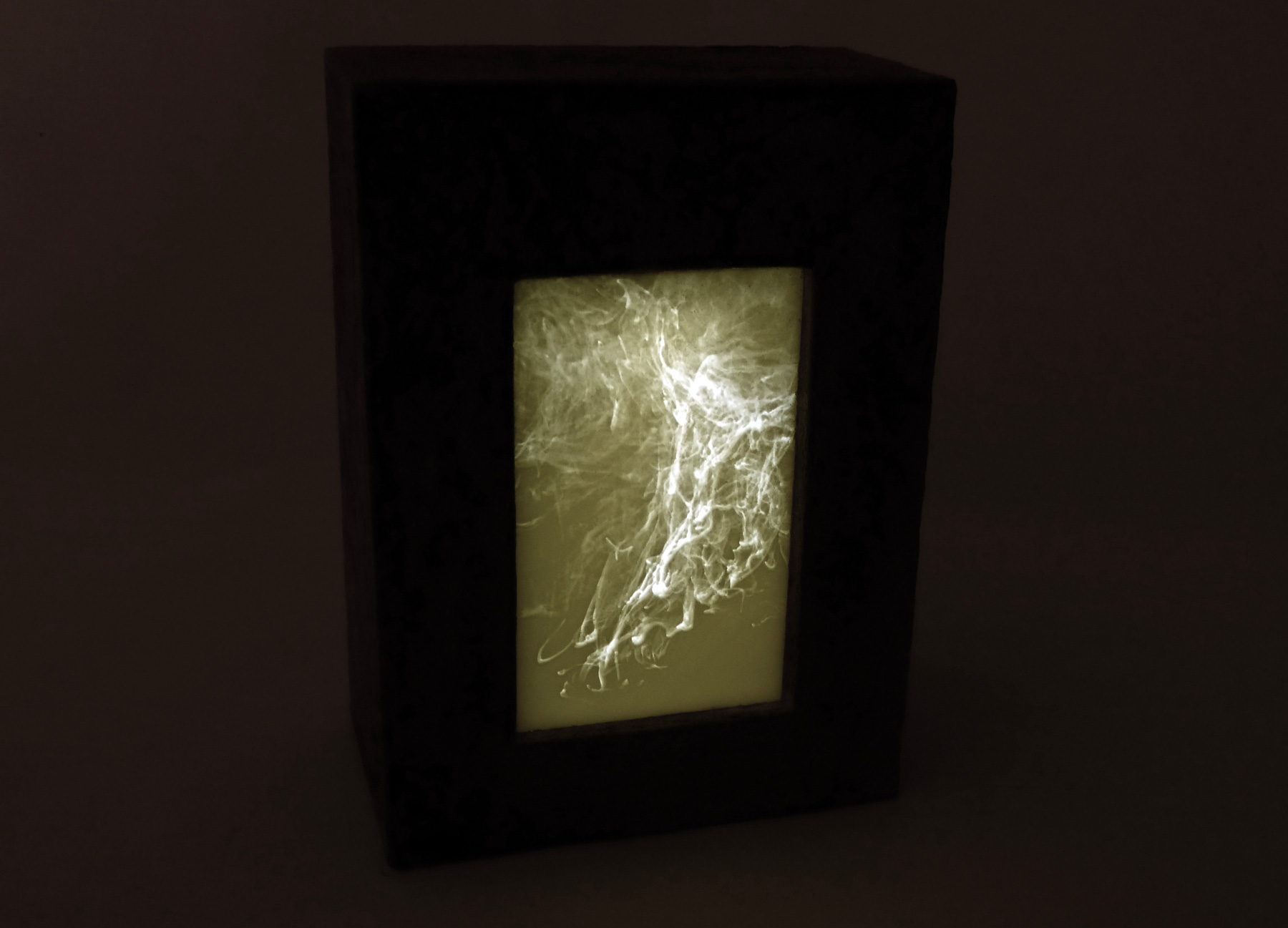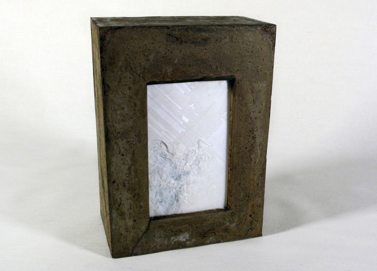 Stèle en béton, lithophanie en PLA (acide polylactique), dispositif lumineux, capteur solaire