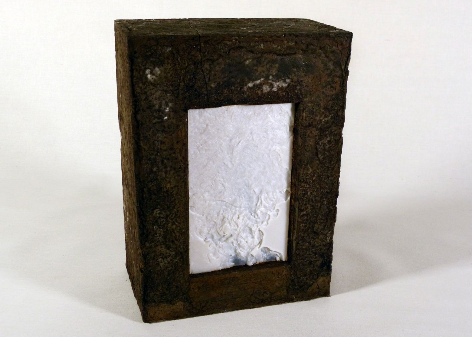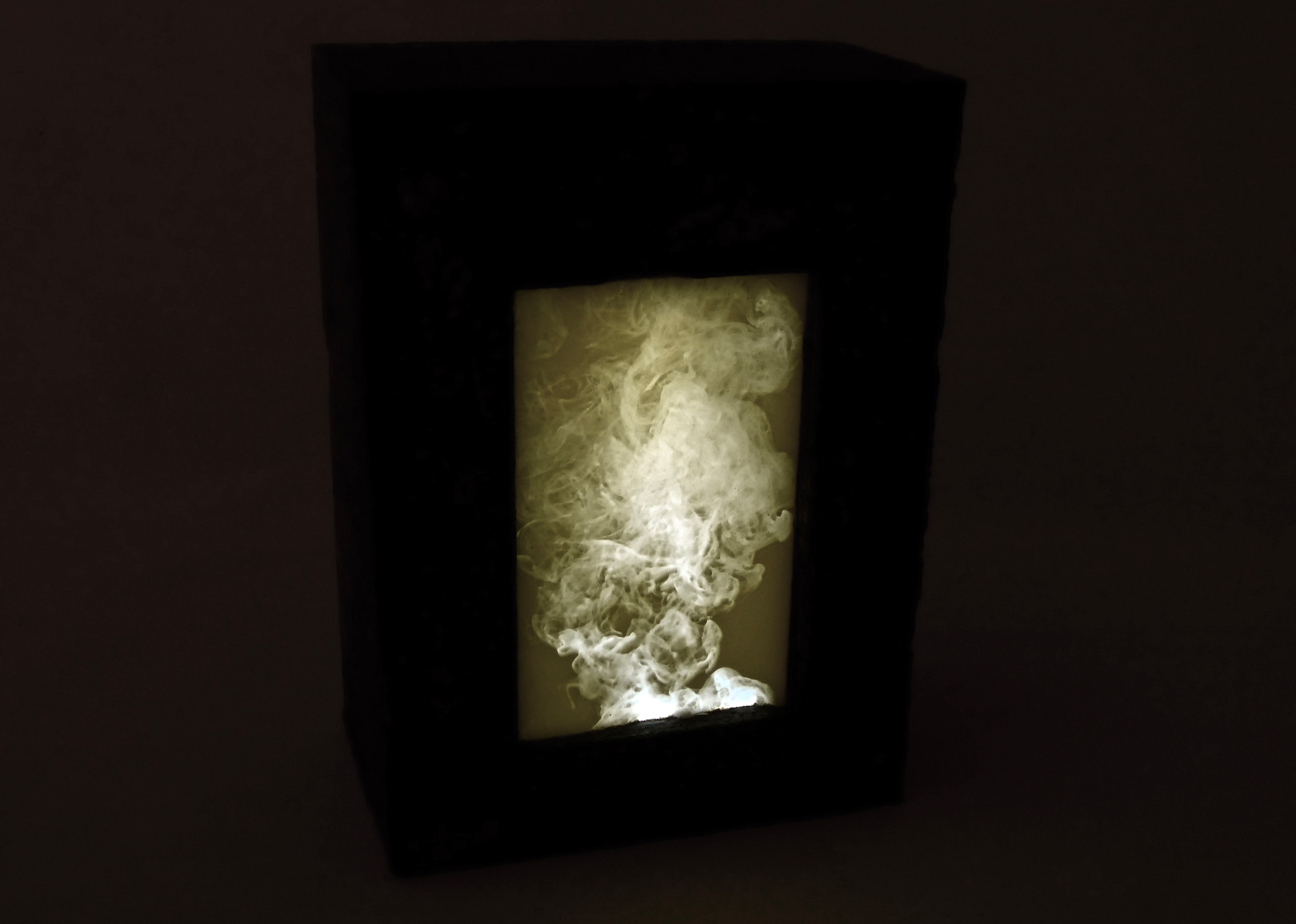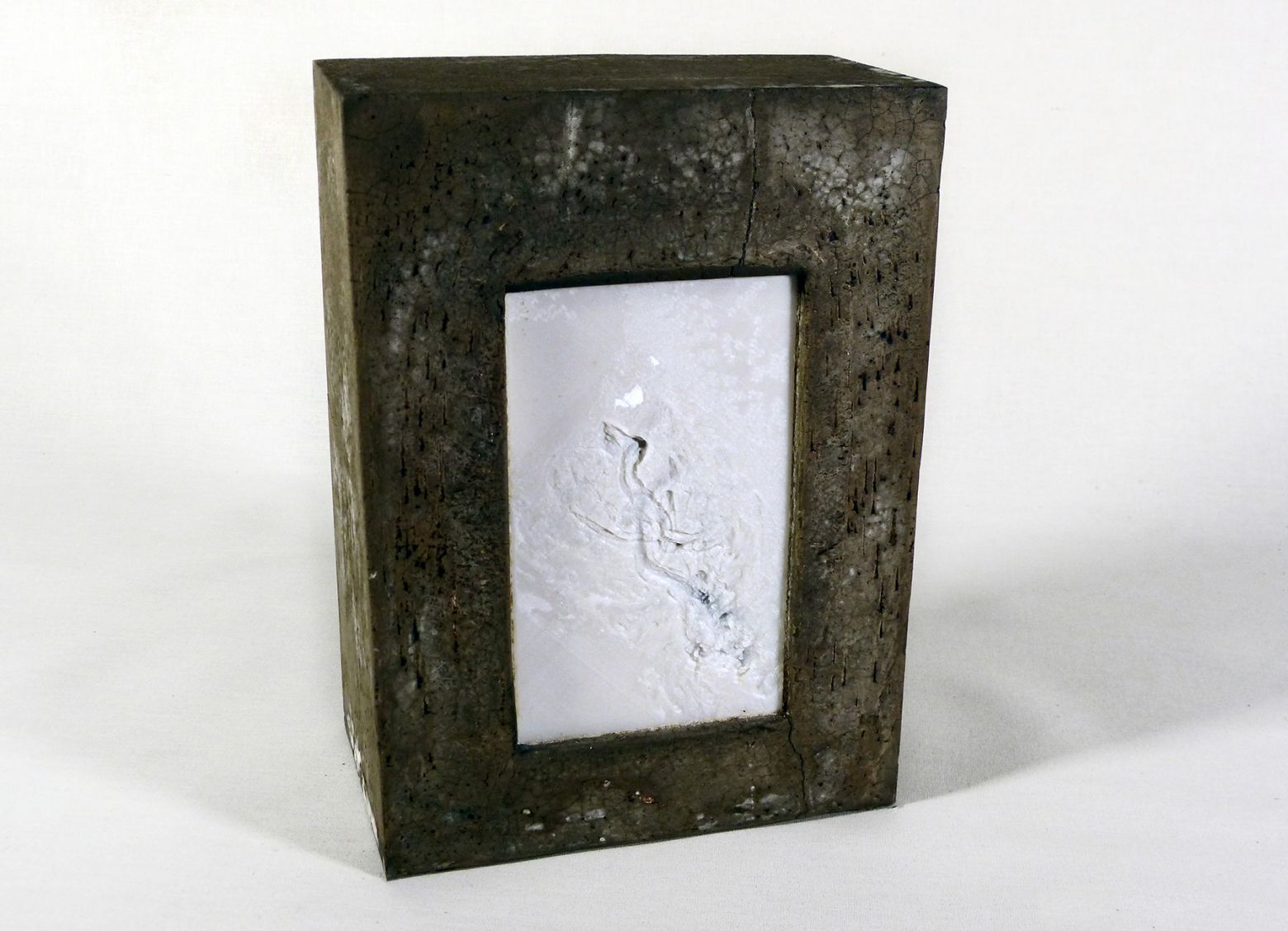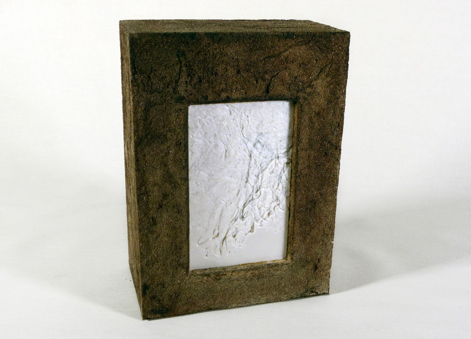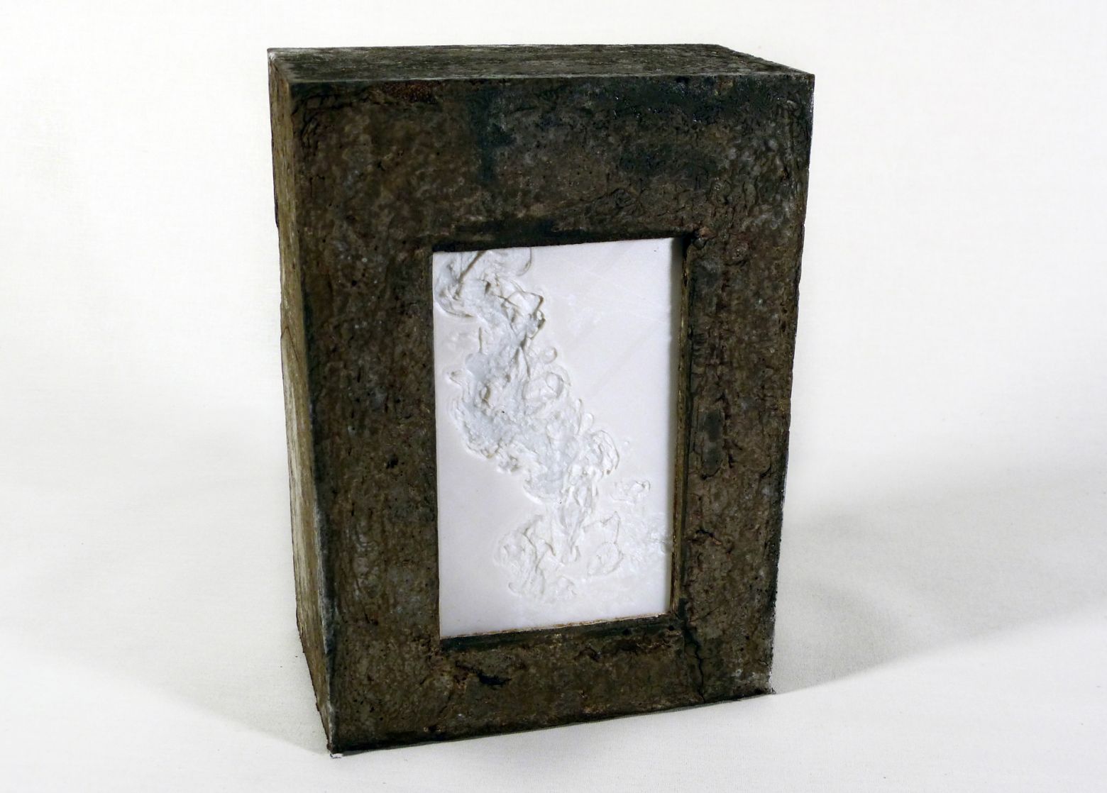 Stèle en béton, lithophanie en PLA (acide polylactique), dispositif lumineux, capteur solaire