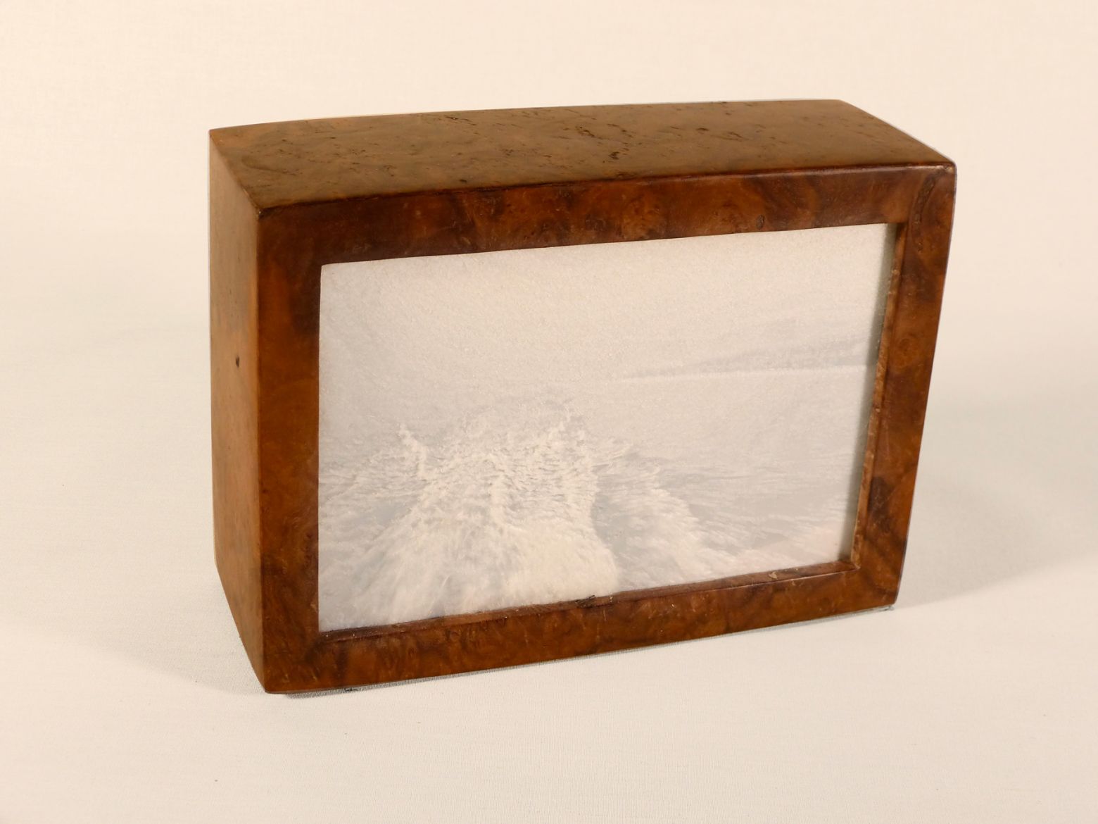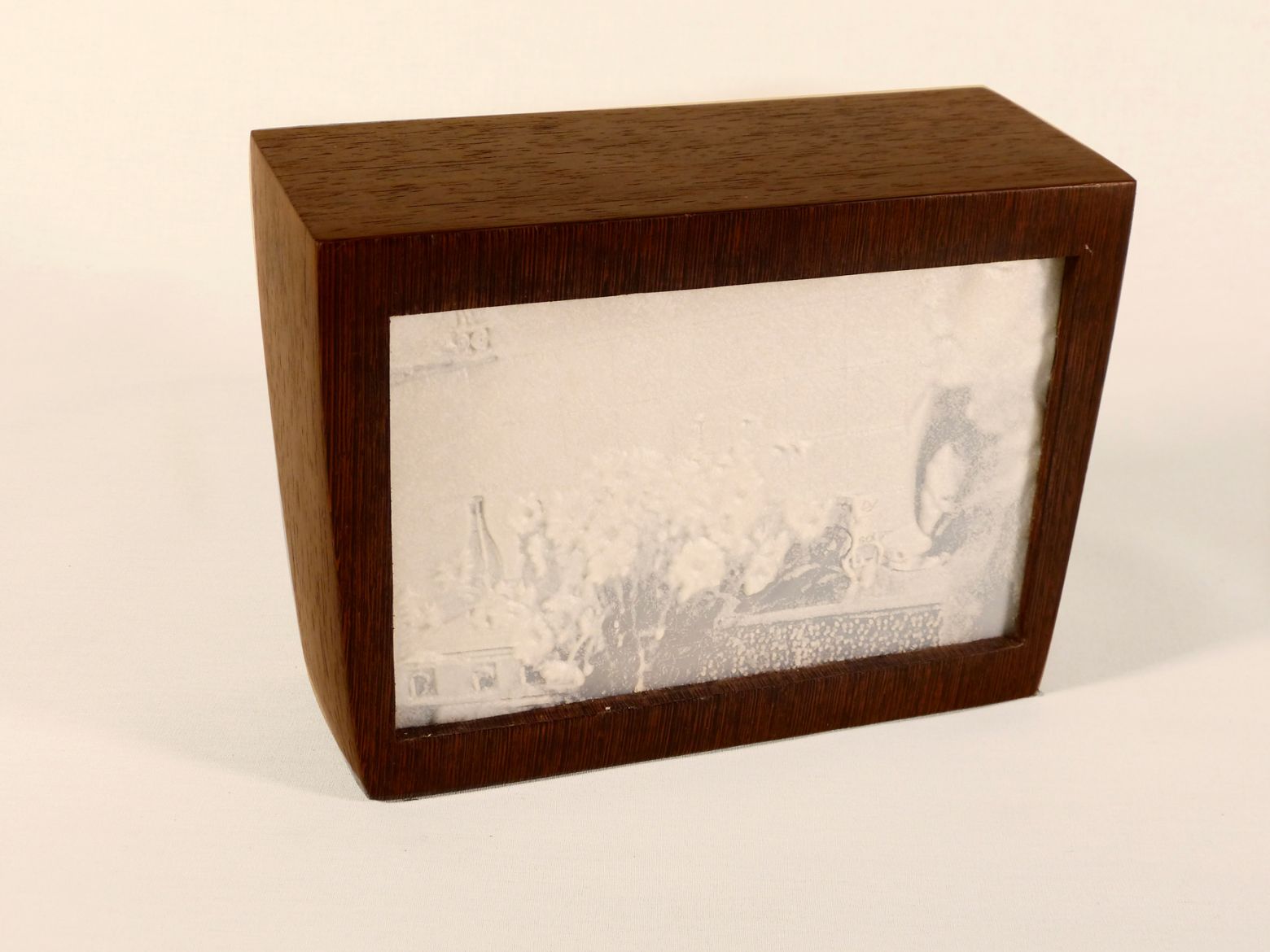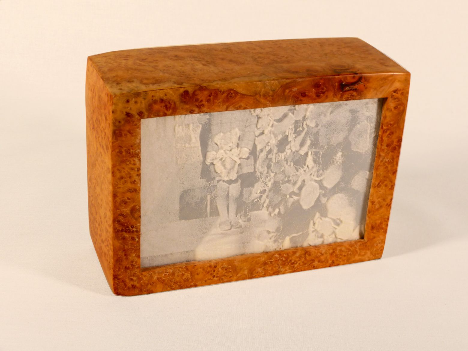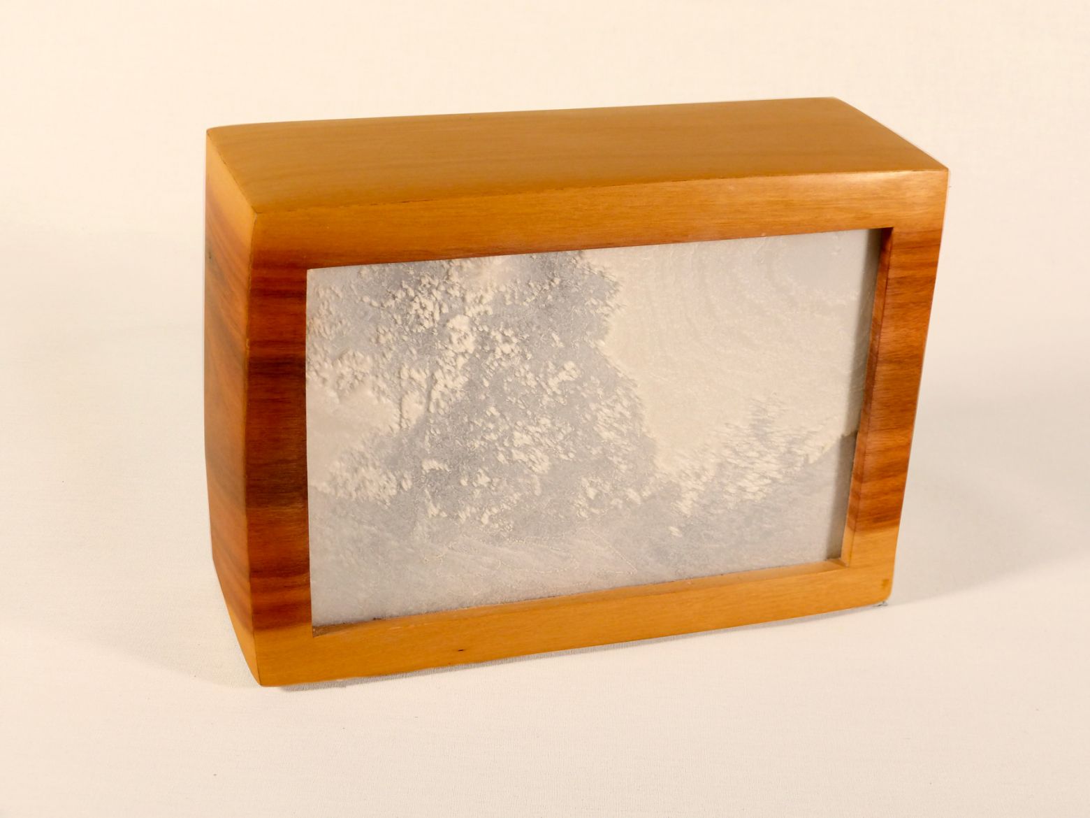 Urne en bois, lithophanie en PLA (acide polylactique), cendres incluses