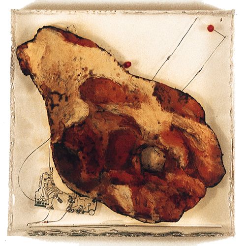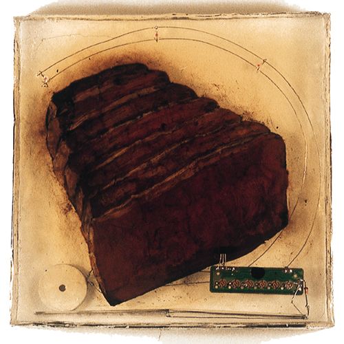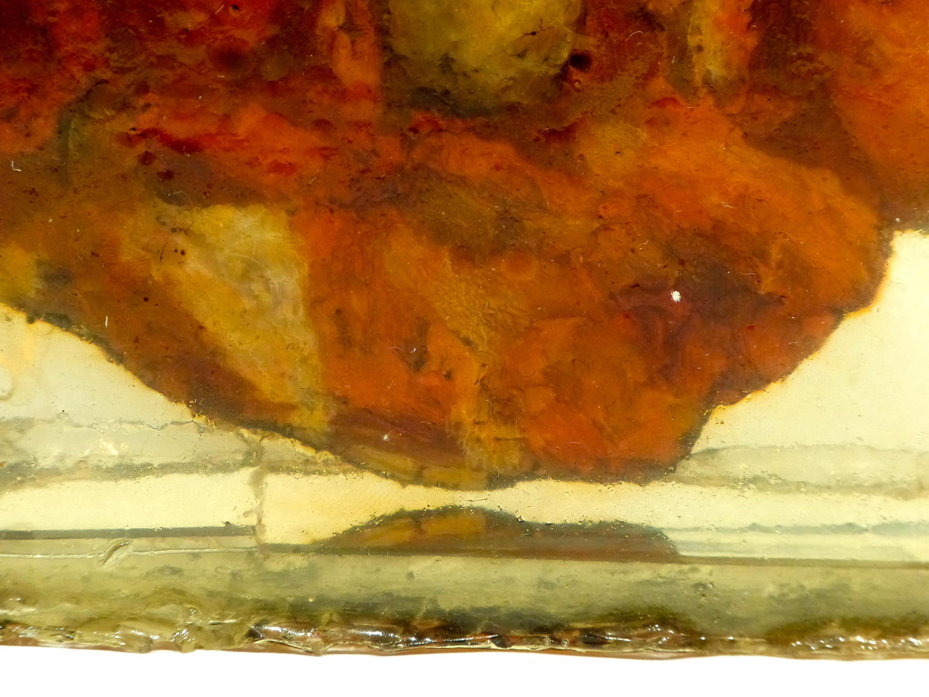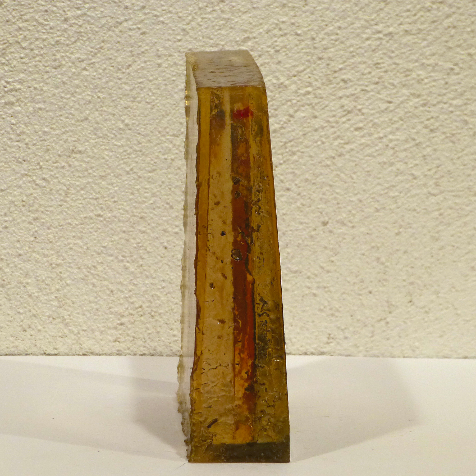 Peinture à l'huile sur bitume, capteurs solaires et composants électroniques sonores et lumineux dans résine