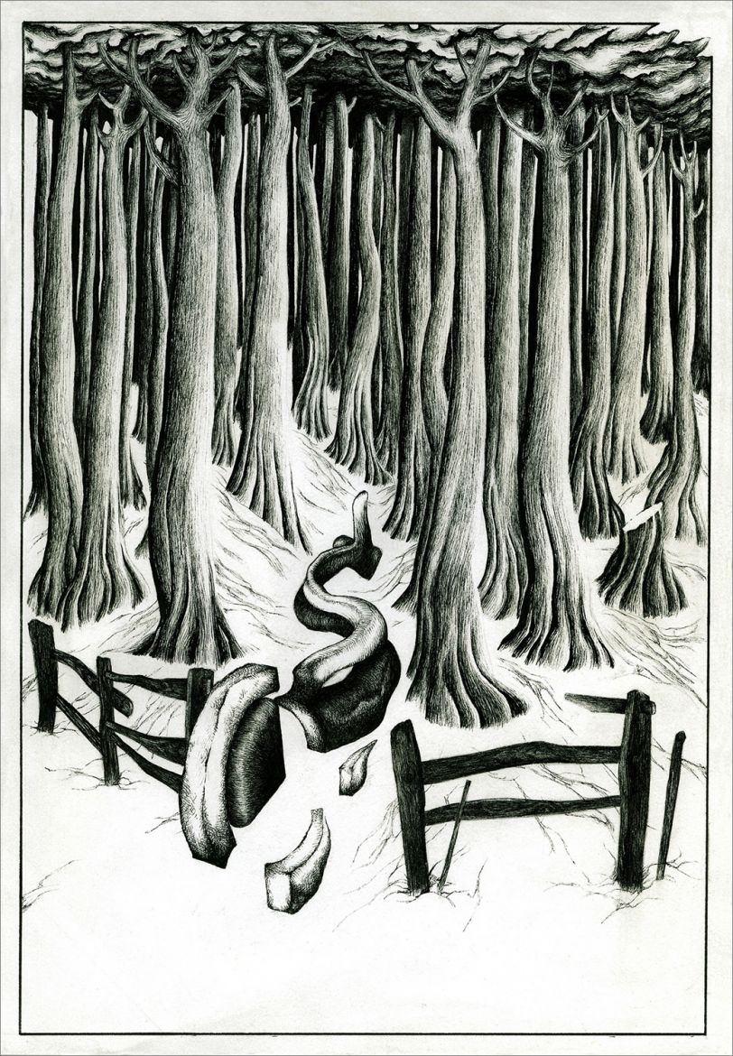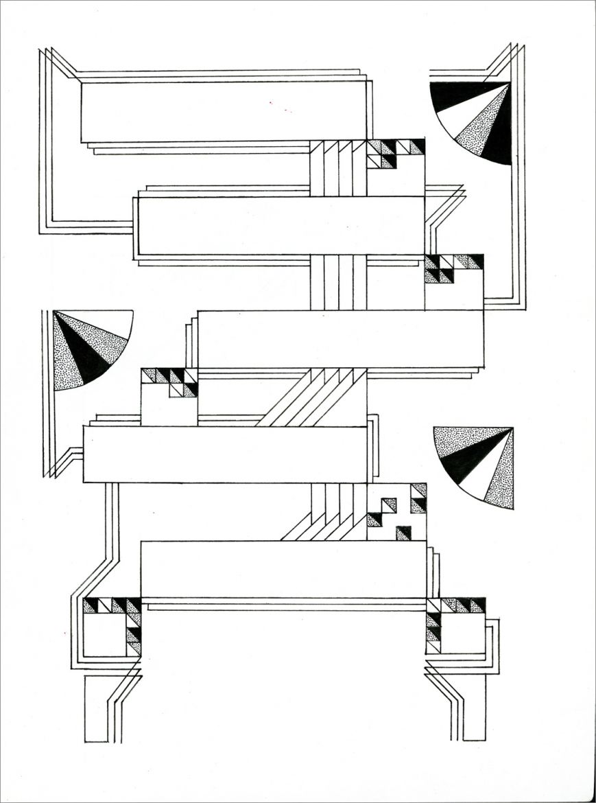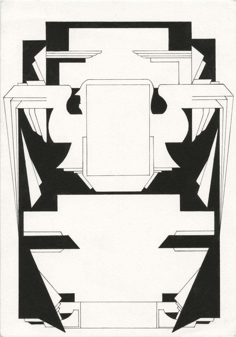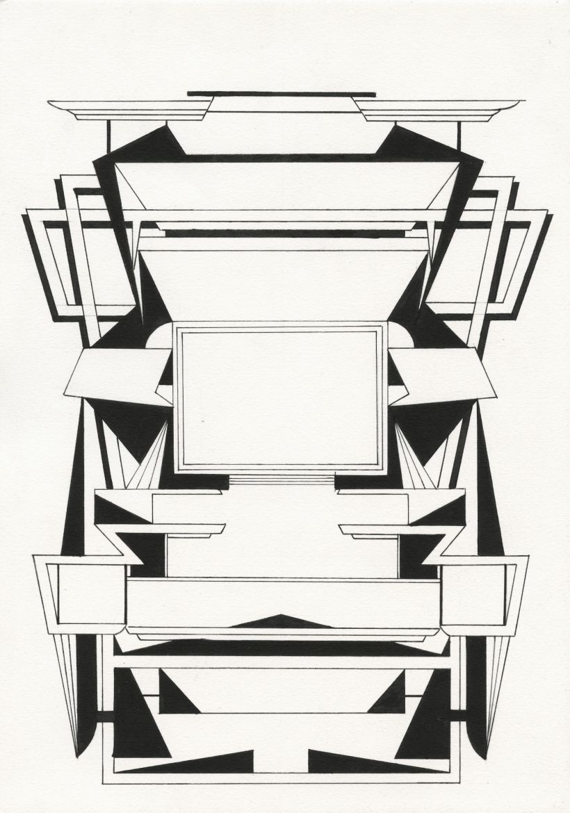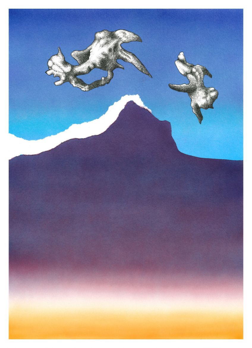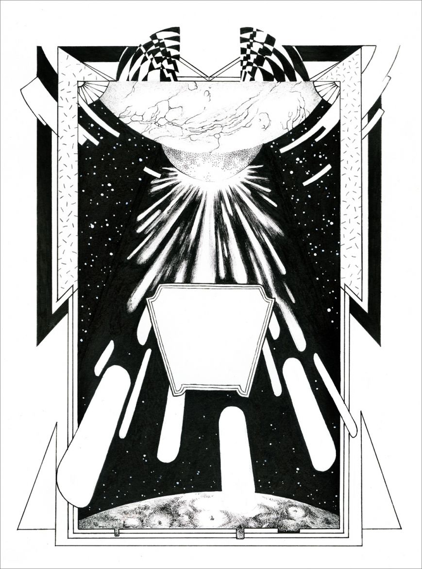 Aérographe, encre, stylo-bille, collage sur papier, 40 x 30 cm