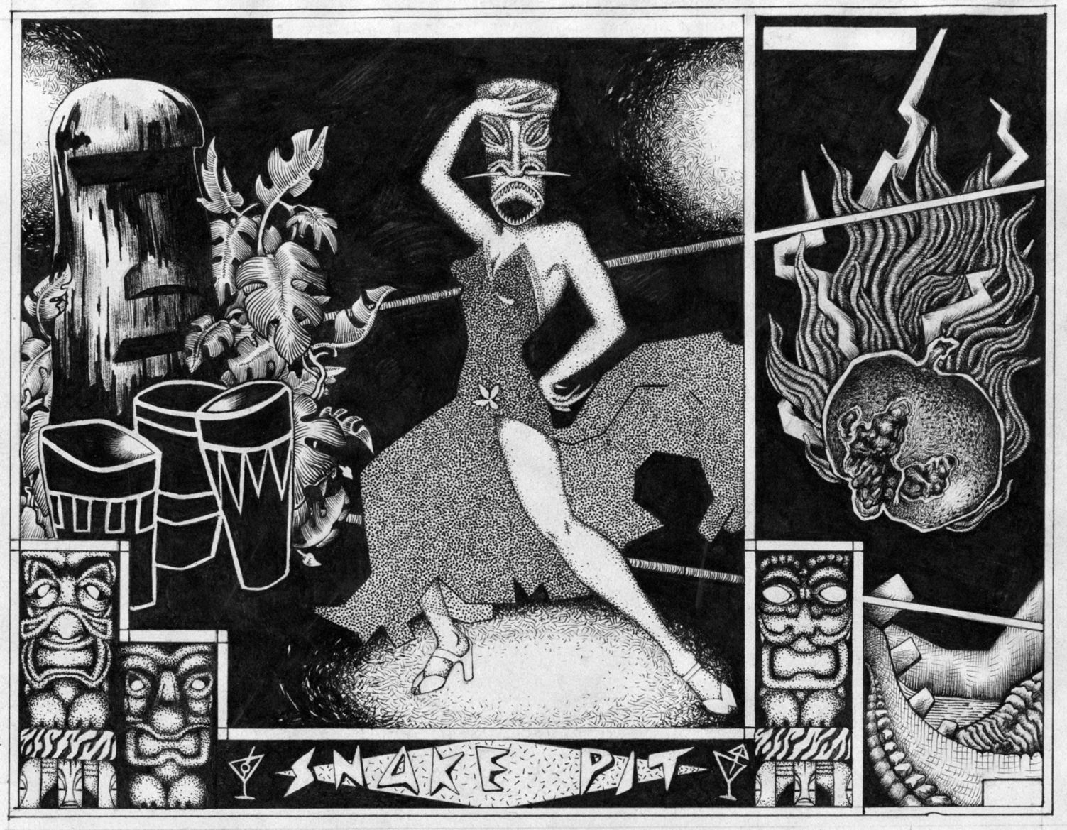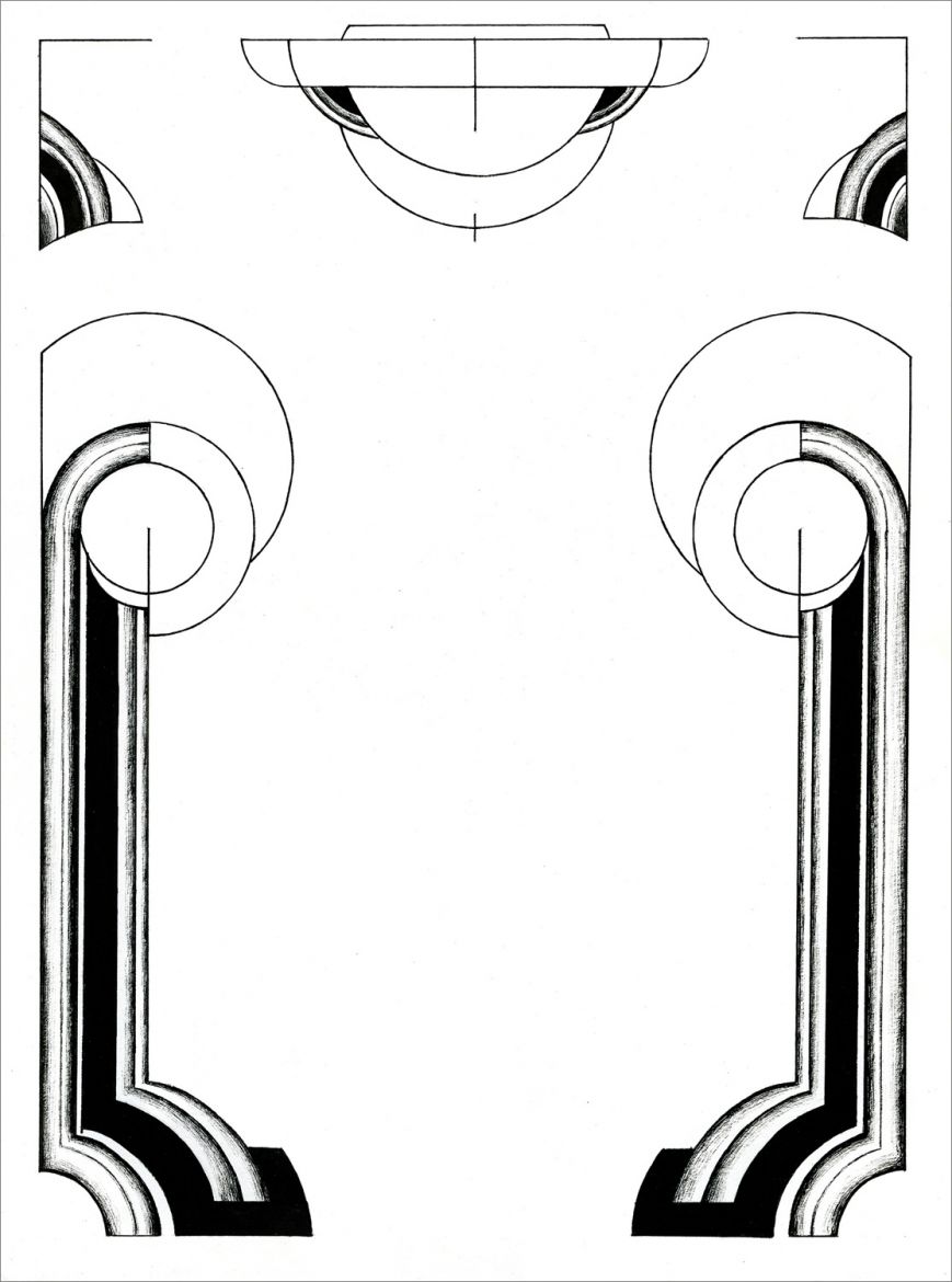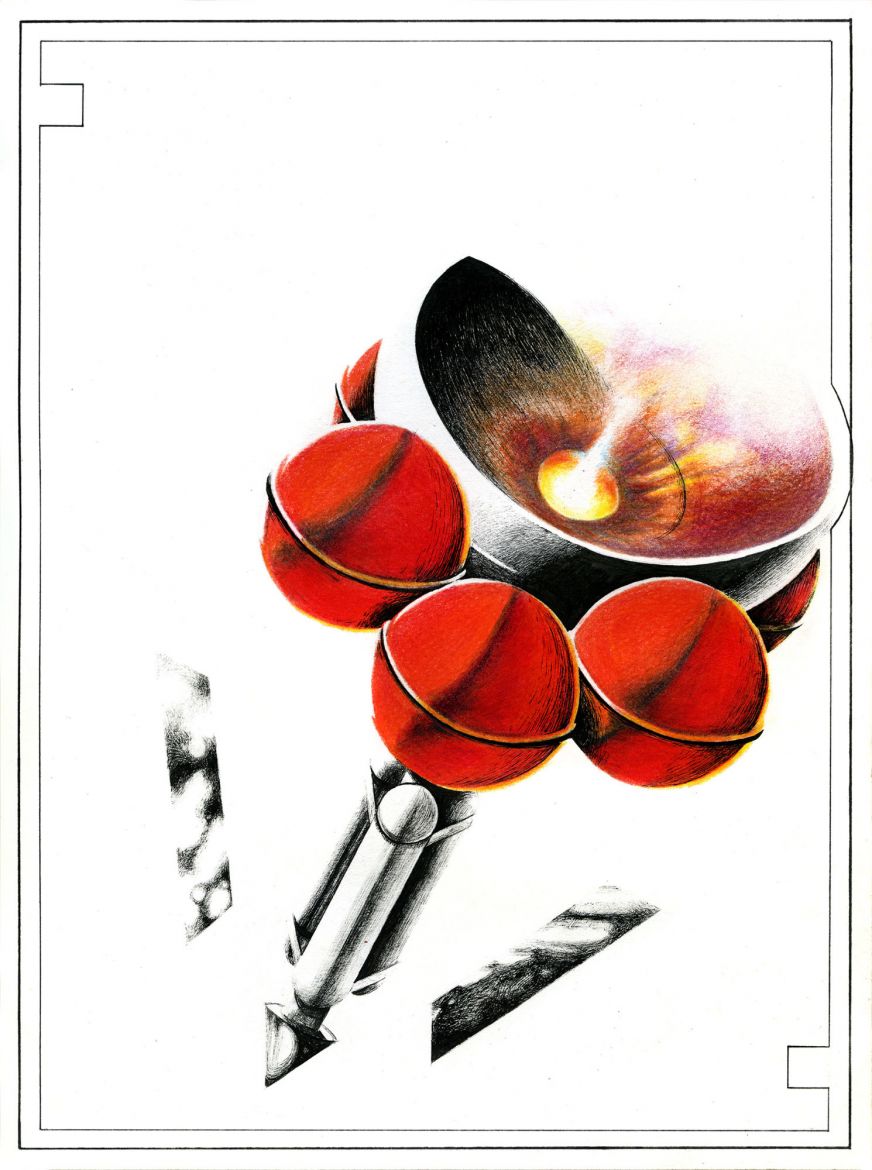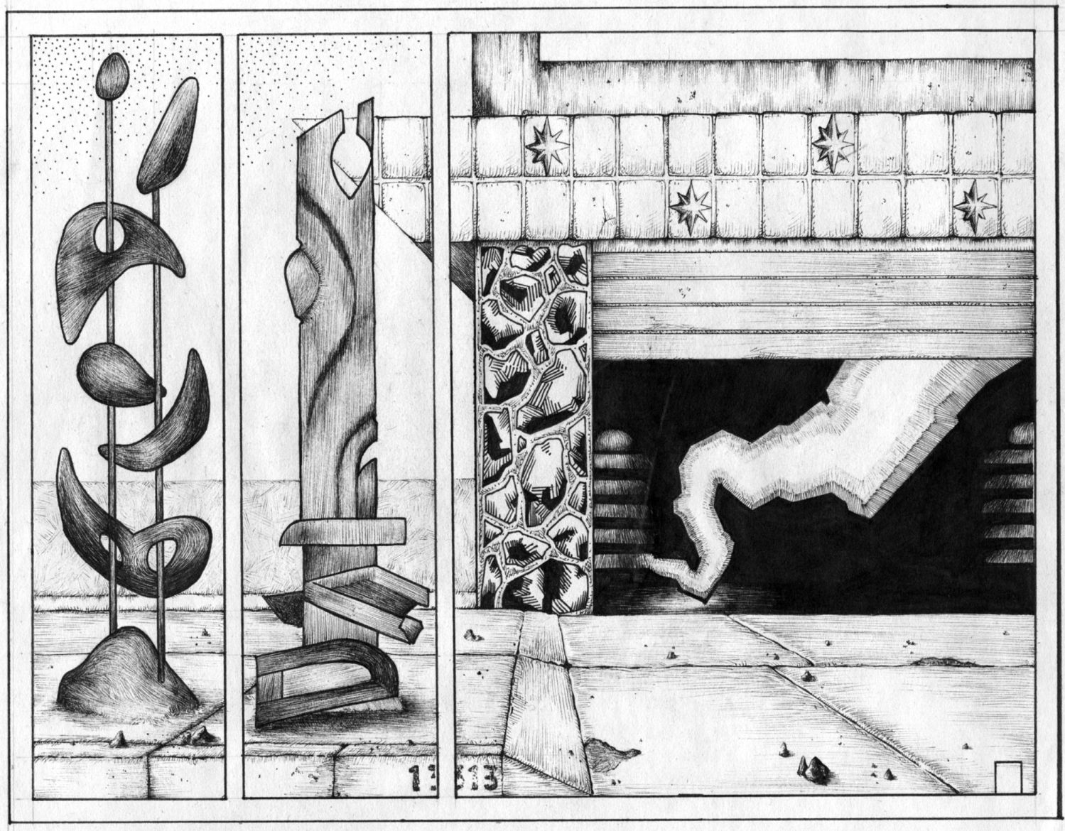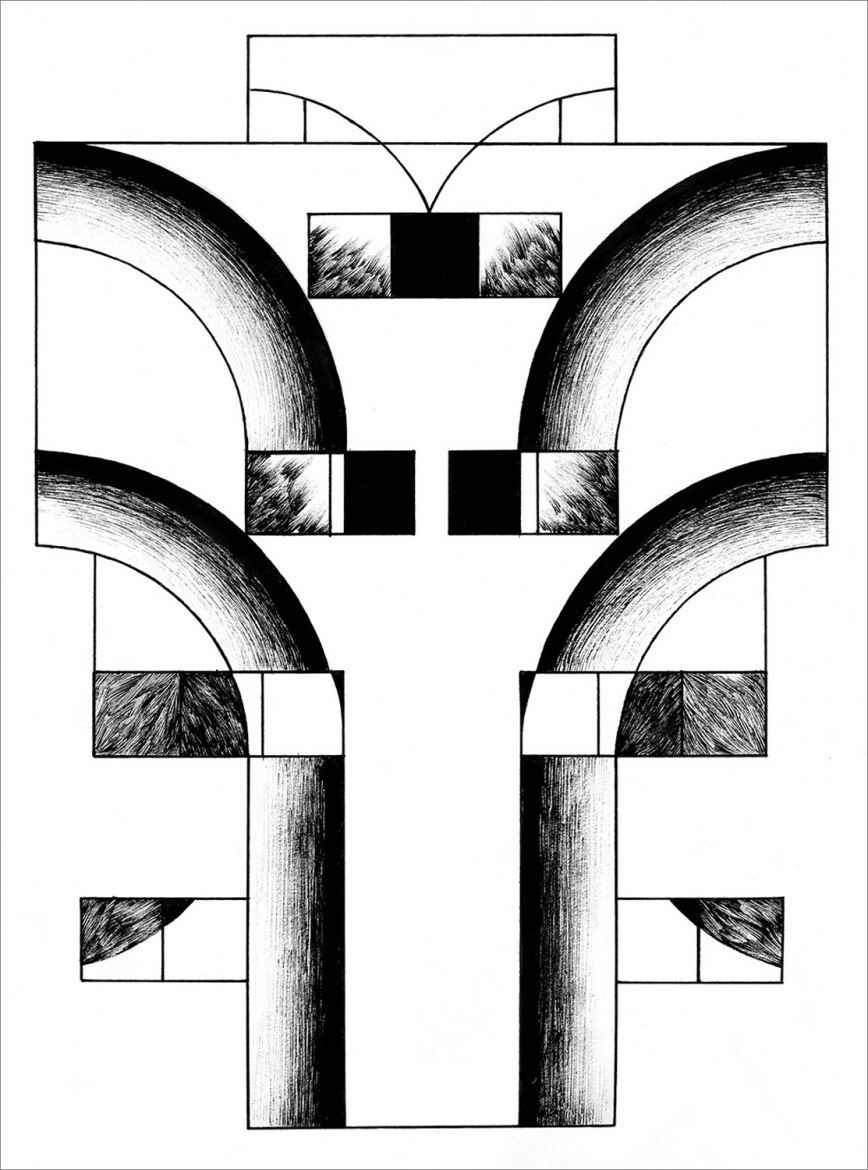 Aérographe, encre, stylo-bille, collage sur papier, 40 x 30 cm