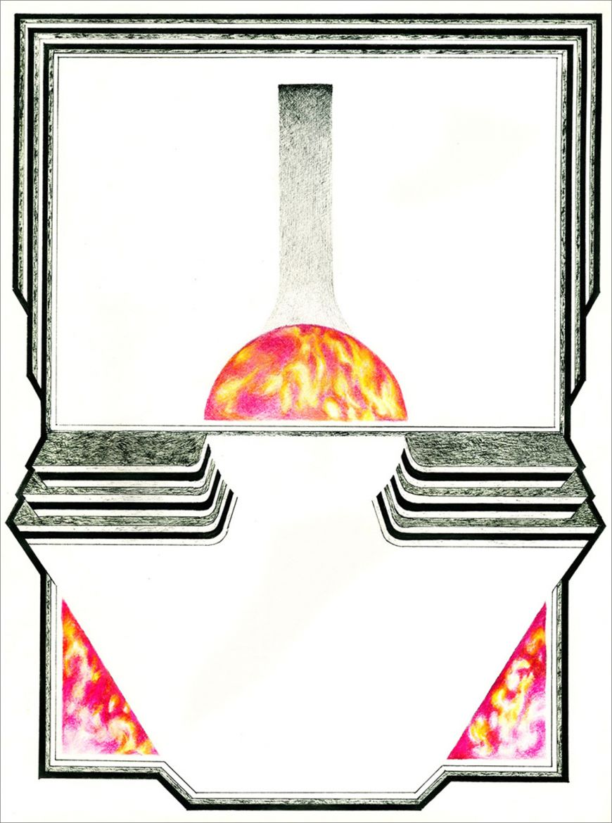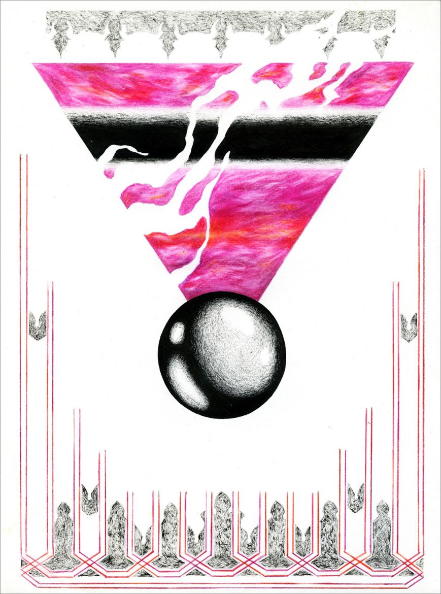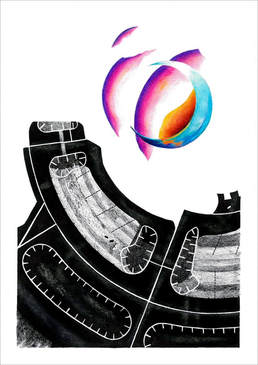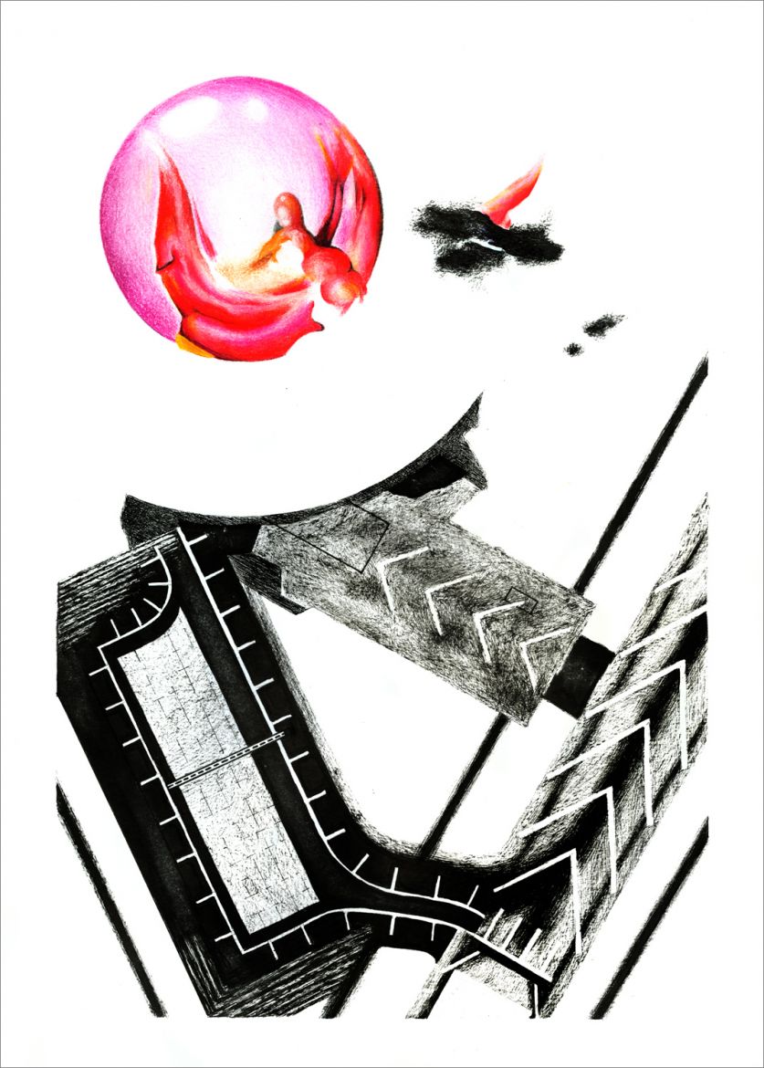 Crayon de couleur, encre sur papier, 28 x 21 cm