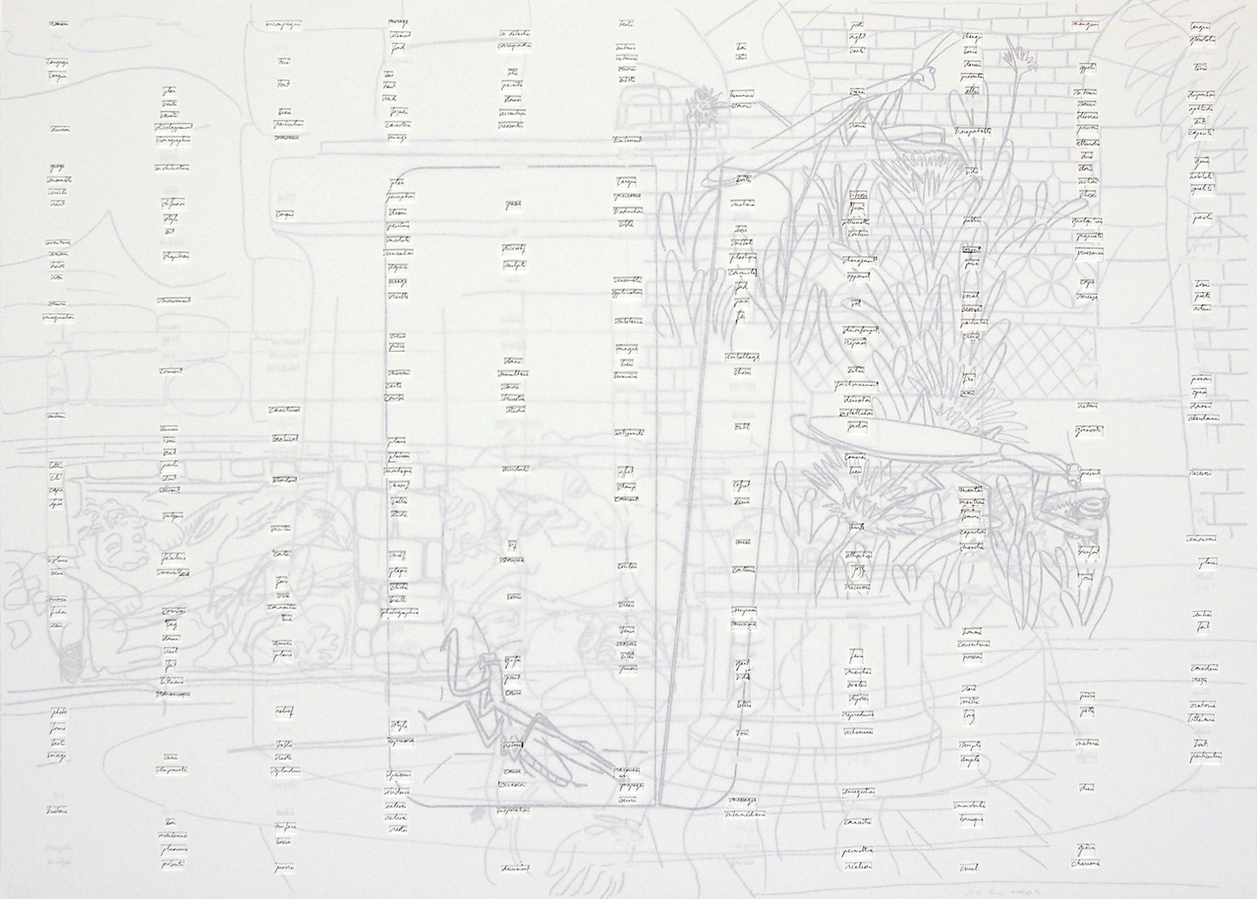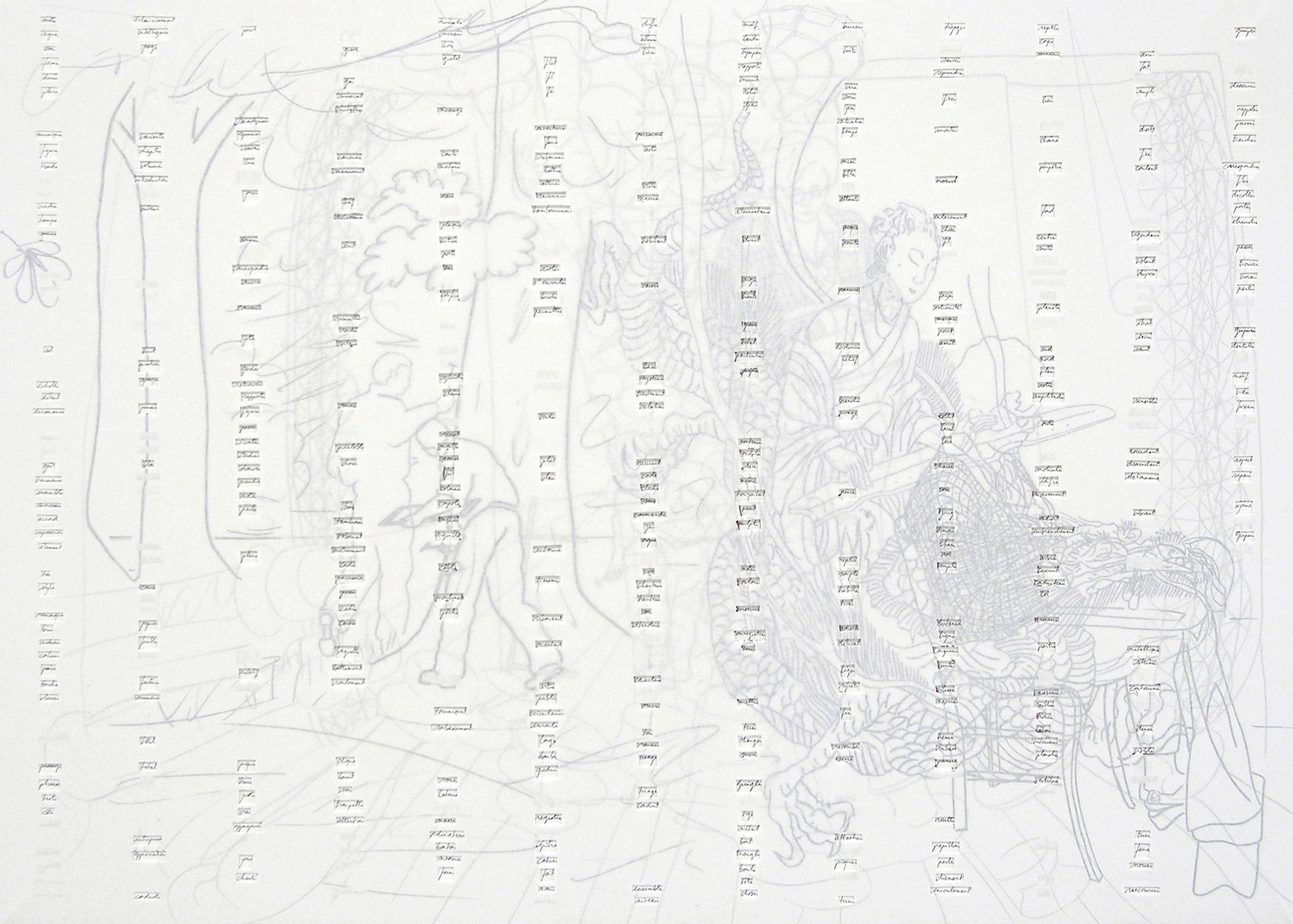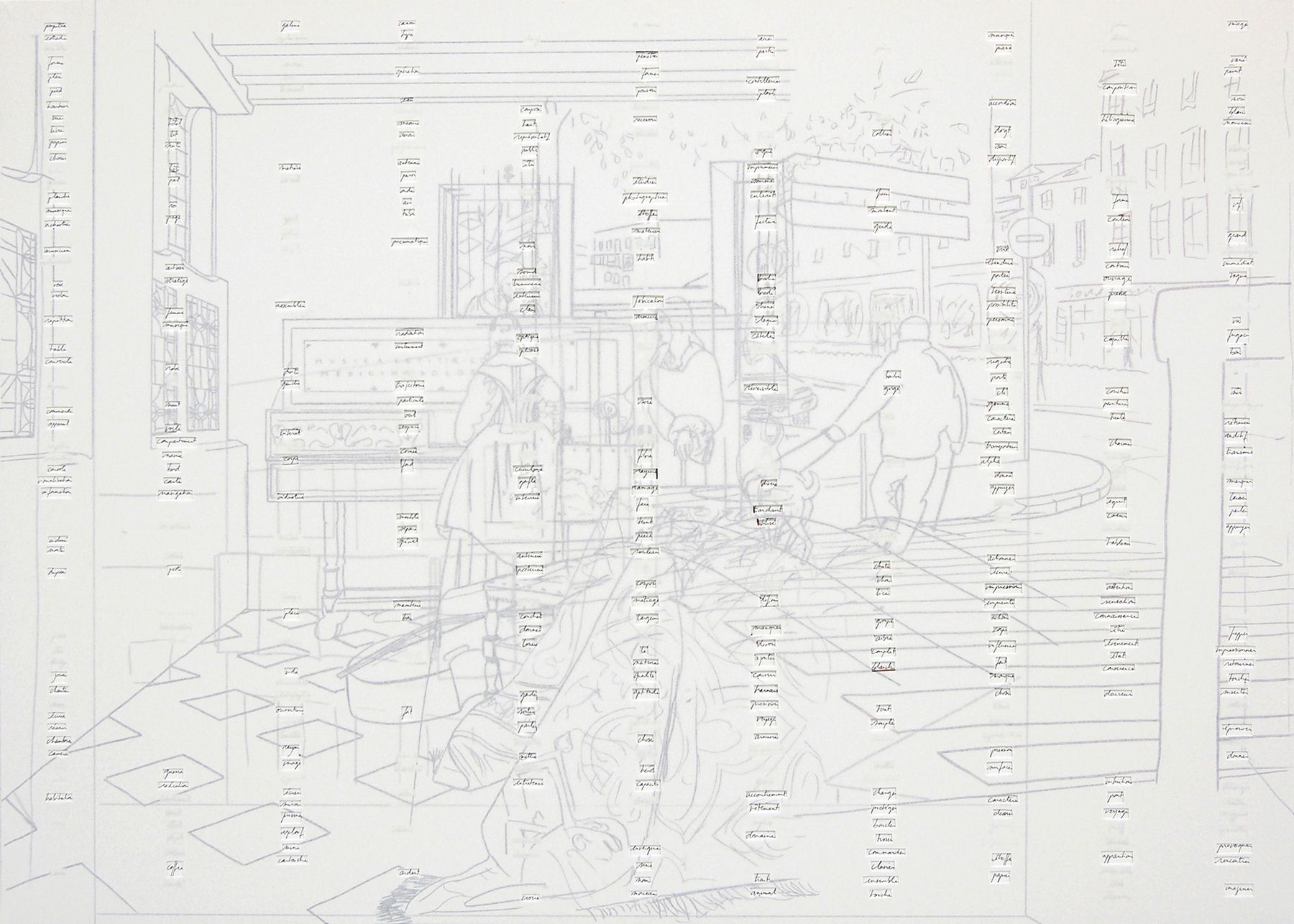 Cinq panneaux 100 x 140 cm, un panneau 200 x 280 cm (5 planches 200 x 56 cm), MDF 10 mm, papier, feutre