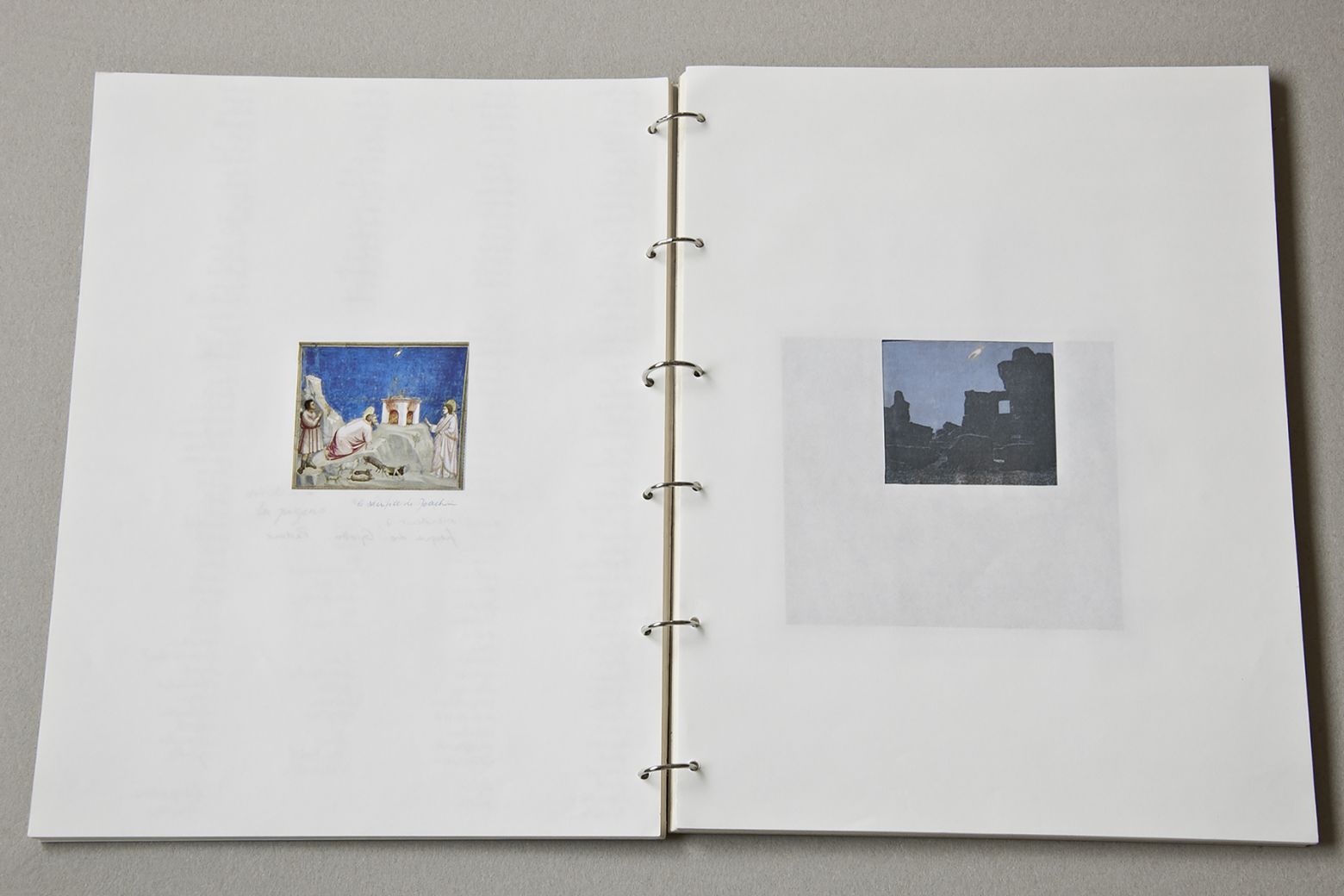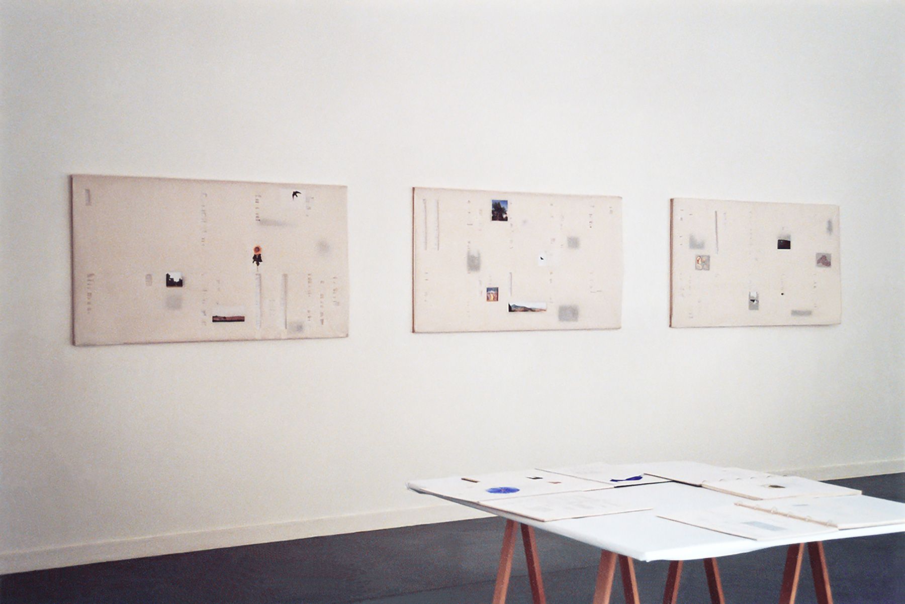 Trois panneaux, 84 x 150 cm, papiers tendus sur baguettes, collage