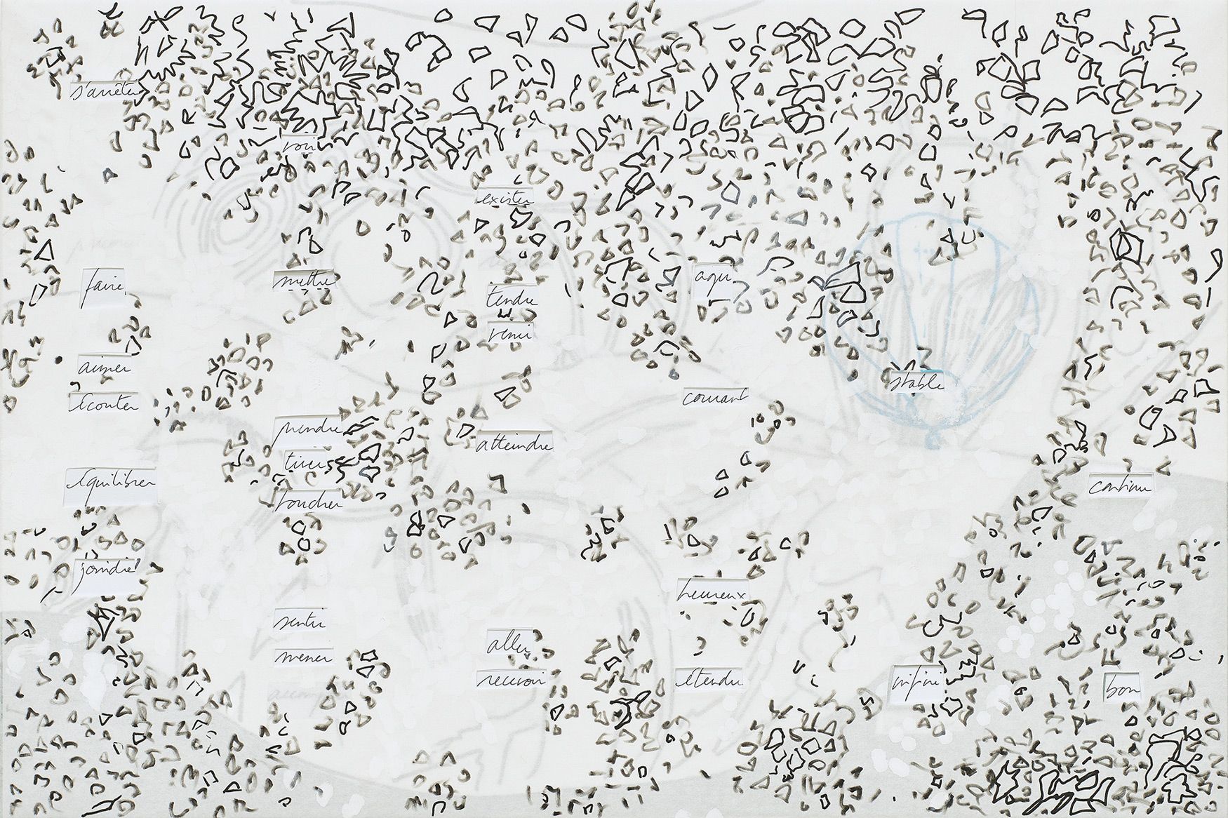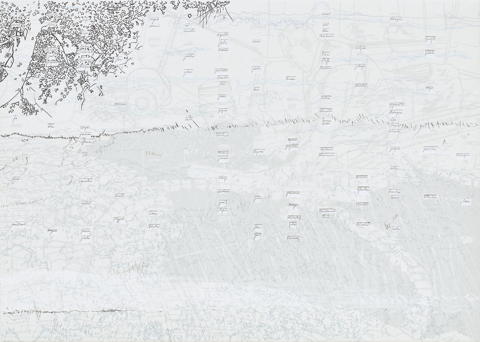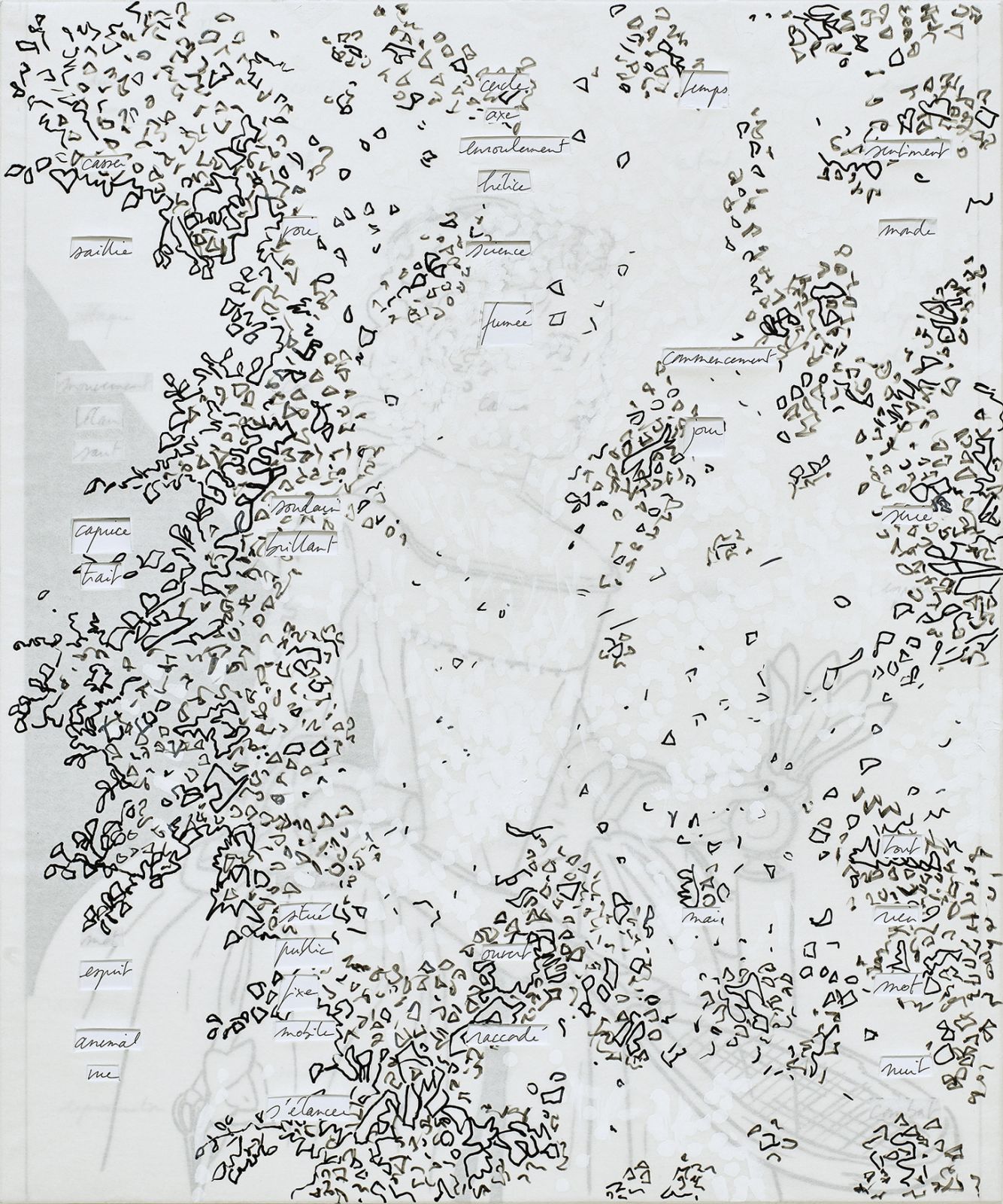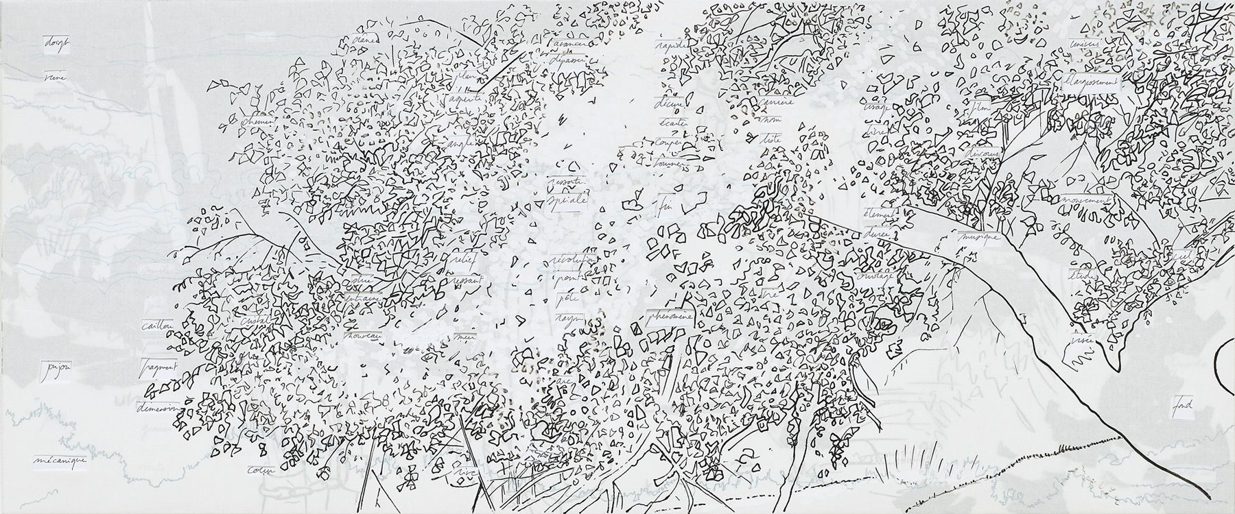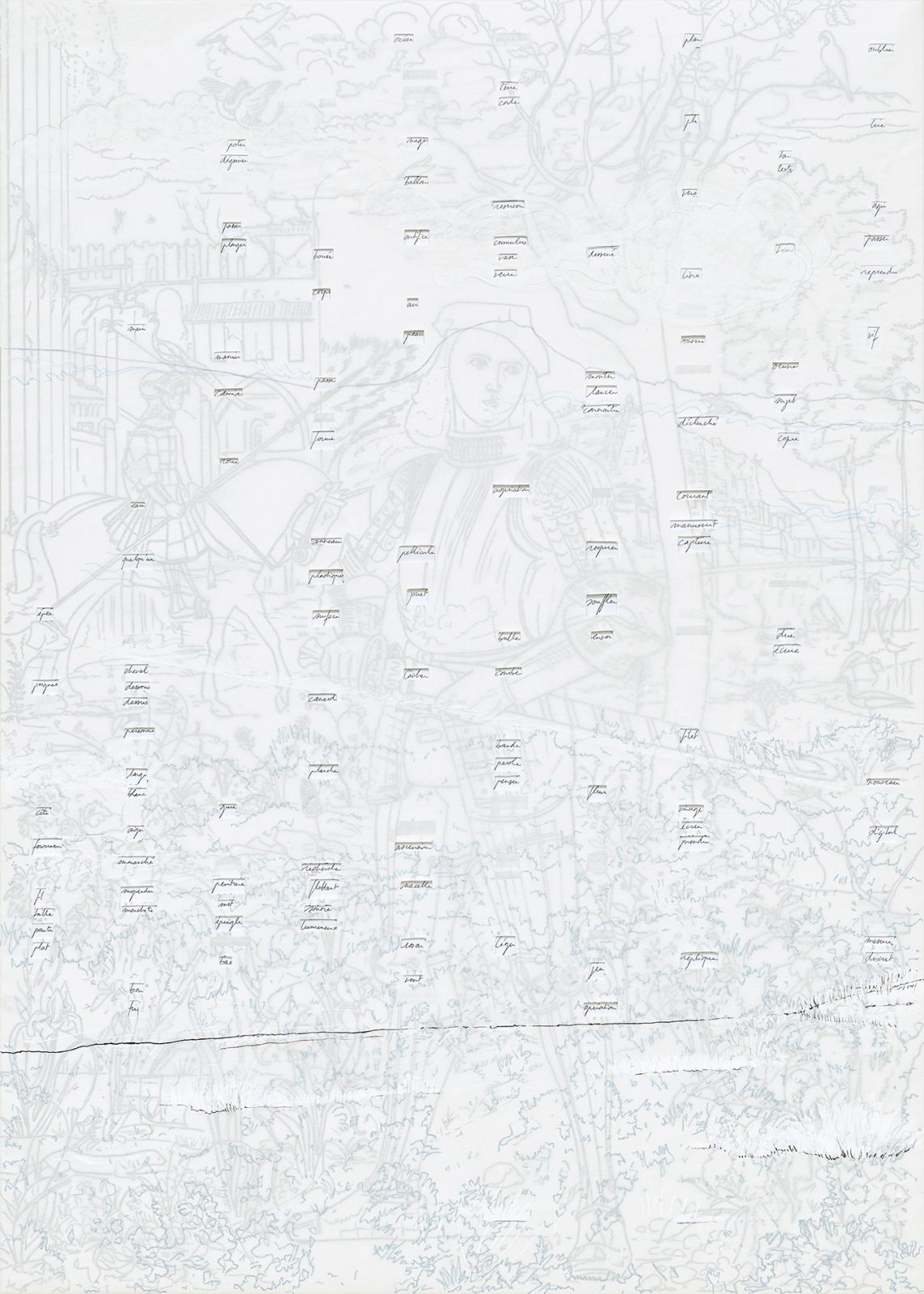 Cinq panneaux : 112 x 80 cm, 40 x 96 cm, 48 x 40 cm, 32 x 48 cm, 80 x 112 cm, contreplaqué 10 mm, papier, feutre, crayon de couleur, papier de soie coloré, stylo