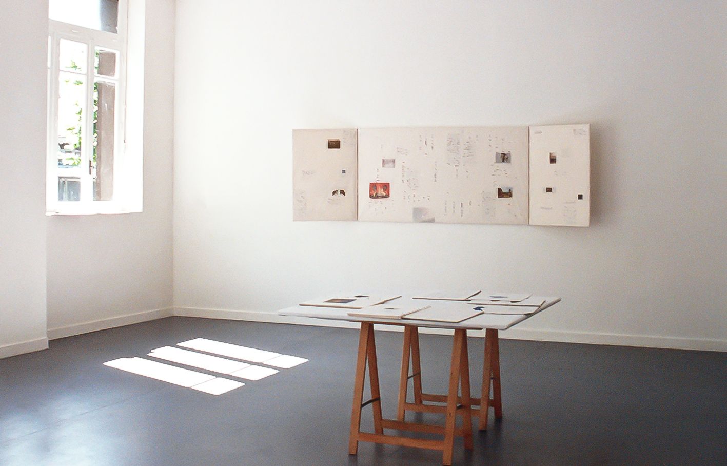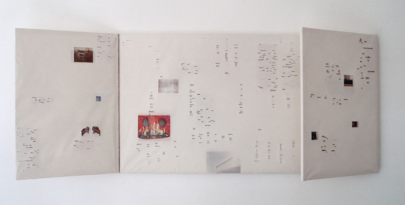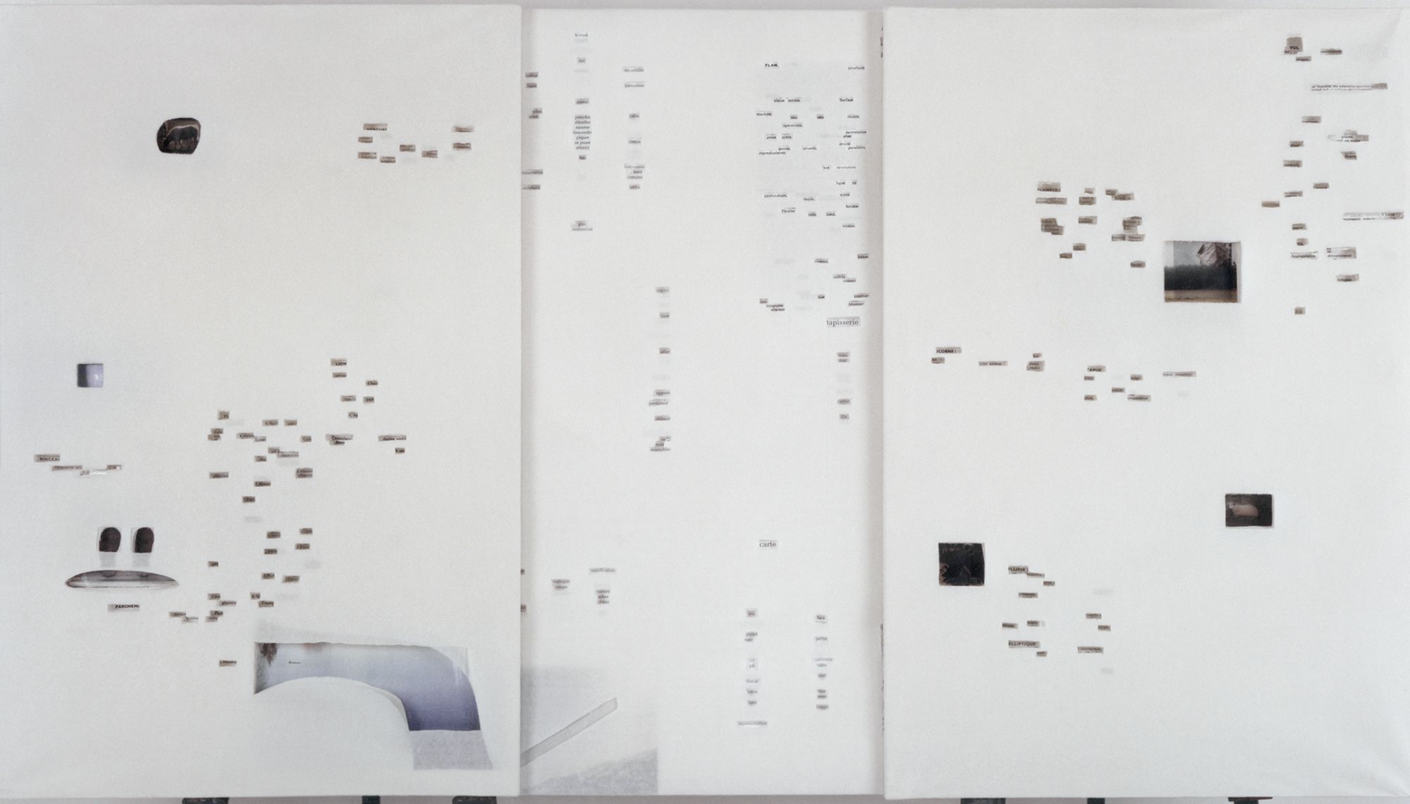 Un polyptyque, papiers tendus sur châssis, collage, 90 x 168 cm fermé (90 x 294 cm ouvert)