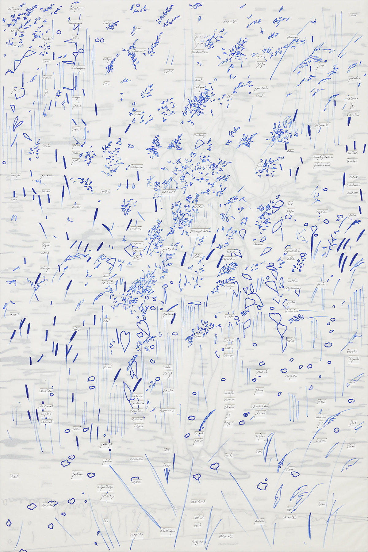 Détail du panneau, papier, feutre, stylo