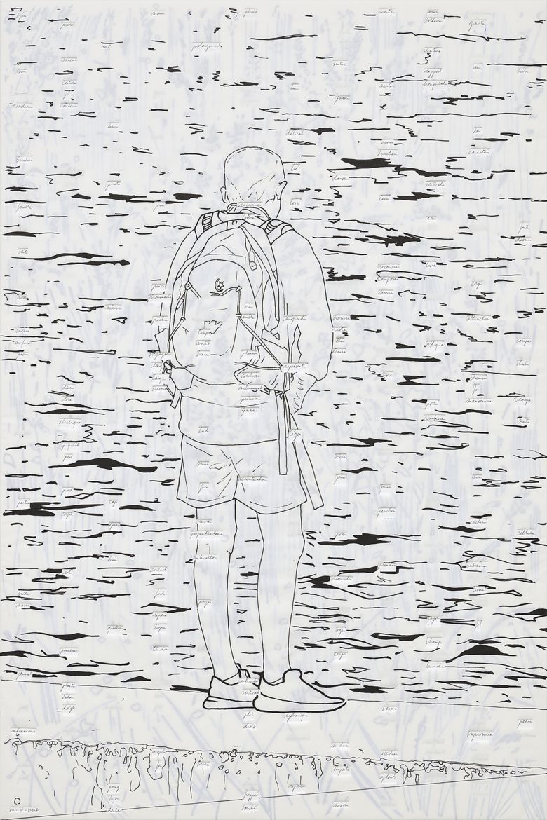Trois panneaux, 108 x 72 cm, MDF 10 mm, papier, feutre, stylo