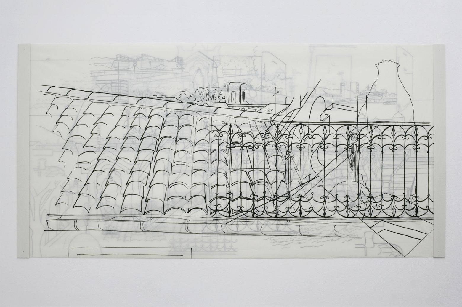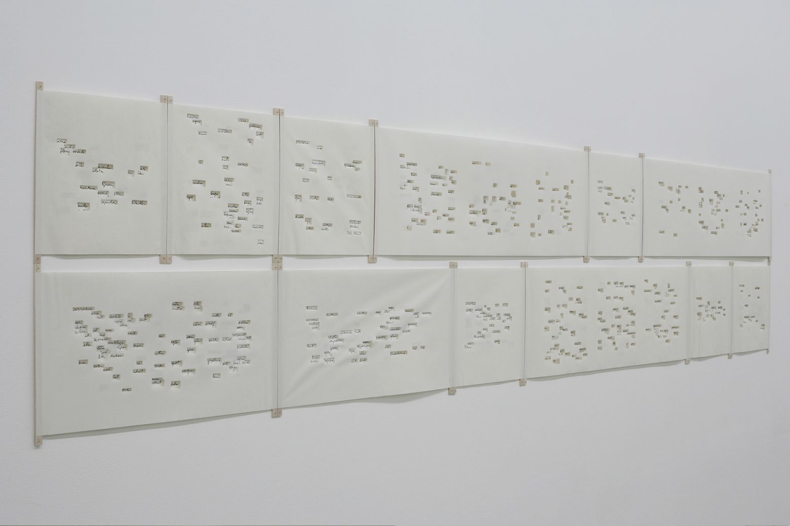 Un dessin, papiers tenus sur baguettes, feutre, 81 x 162 cm, 2005