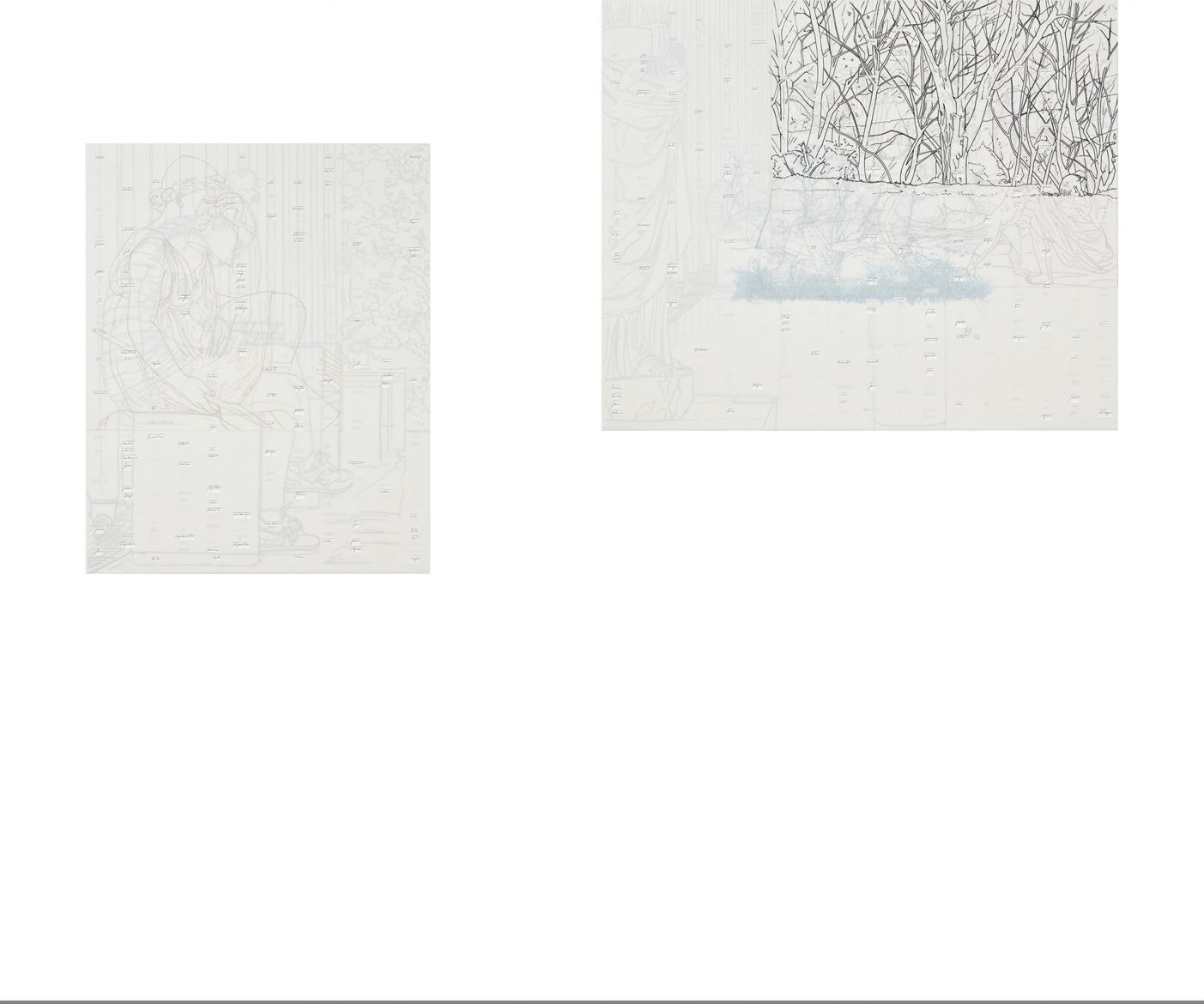 Deux panneaux, 90 x 72 cm, 90 x 108 cm, MDF 10 mm, papier, feutre, stylo