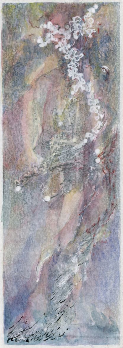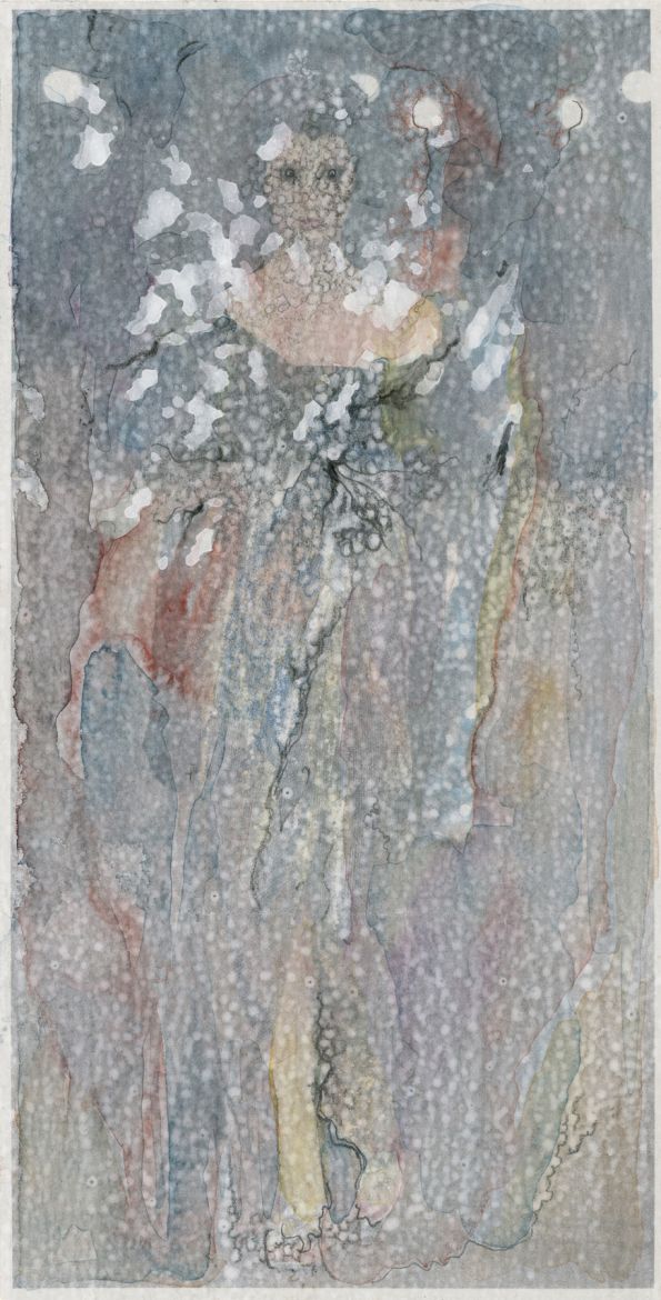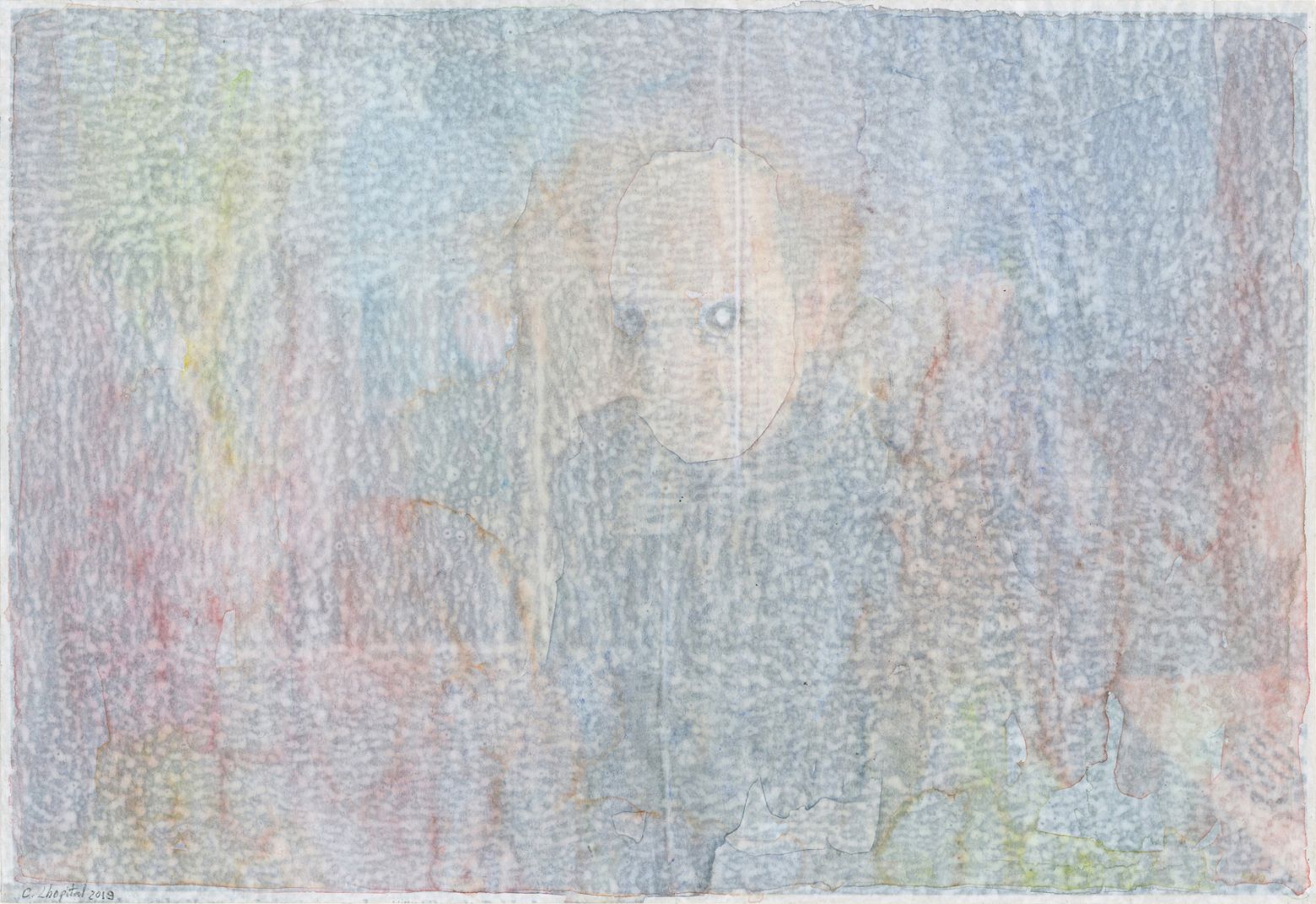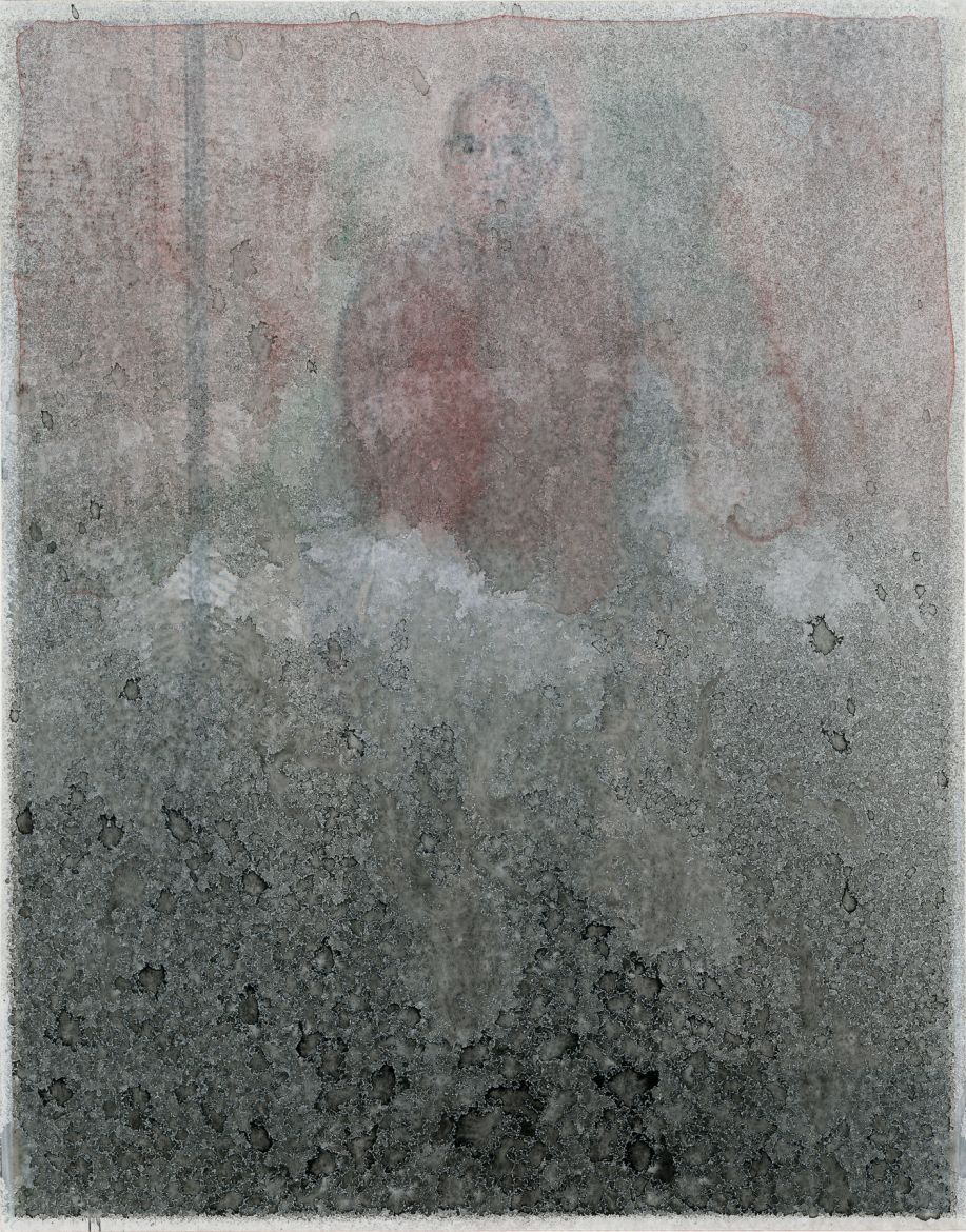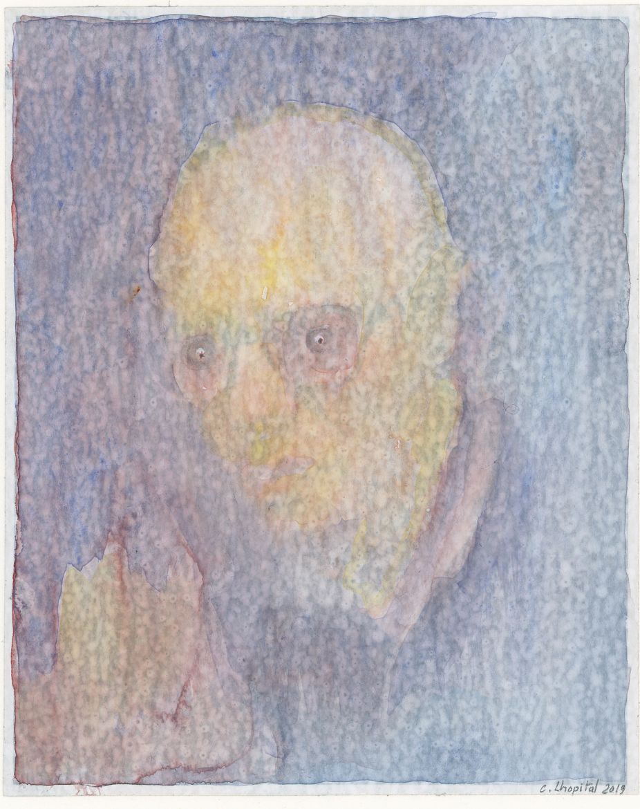 4 dessins, gesso, aquarelle et crayon graphite sur papier journal contrecollé sur papier, dimensions variables