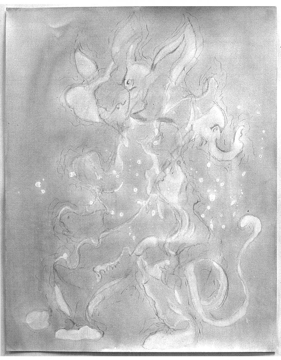 Lavis d'encre de chine, acrylique et pierre noire, 105 x 75 cm