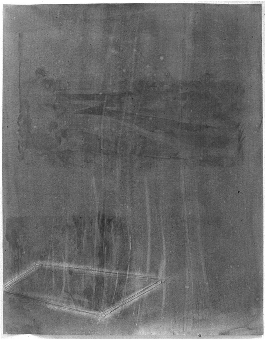 Pierre noire, crayons couleur, lavis d'encre de chine, peinture acrylique, café, aquarelle sur papier marouflé sur toile, 220 x 324 cm