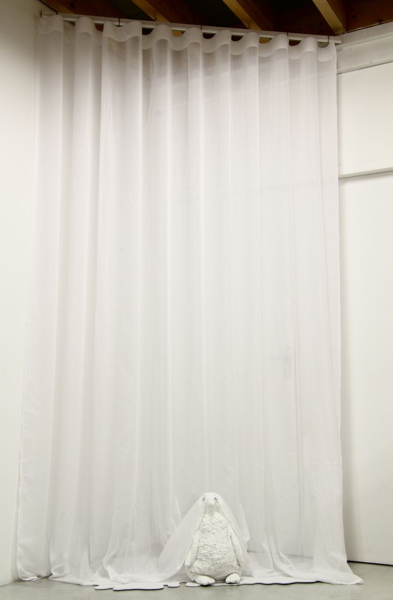 Voile Trévira classe CS, peluche, bois, peinture, rail métallique, 120 x 150 cm, hauteur 280 cm