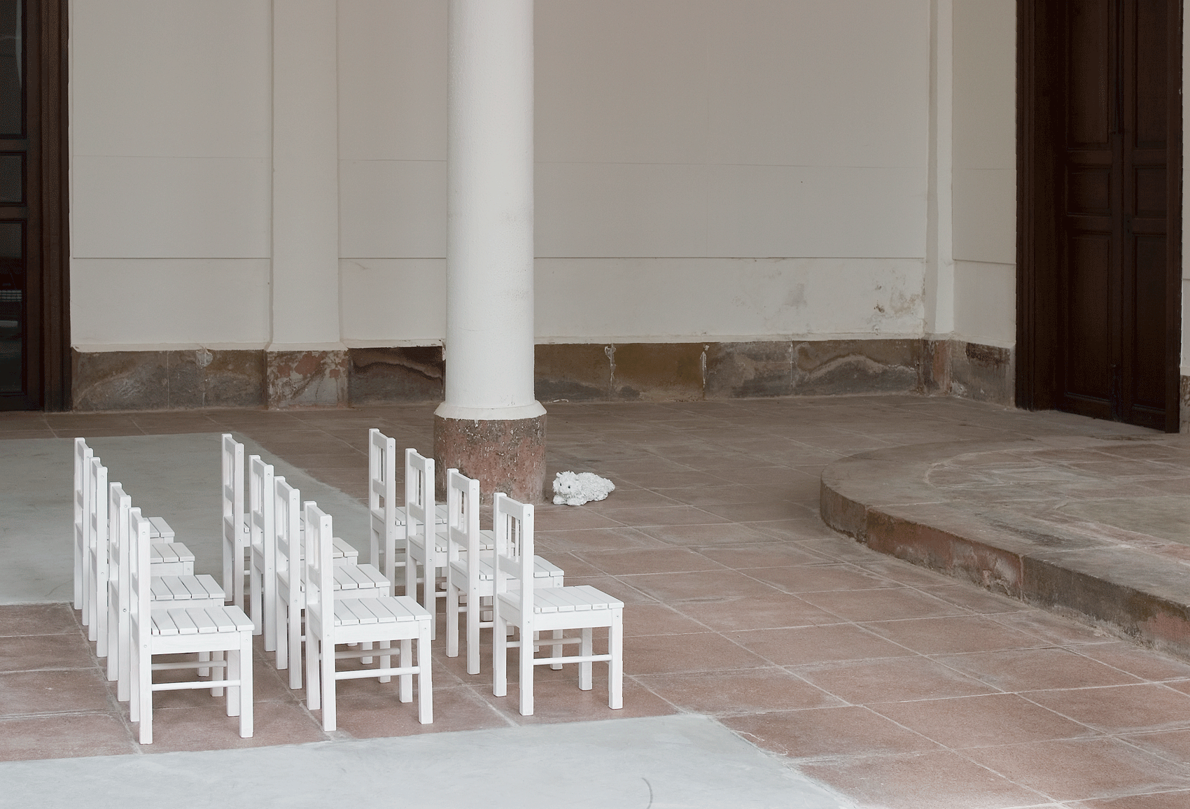 Peluches, bois, peinture, 50 x 59 x 111 cm
