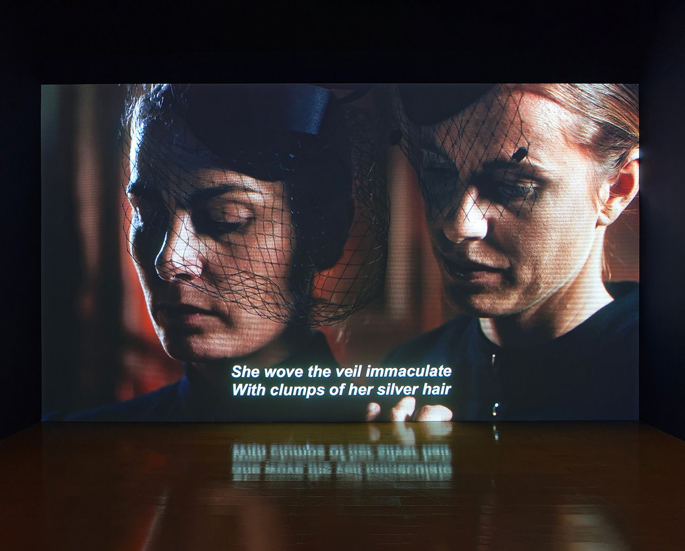 Sous le voile de la chambre, organisant des événements fictifs pour rassembler sa propre famille, l'artiste met en scène ses parents, ses proches, elle-même, dans des clichés qui reprennent les évènements clés qui rythment l'histoire d'une cellule familiale : baptême, mariage, réunions, décès... Ce sont des scènes soigneusement organisées, prenant place dans de lourds décors confinés, où chaque objet, la pose de chaque personnage est symbolique dans un univers familier développant son propre système de croyances et de rituels. Se crée alors un groupe, en marge de la réalité, lui permettant d'en inventer l'organisation portée par ses rites, ses codes, ses croyances et ses dysfonctionnements.