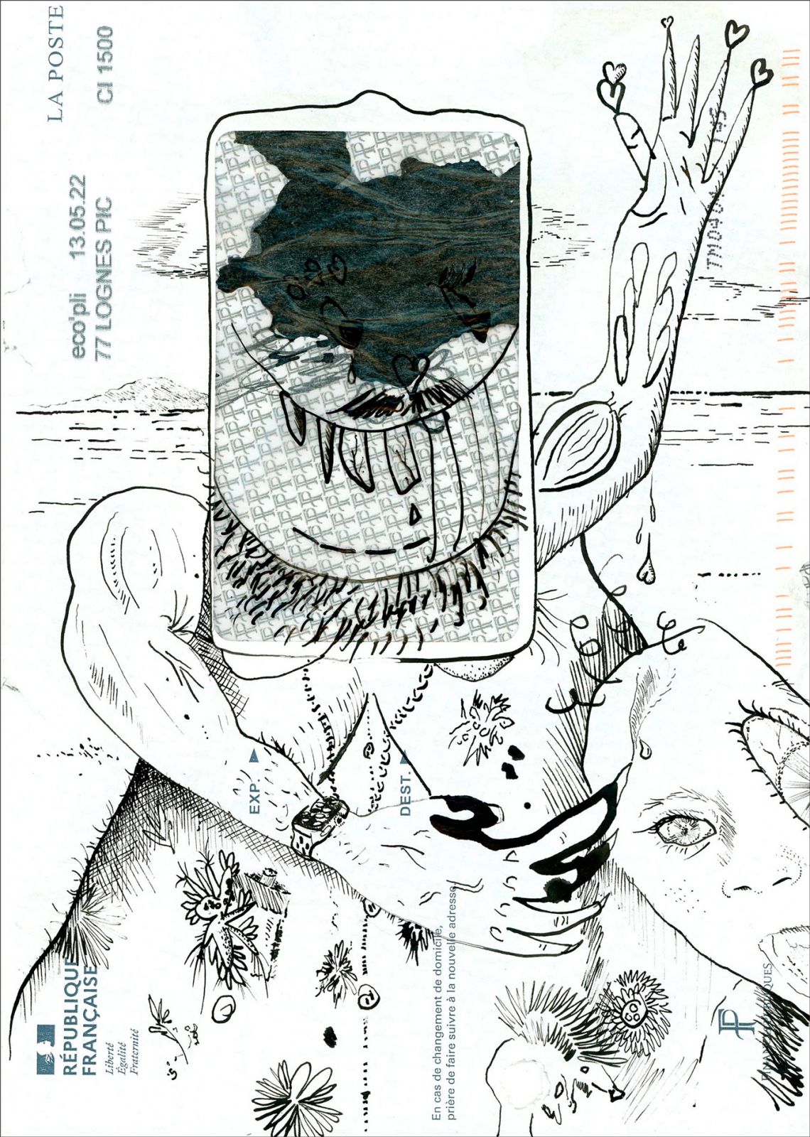 Encre de chine sur enveloppe, 22,7 x 16 cm