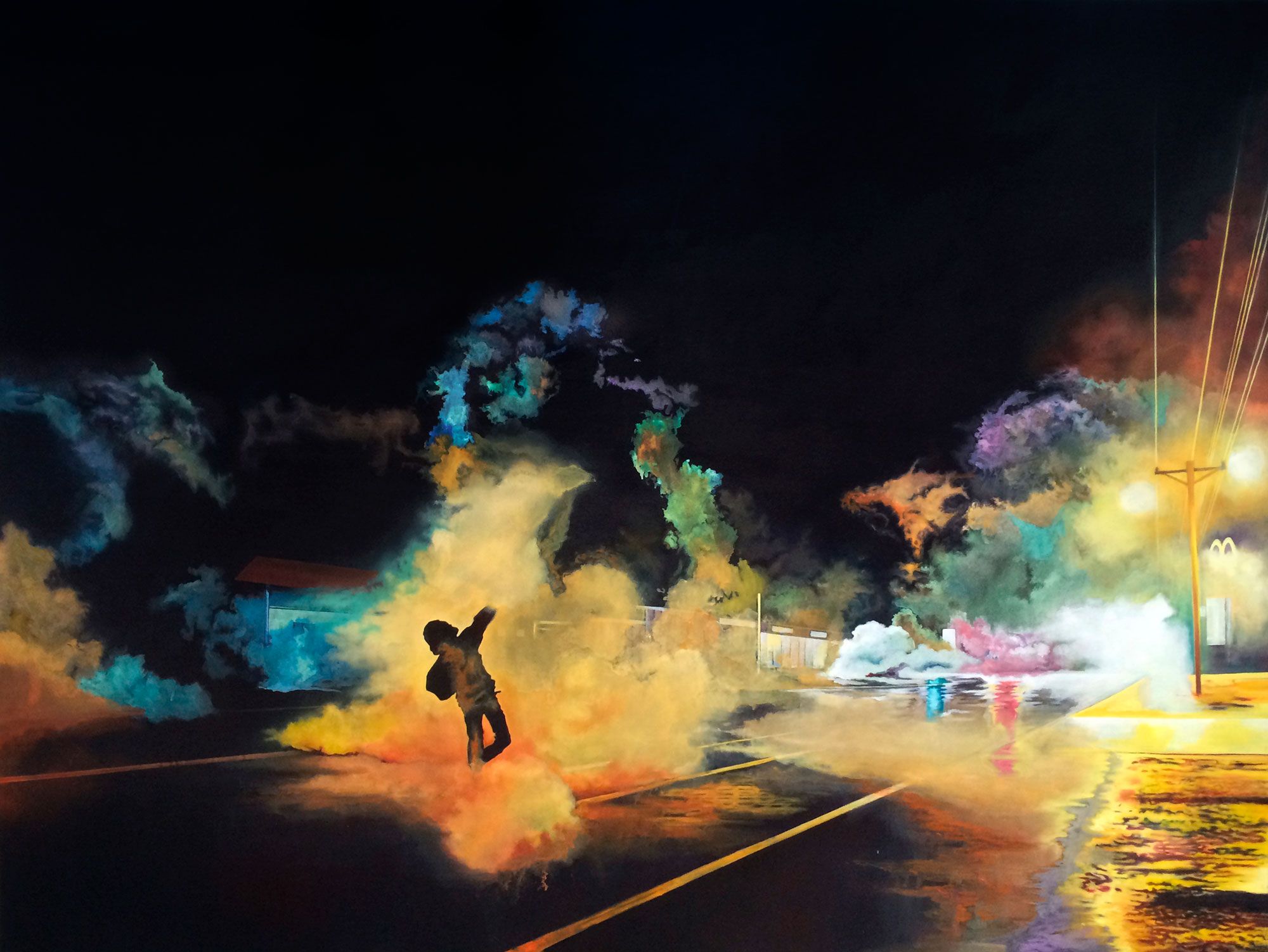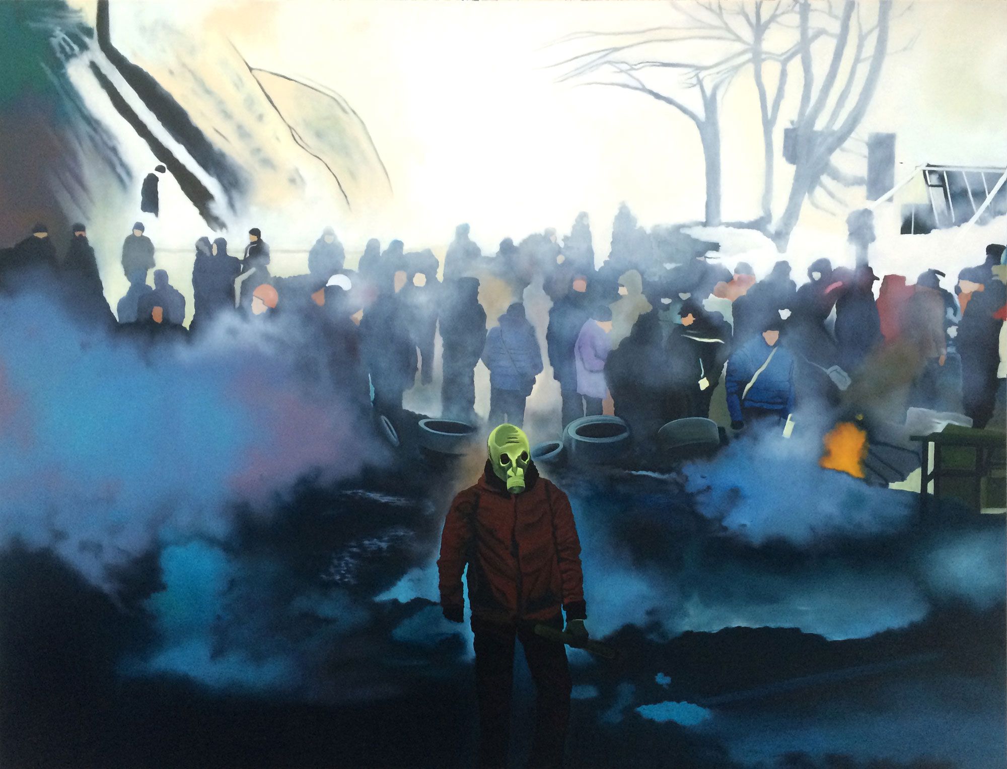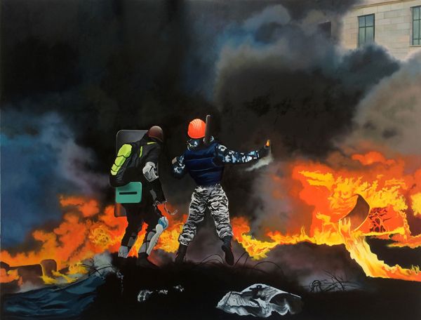 Peinture à carrosserie et huile sur toile, 140 x 120 cm