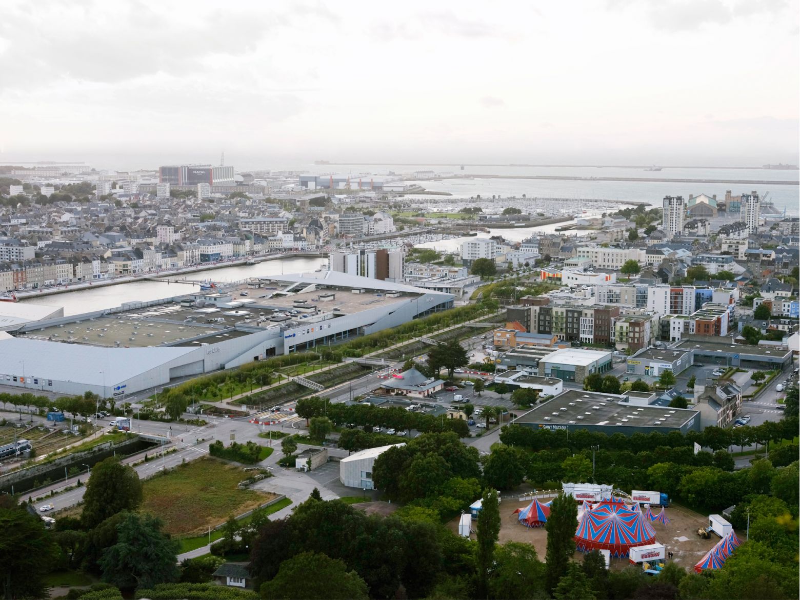 Vue du centre et du port de Cherbourg depuis le Fort du Roule ; Cherbourg-en-Cotentin, août 2023