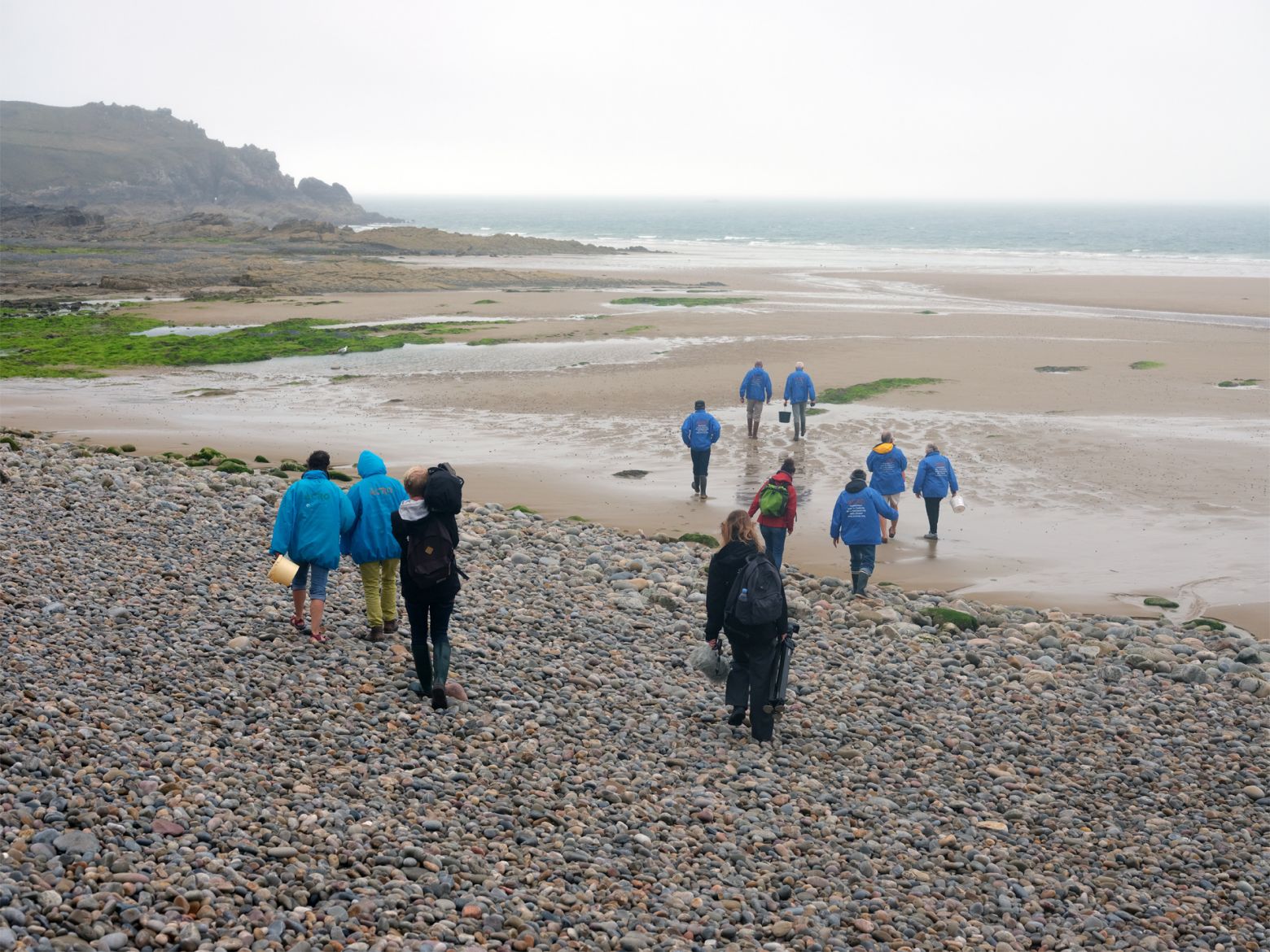 Les bénévoles de l'ACRO (Association pour le Contrôle de la Radioactivité dans l'Ouest) durant la campagne de prélèvements de l'Observatoire Citoyen de la Radioactivité dans l’Environnement (OCRE) août/septembre 2023 ; Baie d'Écalgrain, la Hague, 31 août 2023