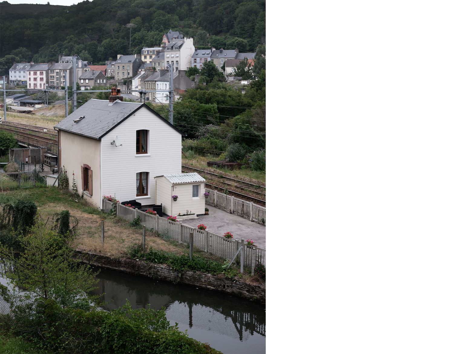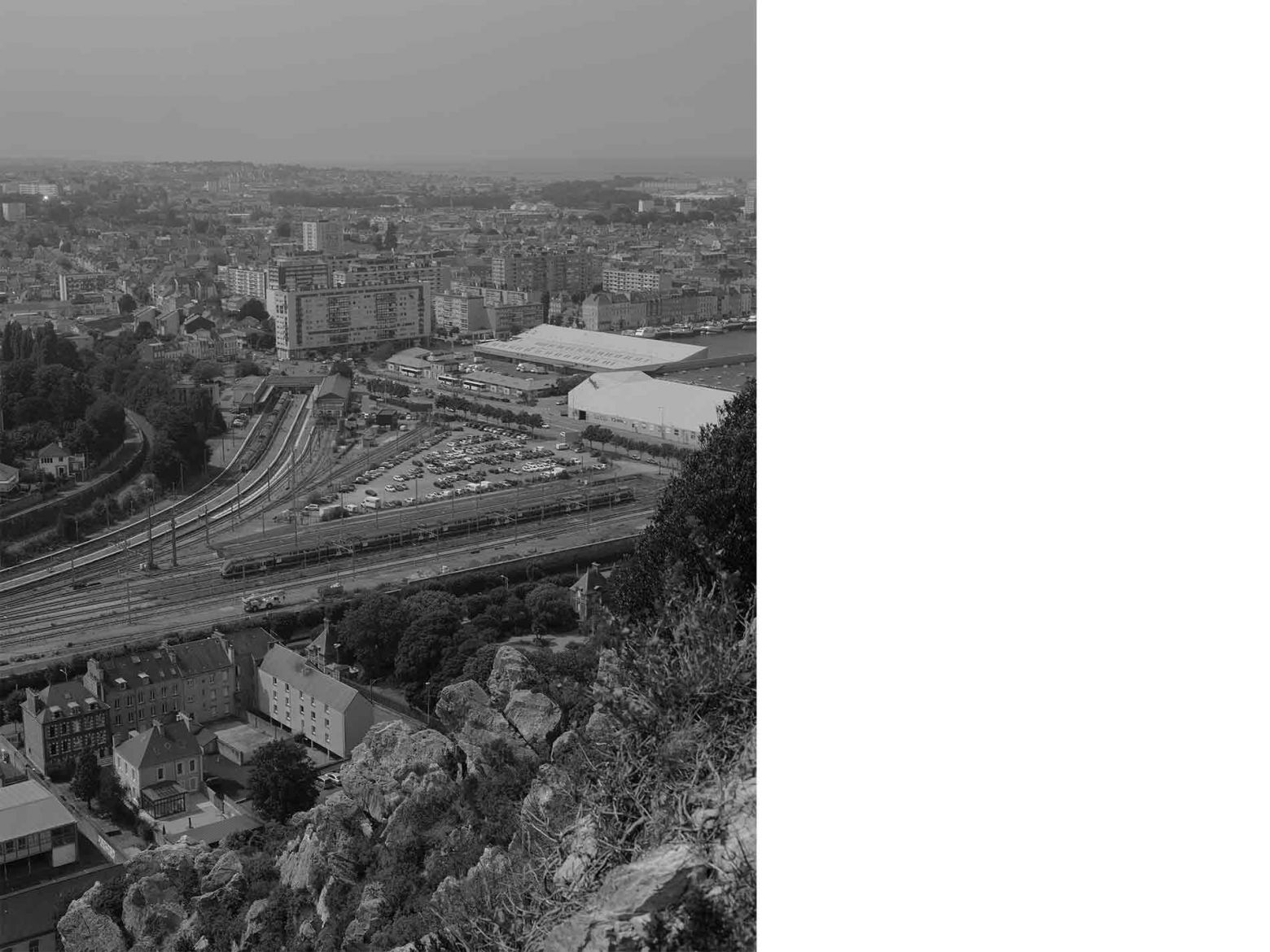 Vue sur l’ancienne voie ferrée et des habitations ; Cherbourg-en-Cotentin, juillet 2022
