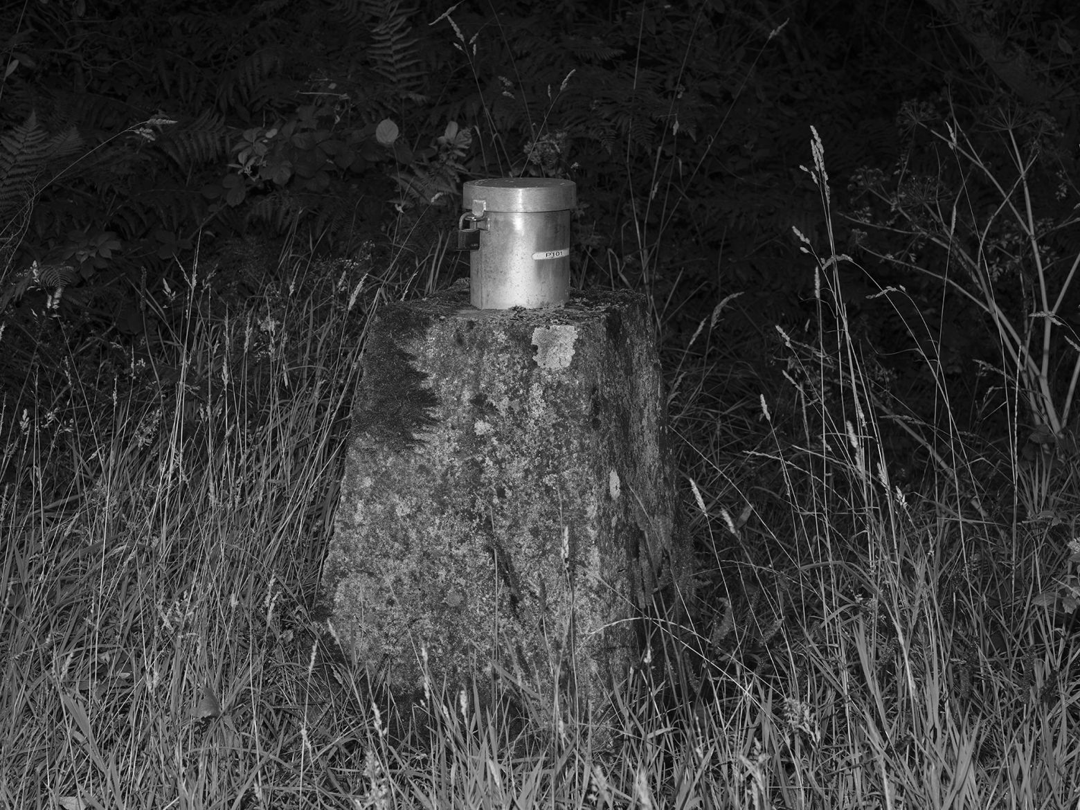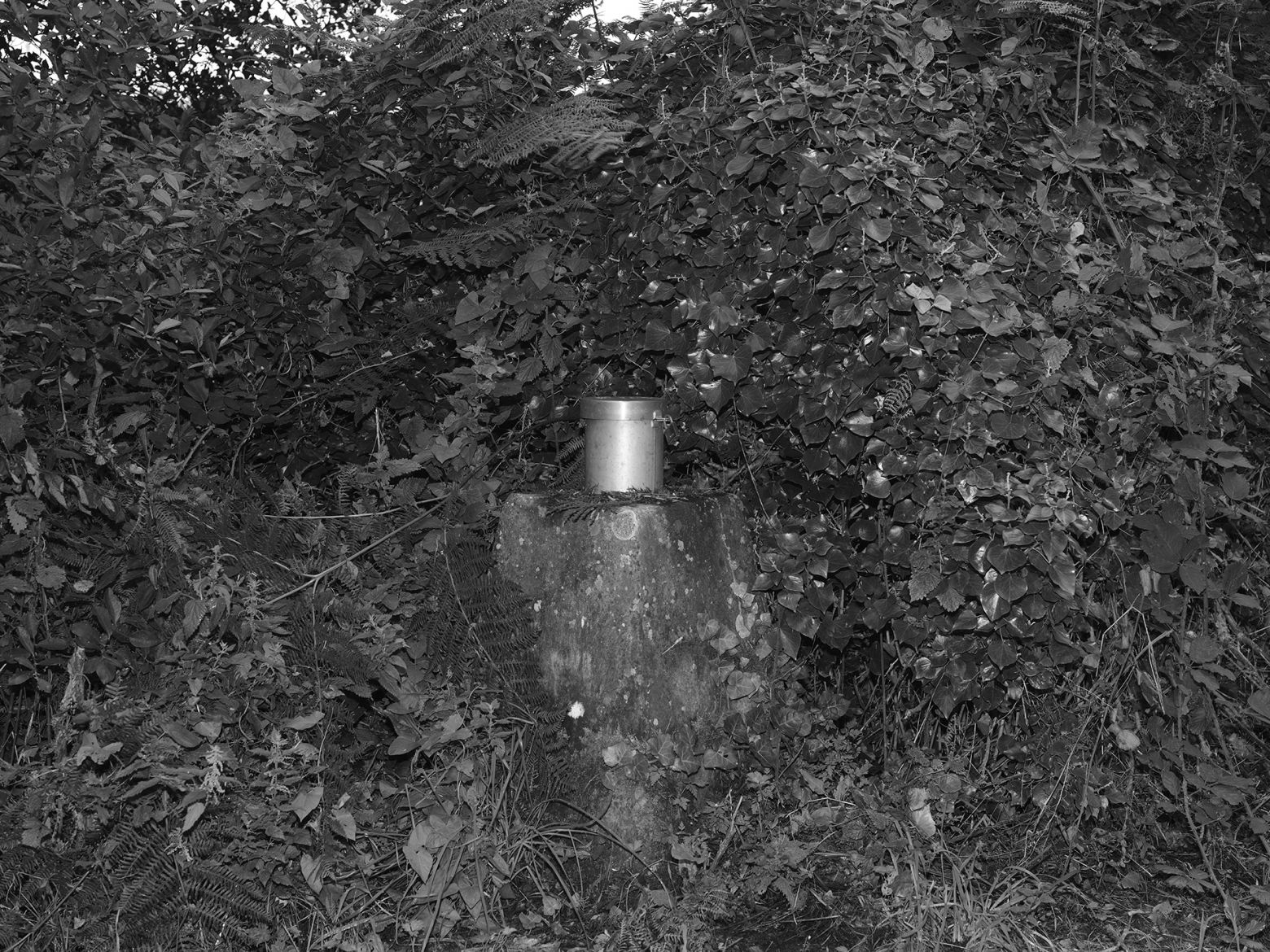 Pizomètre (forage pouvant aller jusqu'à 50m de profondeur) autour de l'ANDRA (l'Agence nationale pour la gestion des déchets radioactifs) permettant de surveiller le taux de radionucléides dans les nappes d'eau souterraines ; Digulleville, la Hague, août 2023