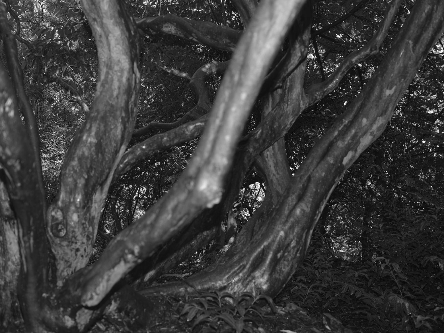 (Diptyque) Tronc d'un eucalyptus centenaire, Jardin botanique de la Roche Fauconnière ; Cherbourg-en-Cotentin, août 2023