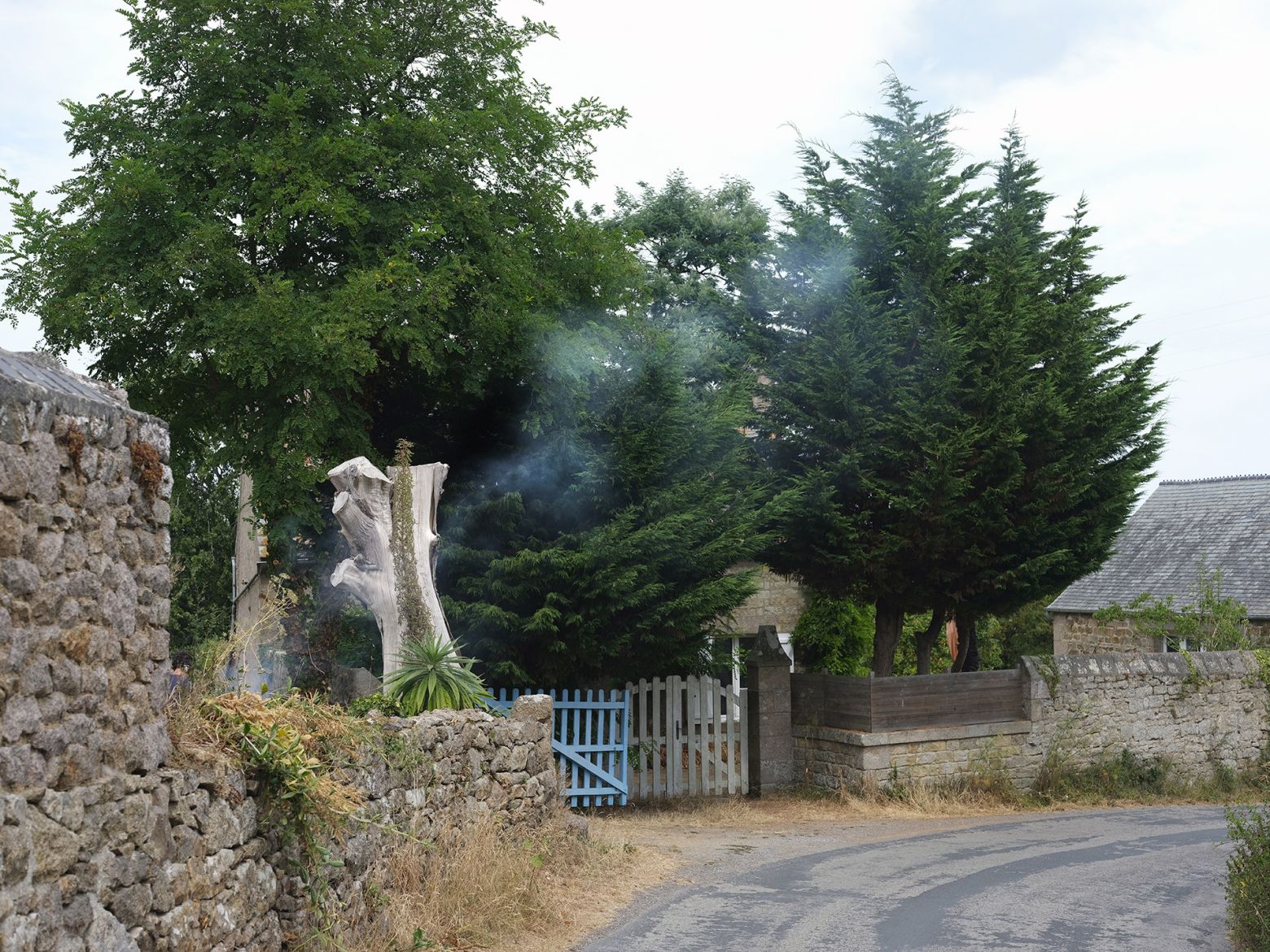 Fumée dans un jardin du hameau Ès Renouf ; Fermanville, août 2022