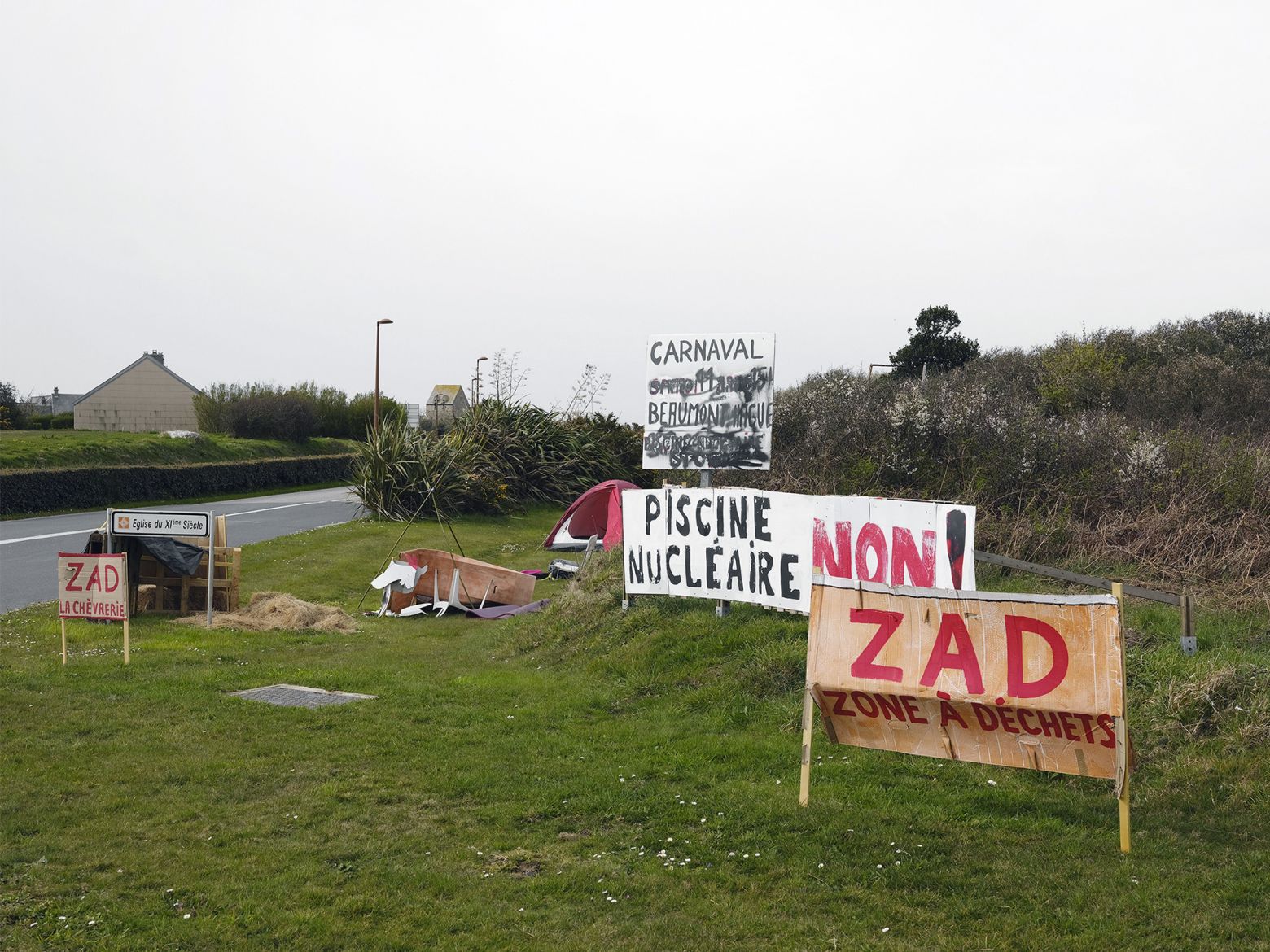 Durant un an, dans la presqu’île du nord Cotentin, Julien Guinand a photographié et filmé les traits les plus visibles d’un territoire contrasté ainsi que les motifs liés à son inquiétude climatique. Il s’est particulièrement intéressé aux cinq sites majeurs de l’industrie nucléaire française présents dans la péninsule : l’usine de retraitement des déchets de La Hague (Orano), l’EPR de Flamanville (EDF), le centre de stockage de la Manche (ANDRA), la fosse des Casquets (appelée Hurd deep) et le site de construction de sous-marins nucléaires de Cherbourg (Naval Group).