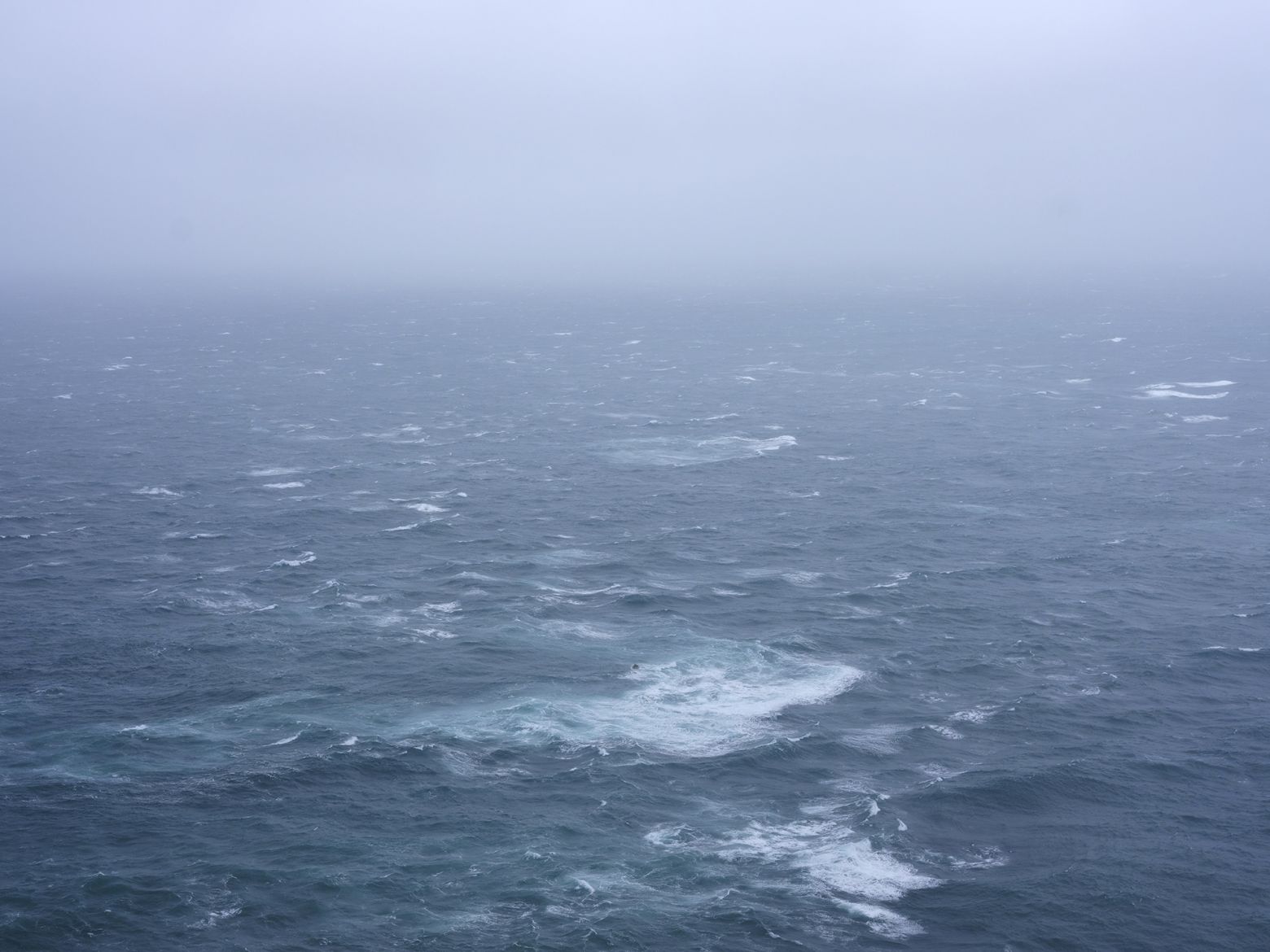Vue en direction de la fosse des Casquets (Hurd deep). Située dans un bas-fond du plateau continental profond de 100 à 160 m sous le niveau moyen de la mer, dans les eaux du bailliage de Guernesey. De 1946 à 1973, la zone a été utilisée pour le déversement de plusieurs milliers de conteneurs de déchets radioactifs, notamment provenant du Royaume-Uni et de la France ; Goury, la Hague, août 2023