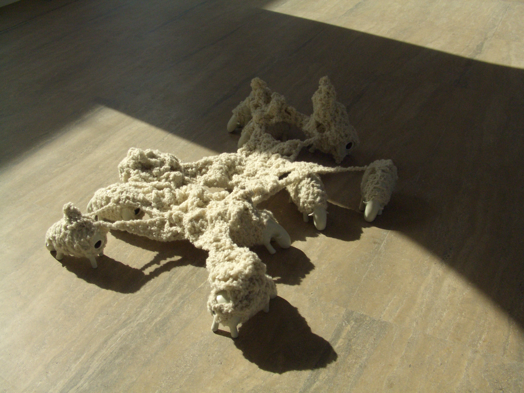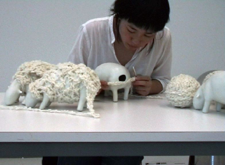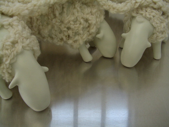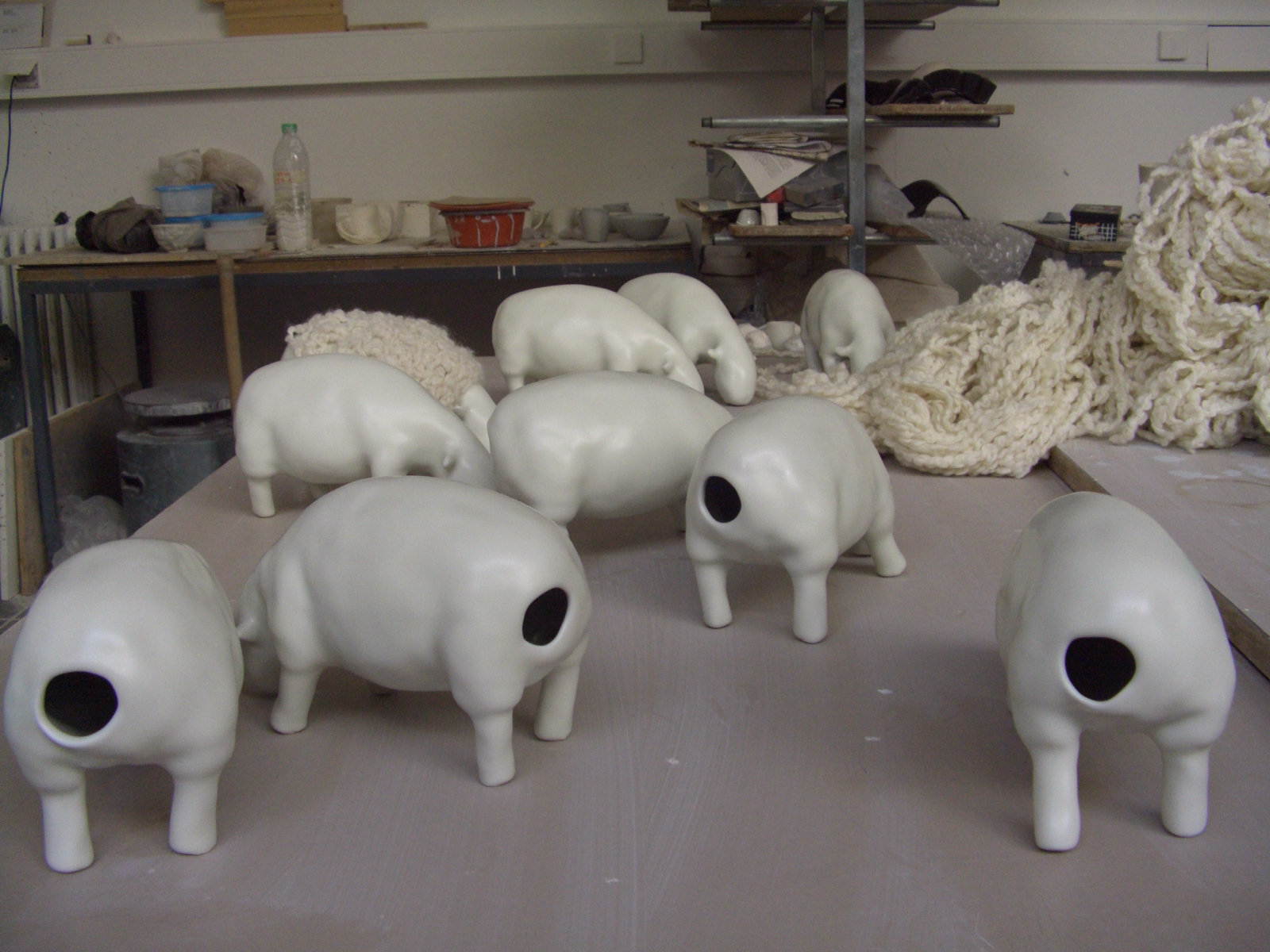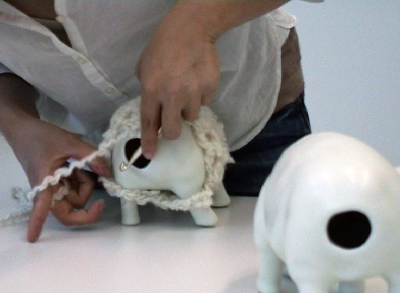 Sculptures et vidéo, porcelaine, laine, 10 x 25 x 13,5 cm par pièce