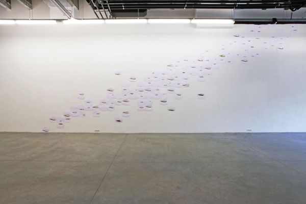 Pour comprendre il faut sortir des formes et se rapprocher des supports de papier. Qu'y voit-on ? Des séries de brûlures. Des points certes, mais moins des points que la patiente application à brûler la feuille sans la brûler intégralement. On imagine la tension visuelle d'une pareille opération, le corps terriblement concentré sur la pointe incandescente du pyrograveur, l'attention rivée à la bonne température pour obtenir tous les tons, des plus clairs aux plus sombres, et éviter en permanence la perforation du papier.