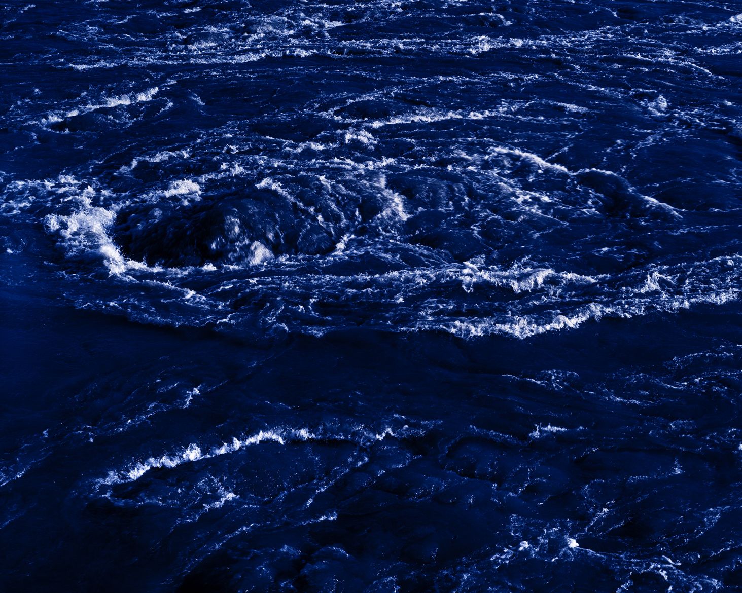 « Dans la série intitulée Les Vagues, est photographié, en close up, un cours d'eau mouvementé. L'eau et l'écume mêlés, les remous. Les vagues apparaissent là comme une métaphore de ce qui revient et repart, de ce mouvement d'approche et de recul simultané qu'on retrouve à tous les niveaux du travail de Marine Lanier. Cette série fait également écho au livre de Virginia Woolf du même nom, lequel est une série de fragments d'images et d'impressions qui résonnent et se répètent, vont et viennent. Le travail de Marine Lanier est un ensemble fait d'images et de textes, de sensations et de couleurs. L'ensemble se déploie et se replie, s'inverse. Chaque partie résonne sans cesse avec une autre. En les regardant autrement, Les Vagues semblent être les morceaux d'une étoffe froissée dans lesquels le vent s'engouffre. On s'imagine tendre les bras et dérouler ce morceau de tissu précieux un peu abîmé par le voyage. Le laisser choir au sol dans un bruit empesé, et contempler ses plis, ses endroits d'ombre qui nous perdent. Il faut ensuite se pencher, explorer les recoins, y plonger, et rejoindre d'autres images, toutes contenues dans celle-ci, toutes contenant autre chose. » [...]