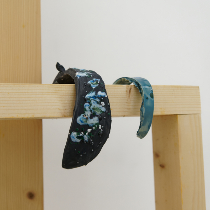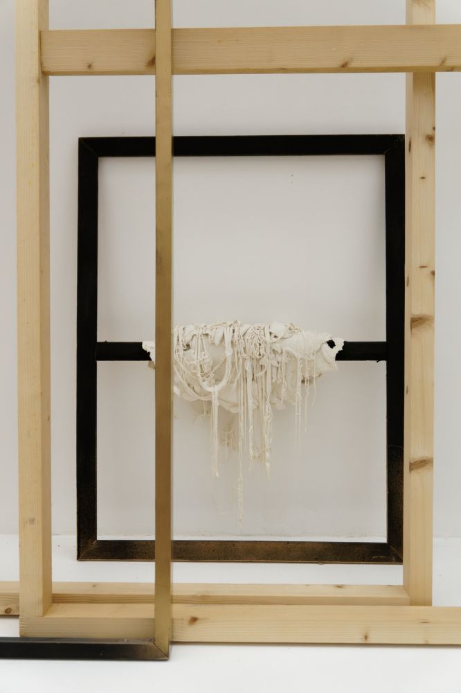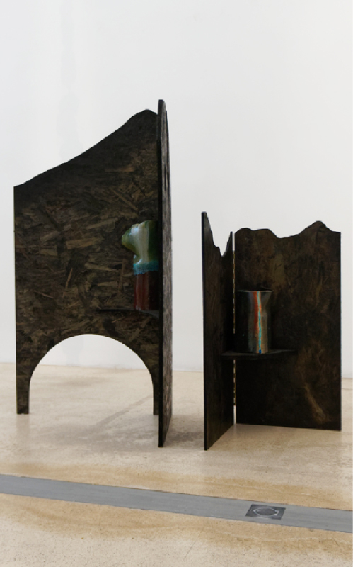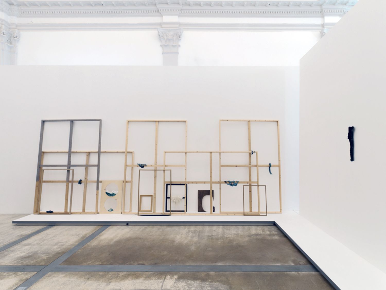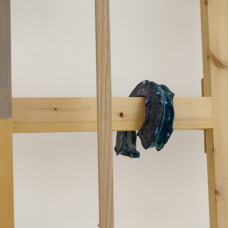 Faïence émaillée, bois, silicone et châssis, dimensions variables