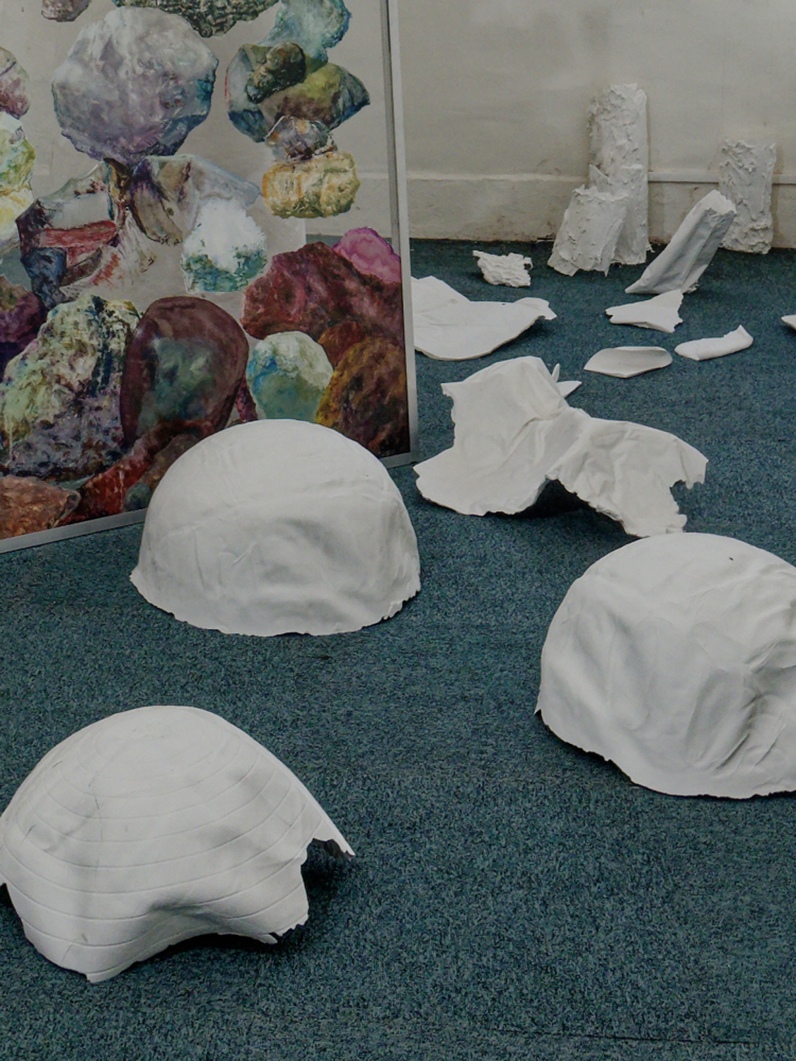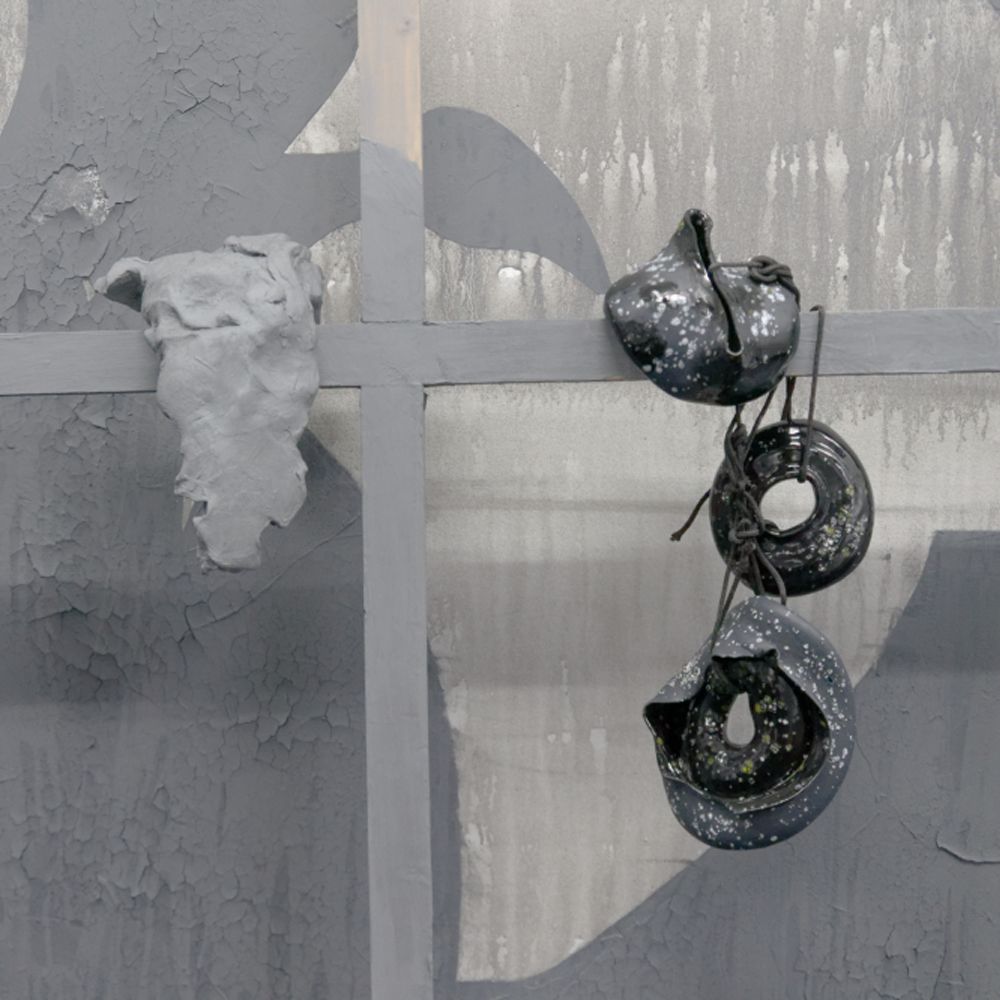 Au premier plan : œuvres de Yann Lévy, Elles font de la poussière. Dansent et soulèvent des nuages, 2021