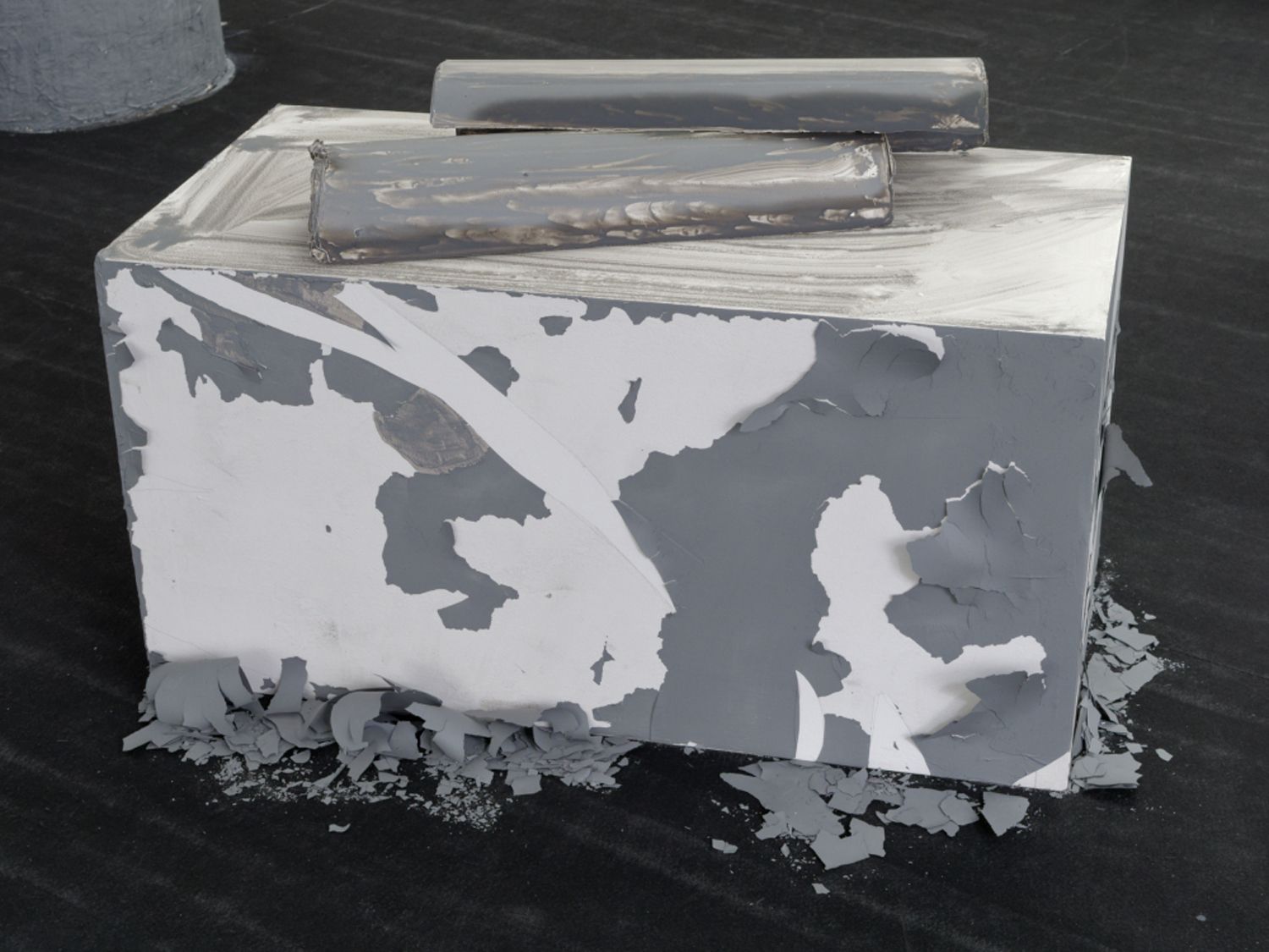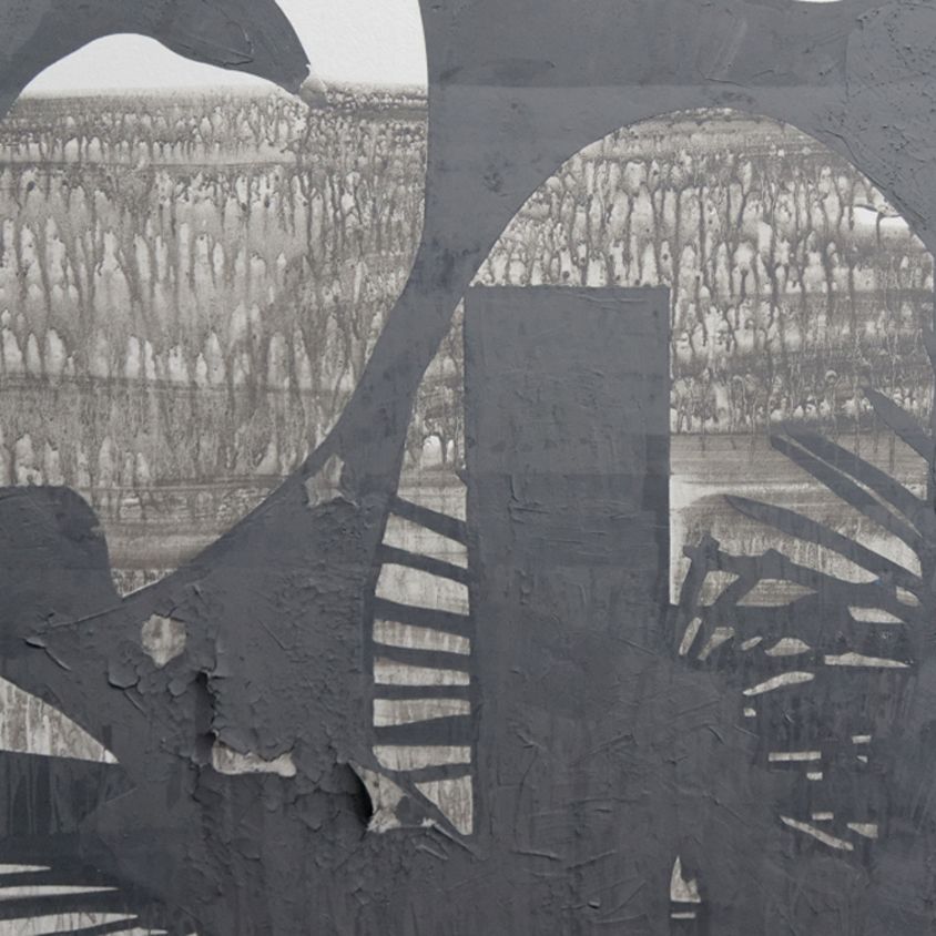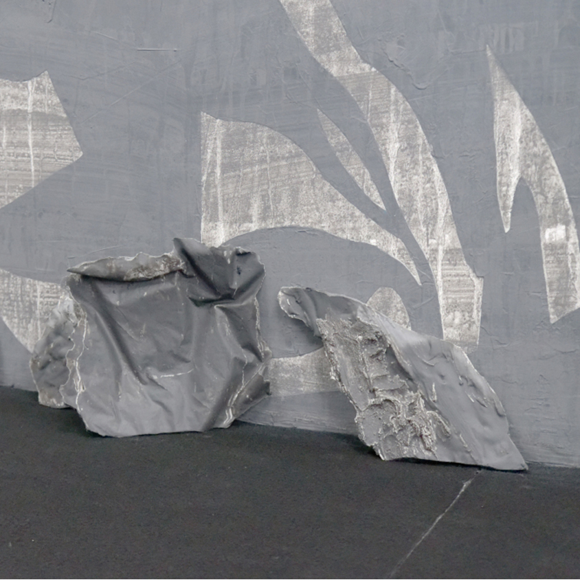 À l'arrière-plan : œuvre de Yann Lévy, Masses, 2015
