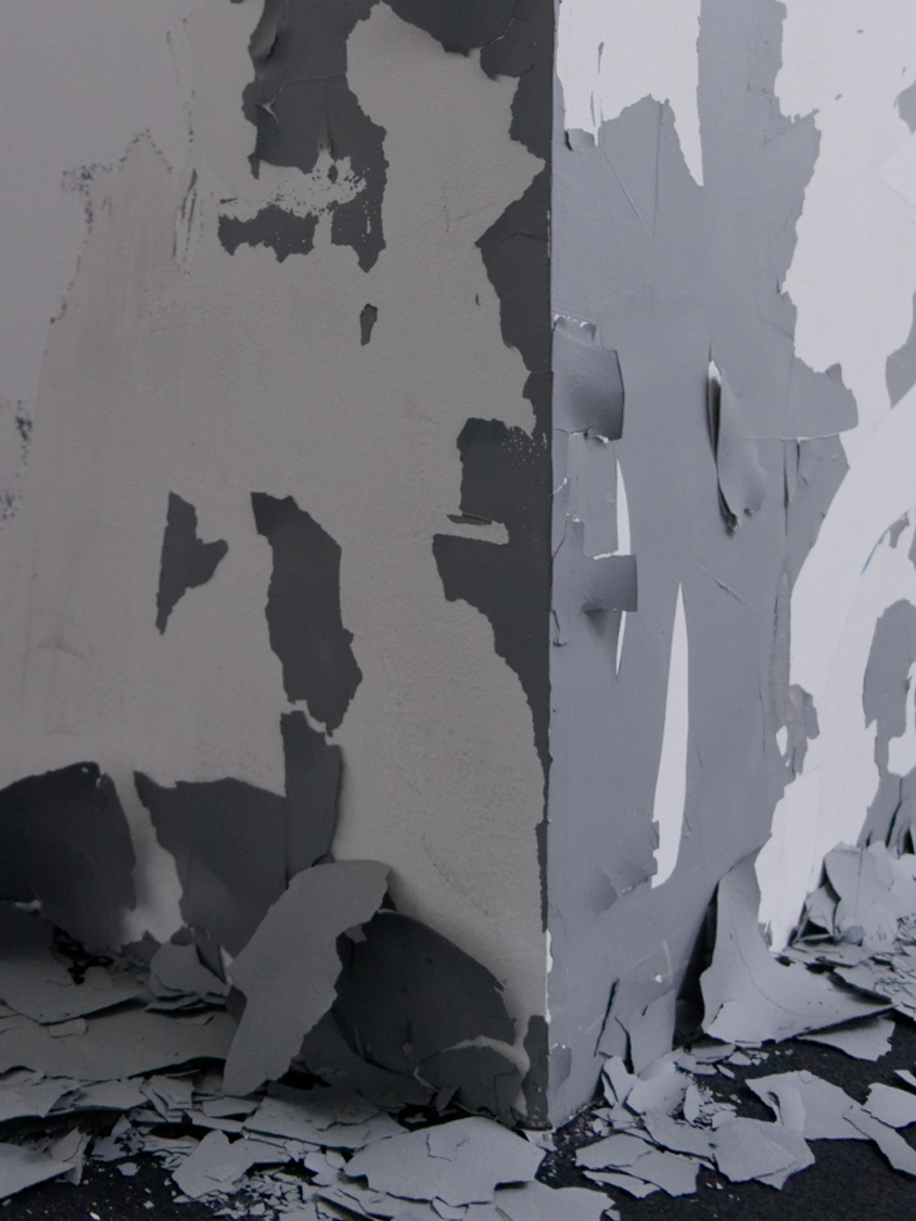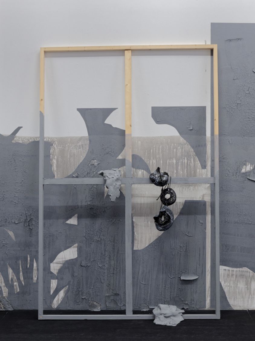 À l'arrière-plan : œuvre de Yann Lévy, ext_intérieur, 2017