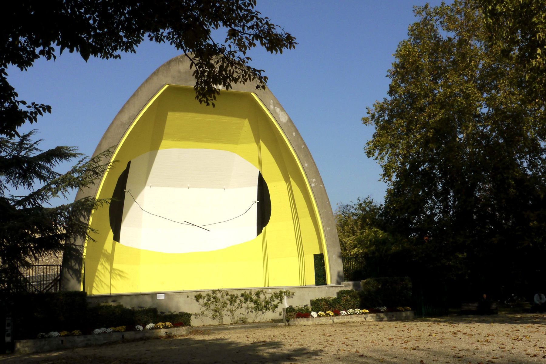 Peinture murale réalisée pour une durée d'un an sur la conque du parc municipal de Nanterre