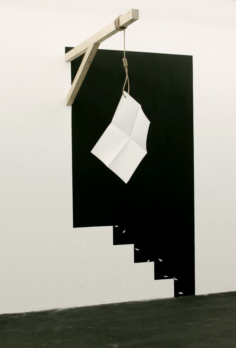 Peintures murales, potence, corde, feuille