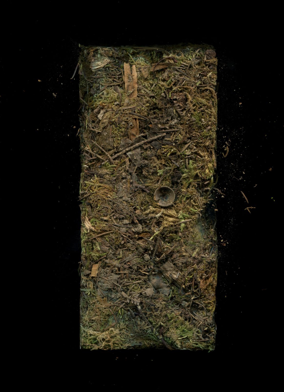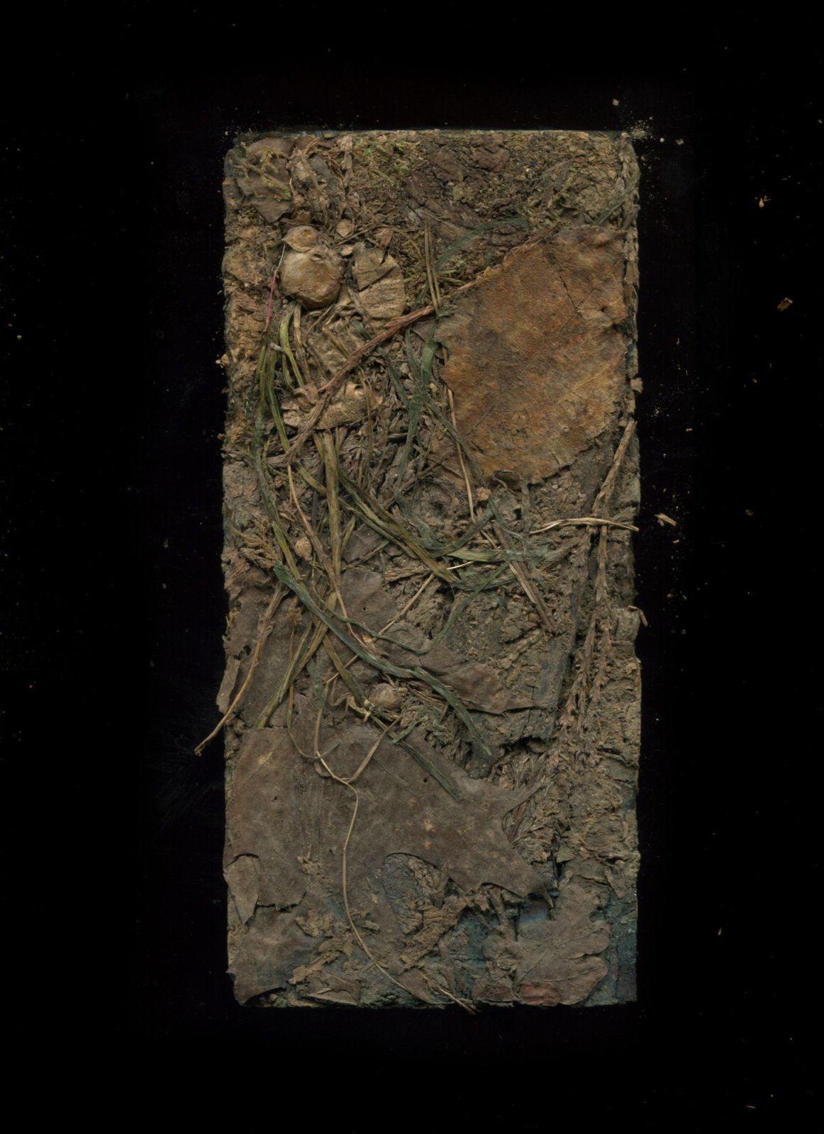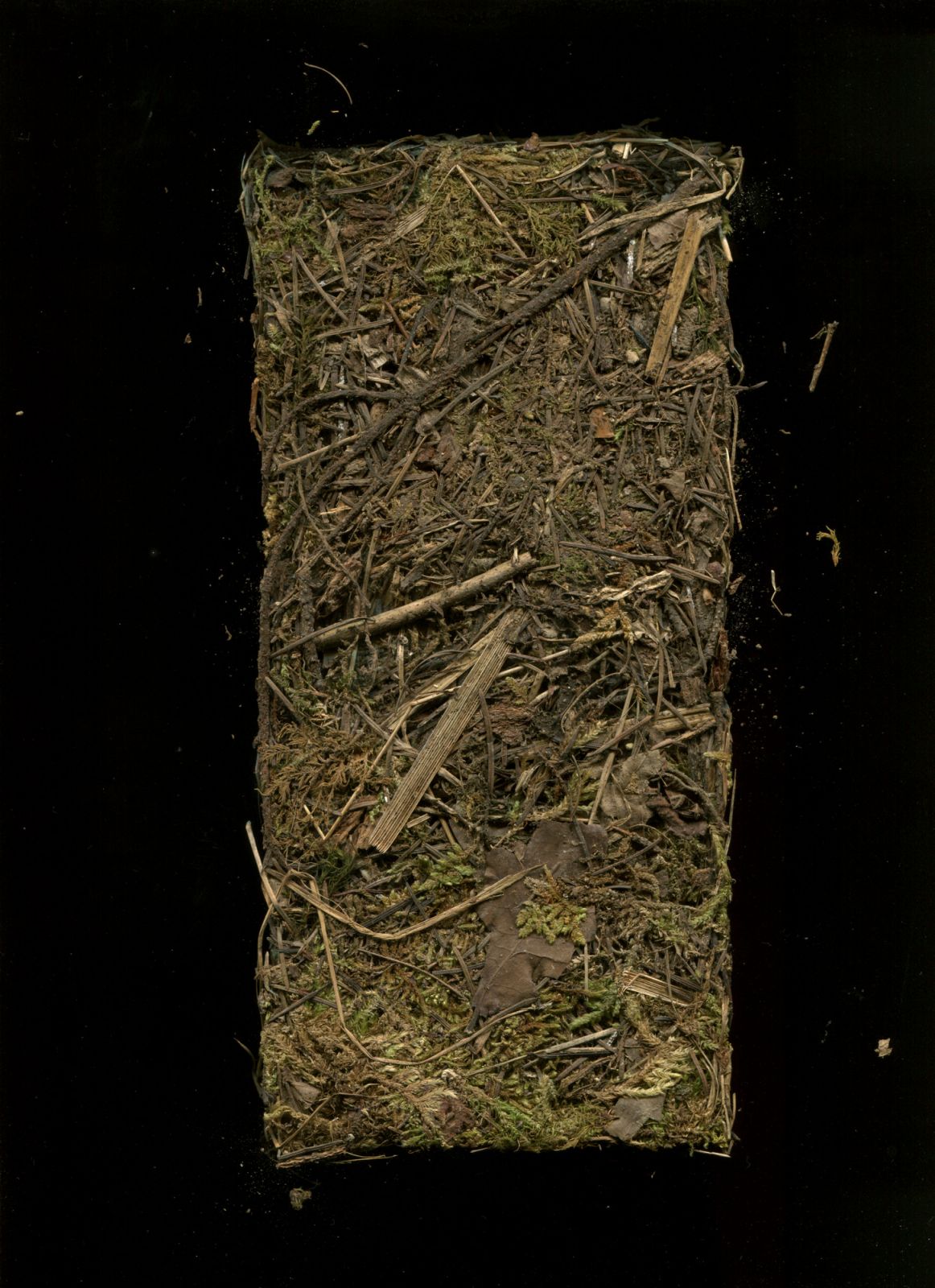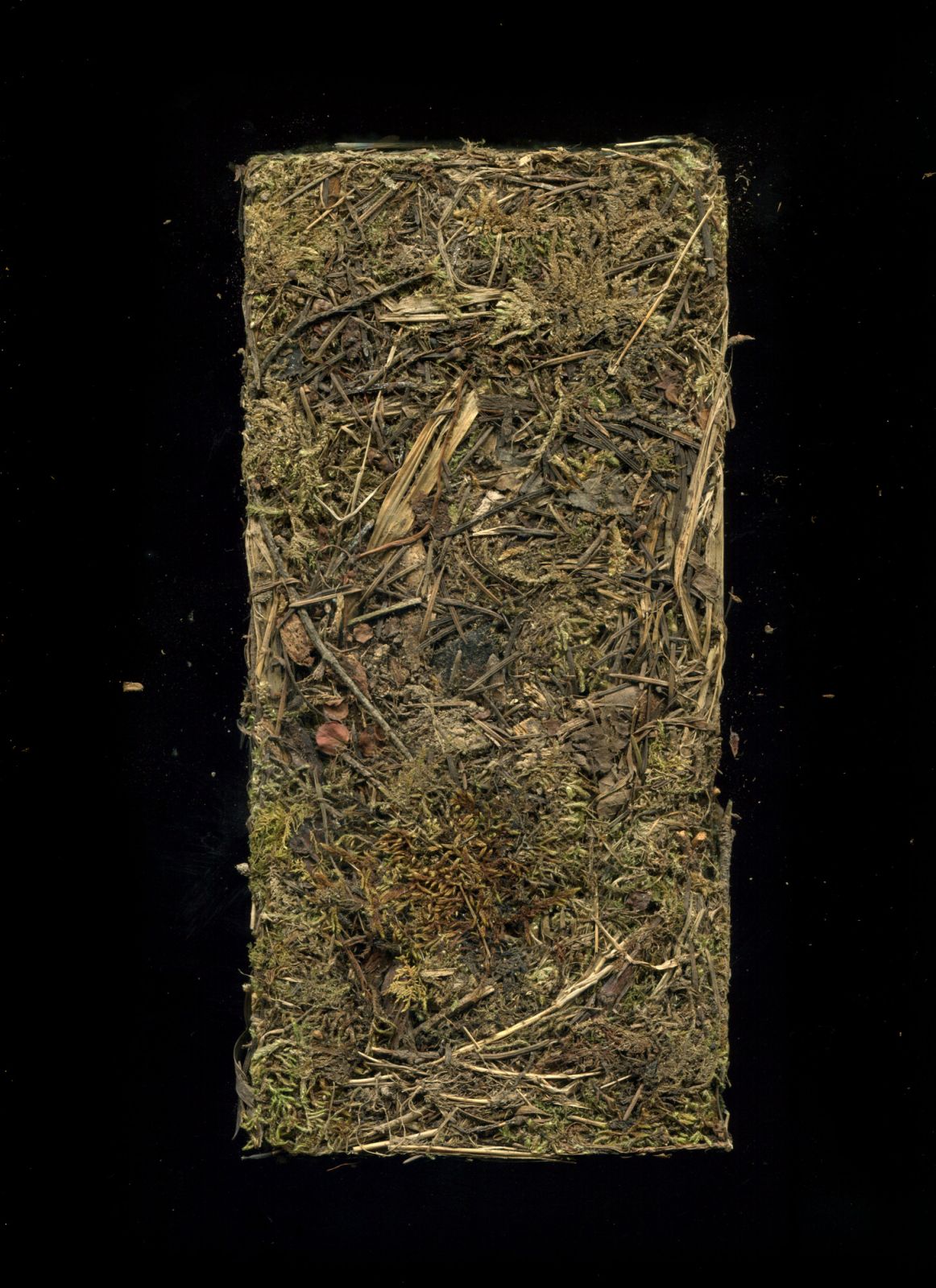 A series of brick sculptures composed of organic matter foraged during autumnal walks in the French Jura. The botanical material—including Norwegian spruce, European beech, European larch, Scots pine, Sycamore maple—was compressed into moulds and subjected to a long drying process.