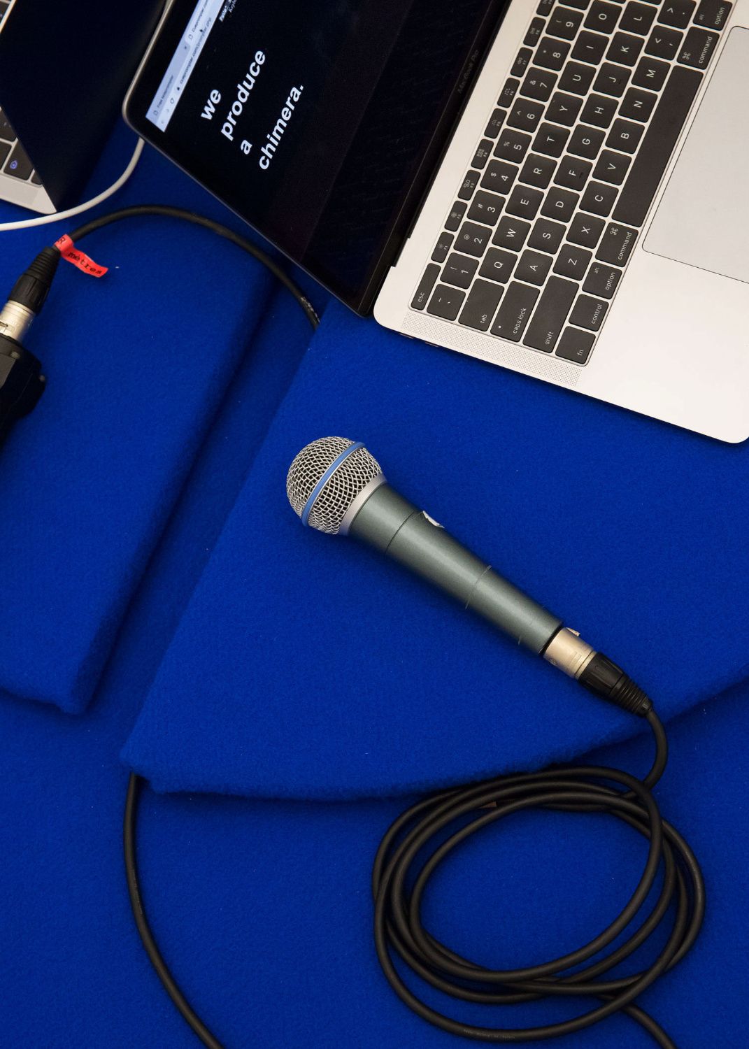 Chemical Charm is an exhibition proposition and a sensor-responsive performance with pheromones. We’ve been thinking about how we know so little about our noses, but they operate as a gateway for invisible penetrative forces—pheromones—to enter deep into a primordial space. They subconsciously hijack our bodies, imposing upon us a plethora of volatile biological effects that simultaneously exist but remain largely indiscernible. How to speak of something whose very existence is uncertain? Can we form a partial understanding through cumulative fragments? Organic desire responds to chemical control. Dissonance and residue overrides explanations articulated through default authoritative knowledges. Our language to express this is incomplete, so we attempt to communicate with gesturing bodies instead.|↗ lire le texte de Raphaëlle Mueller, Katie Lenanton et Sarah Sandler