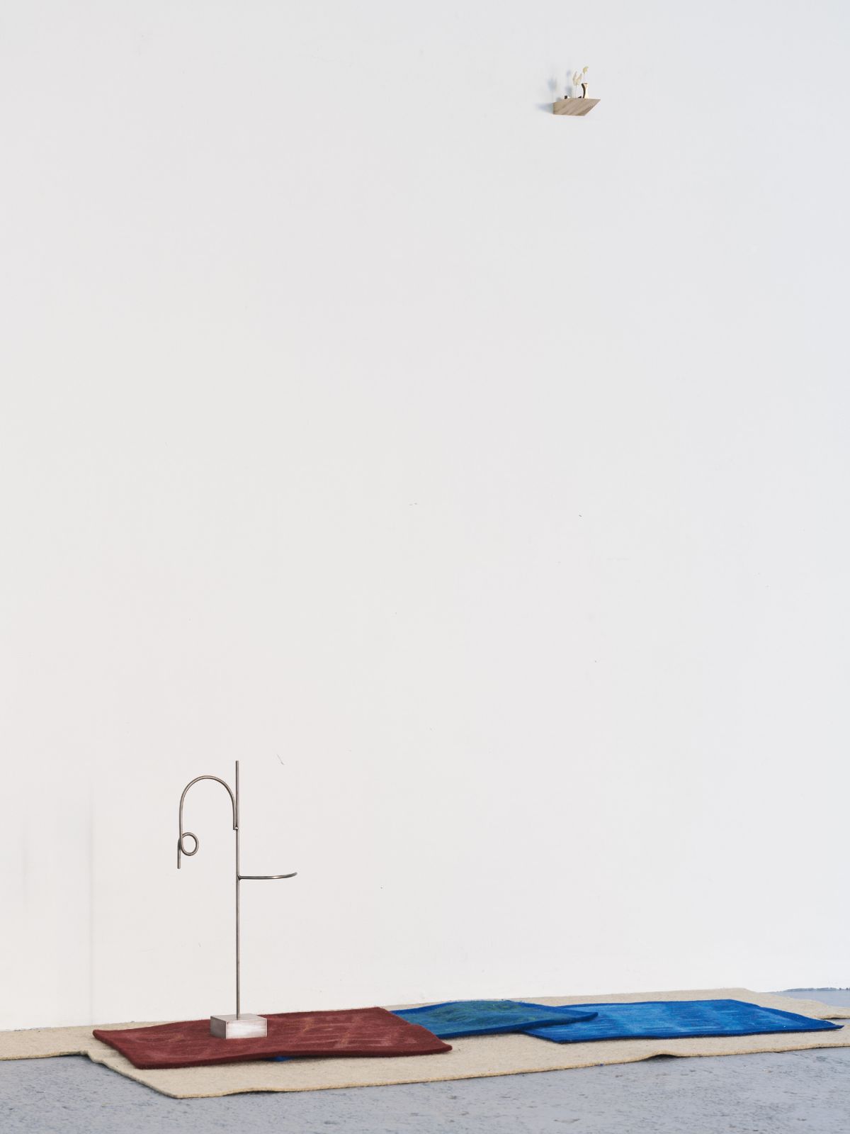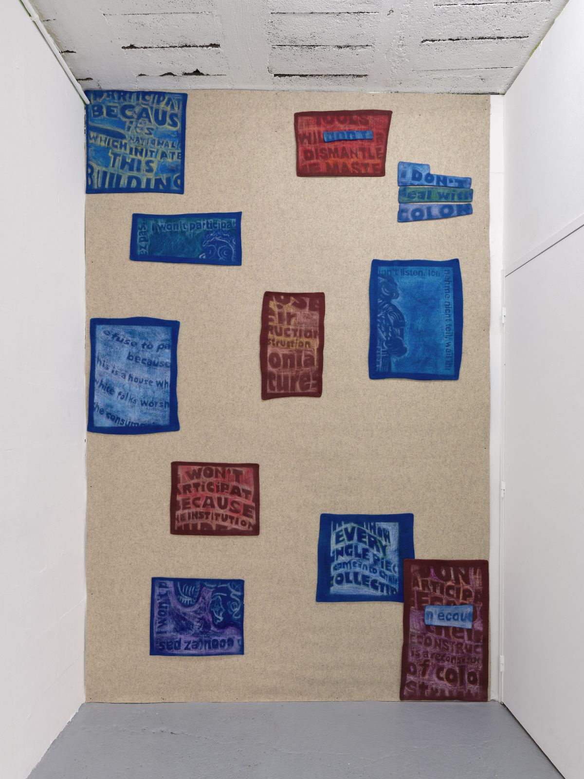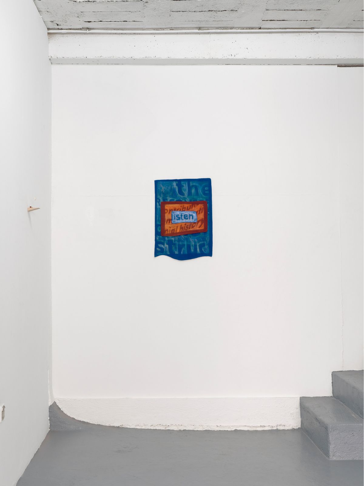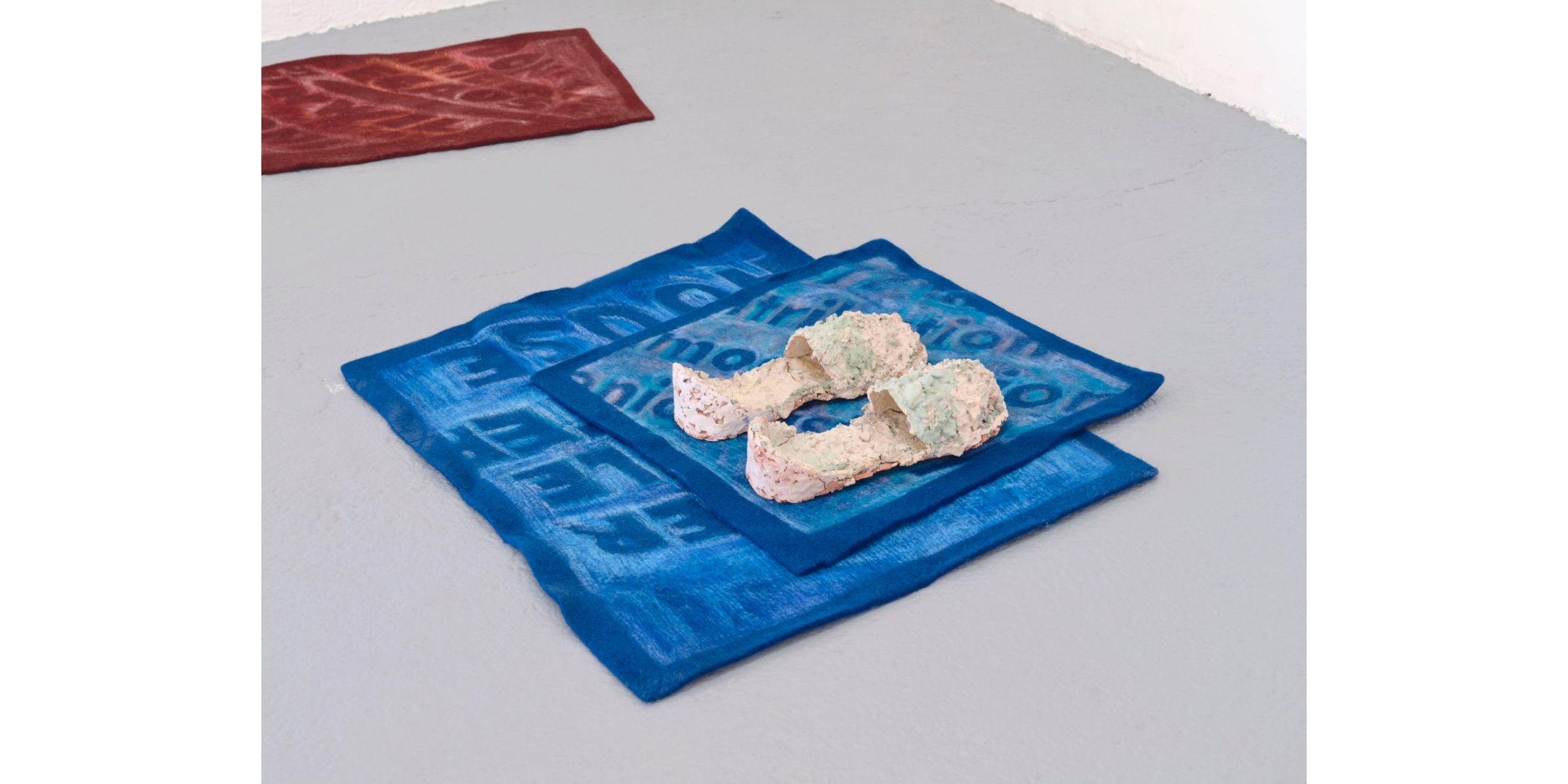 These intimate reliquaries enter into dialogue with texts drawn in pastel on felted wool, excerpts from a mosaic of news articles surrounding the public discourse on the Humboldt Forum culture and science museum, Berlin and the contested status of its collections. This exhibition precedes a year and a half artistic residency at the Linden-Museum Stuttgart where Sandler will address the legacy of colonial collecting.