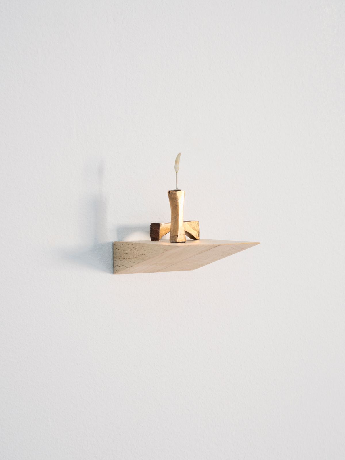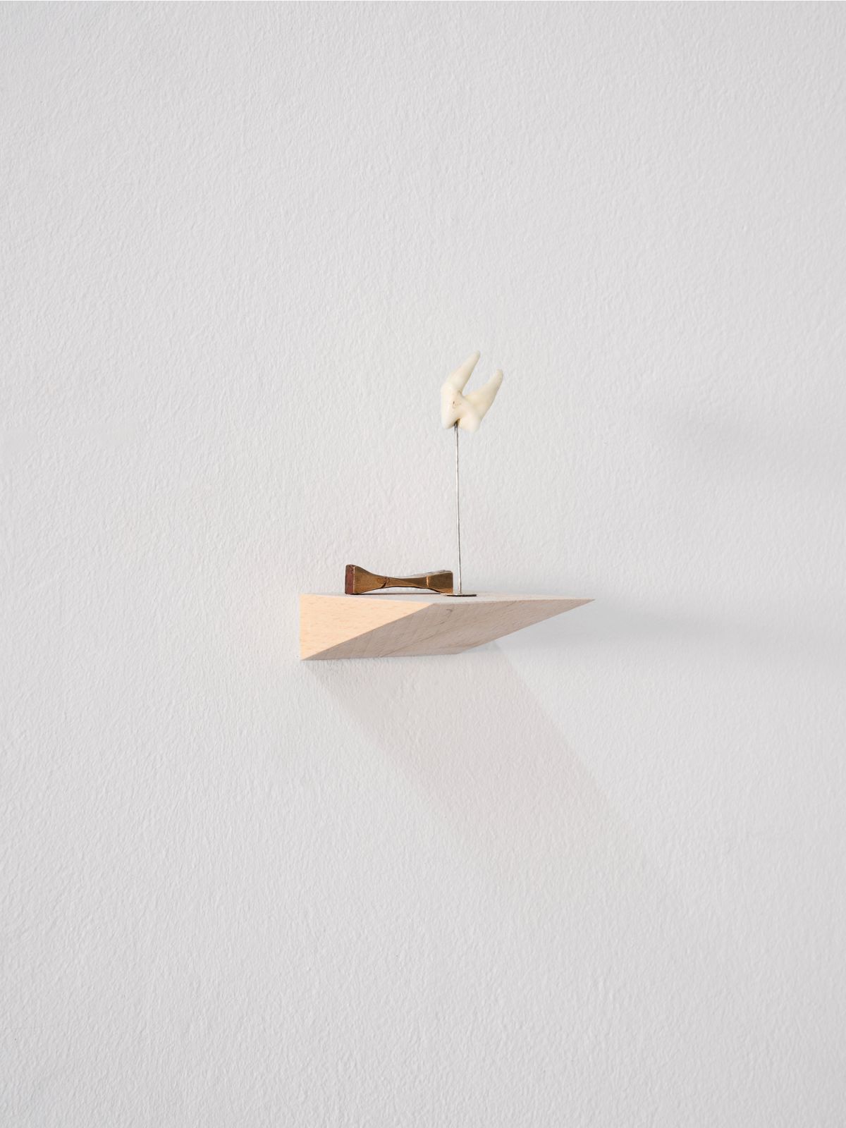 Tooth, welded silver, cast bronze, wood