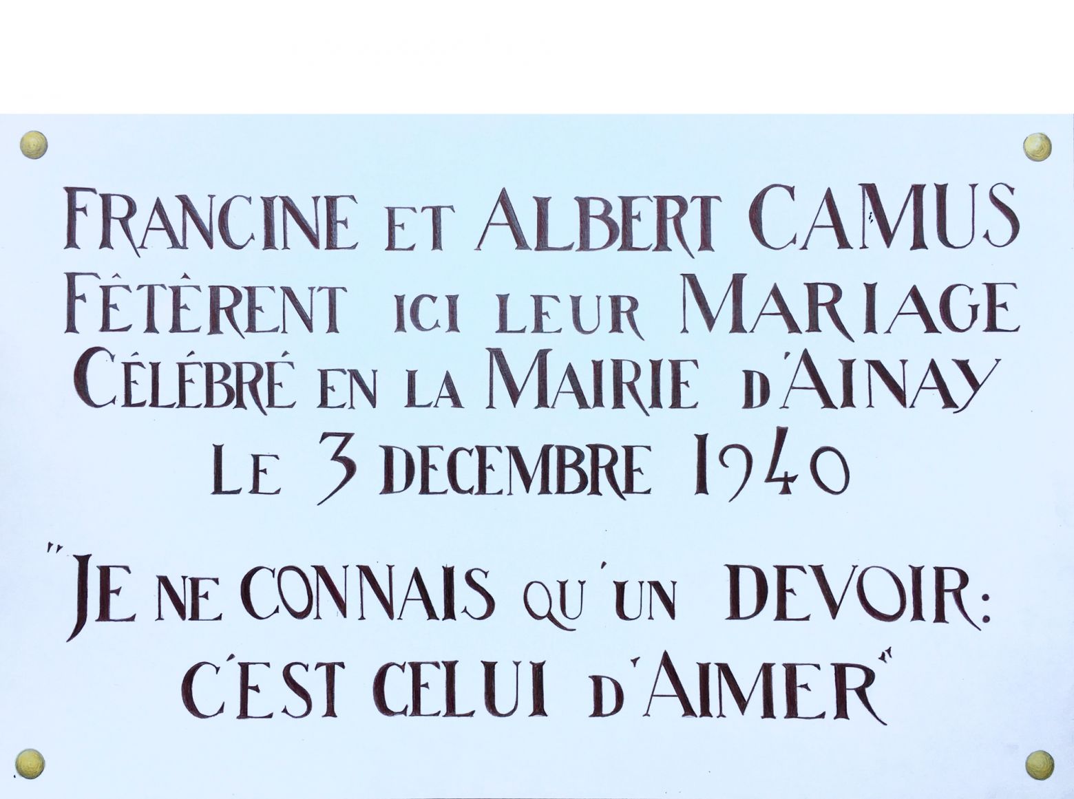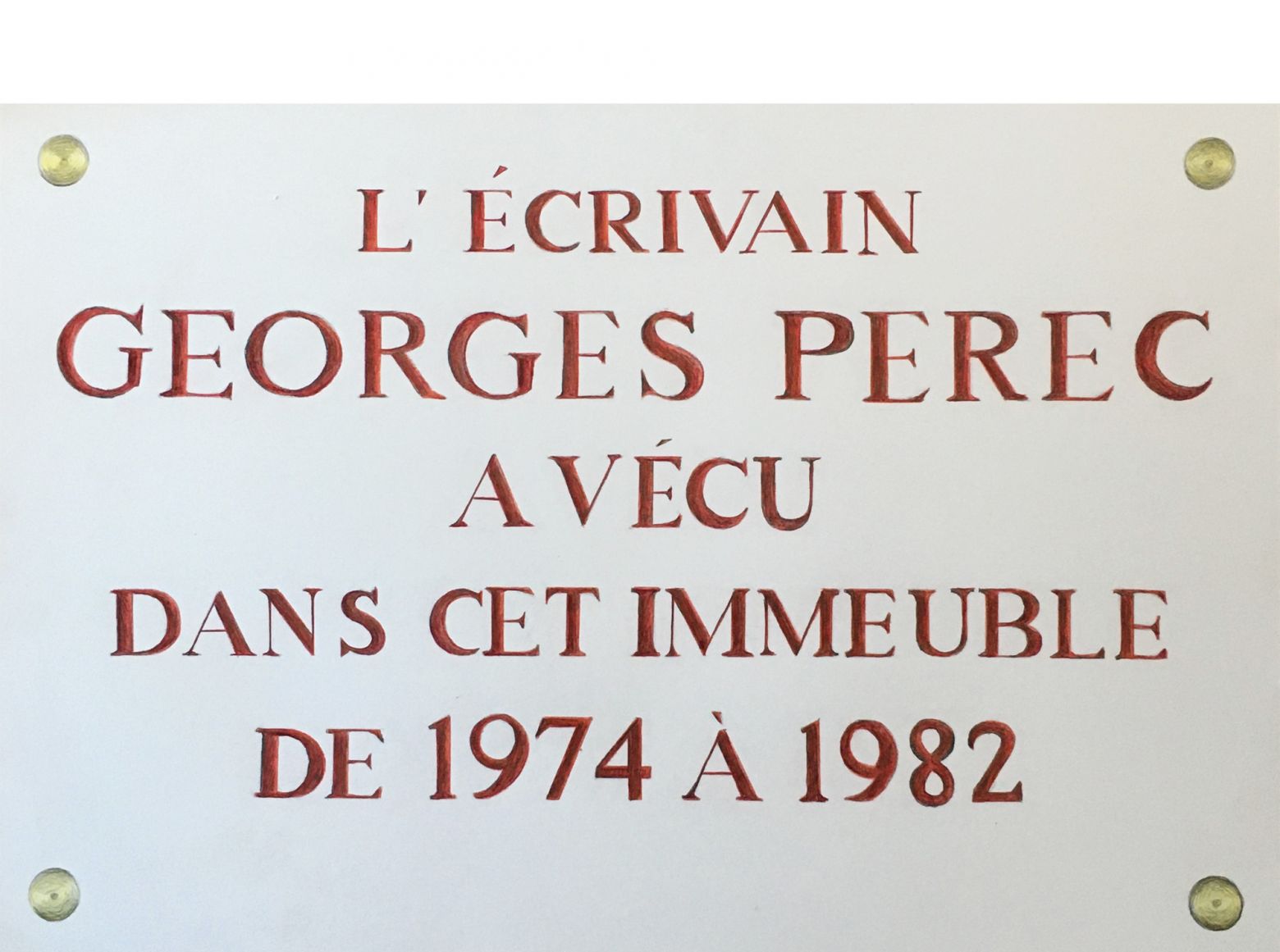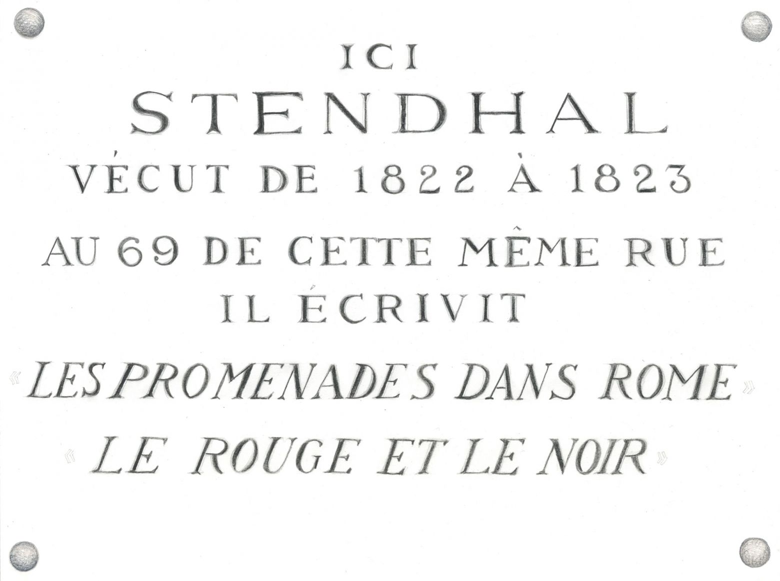 Copie de plaques de rues, panneaux signalétiques, plaques commémoratives ou autres textes situés dans un lieu précis.