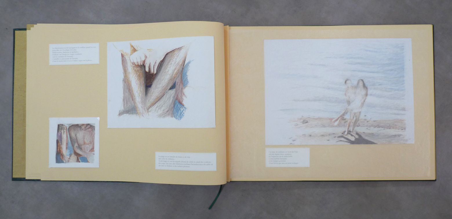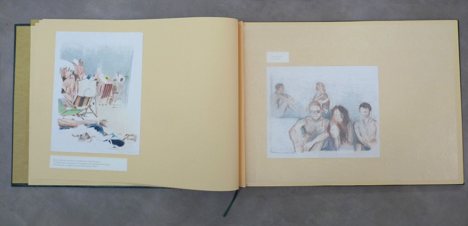 Les photographies initiales les conduisent à envisager l'album photo, qui semble réunir plusieurs caractéristiques pertinentes : rapport à l'intime, multiplicité des lectures possibles, conservation et mémoire, images du passé appelées à vieillir autant qu'à perdurer, récit du fragment. Elles décident de concevoir un album traditionnel inspiré d'un vieil album photo de famille, s'adaptant aux formats des dessins, et qui sera réalisé spécialement dans un atelier de reliure. L'album photo contient et préserve des instants personnels choisis ; objet unique et familier, il leur a paru parfaitement approprié pour conserver les dessins originaux et donner au texte une place permettant une lecture en dialogue.