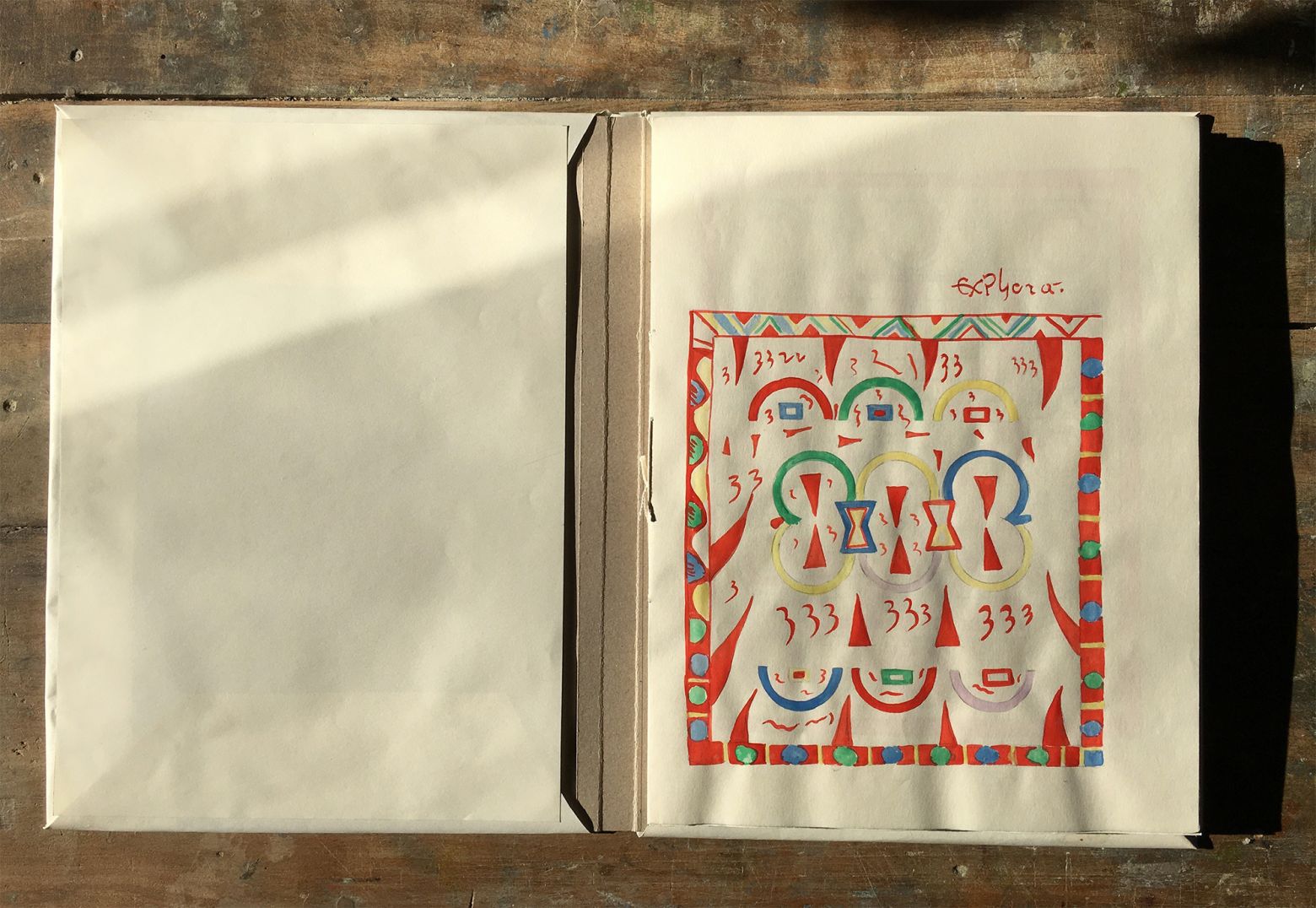 Série de 51 dessins reliés sous forme de livre, gouache