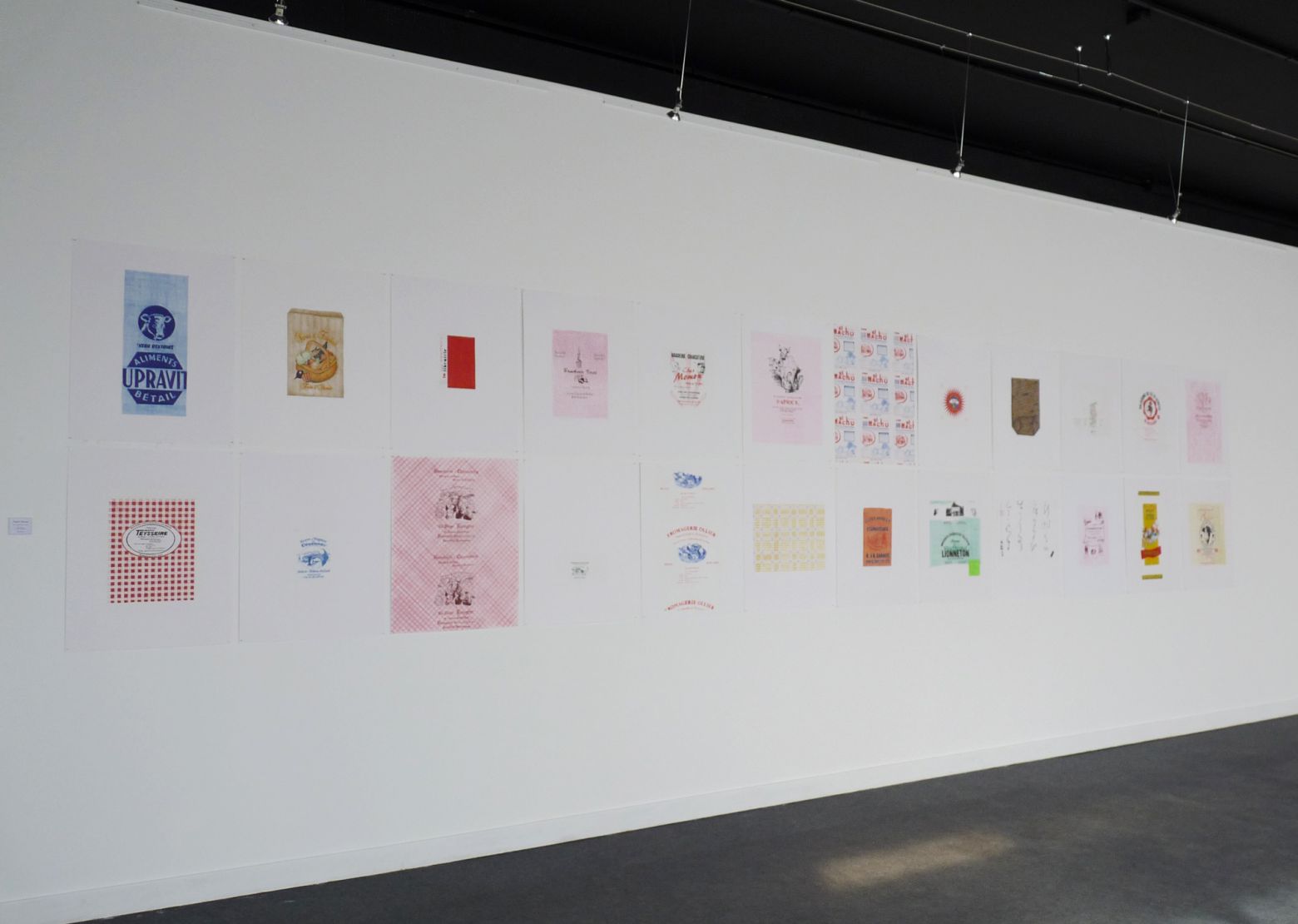 Vue de l'exposition Un mur un dessein, Galerie Martagon et Librairie L'annexe, Malaucène, 2017